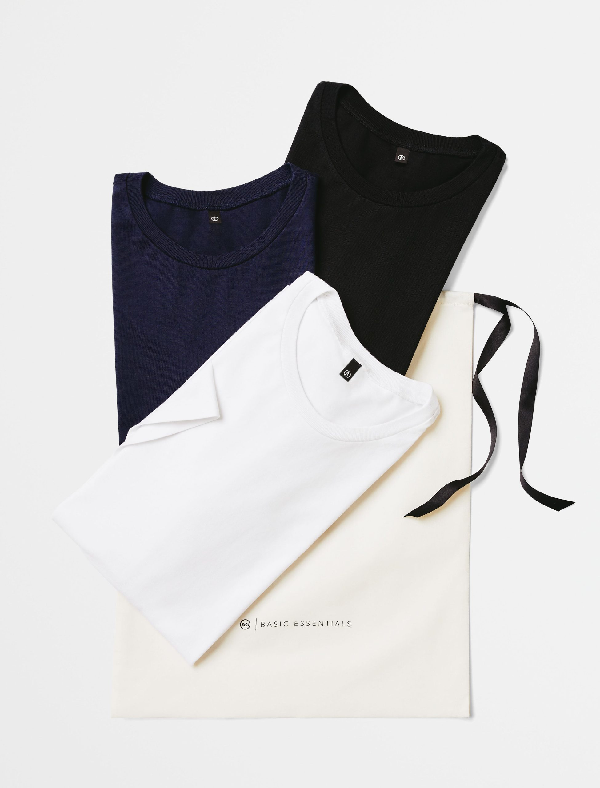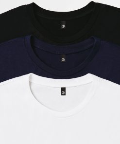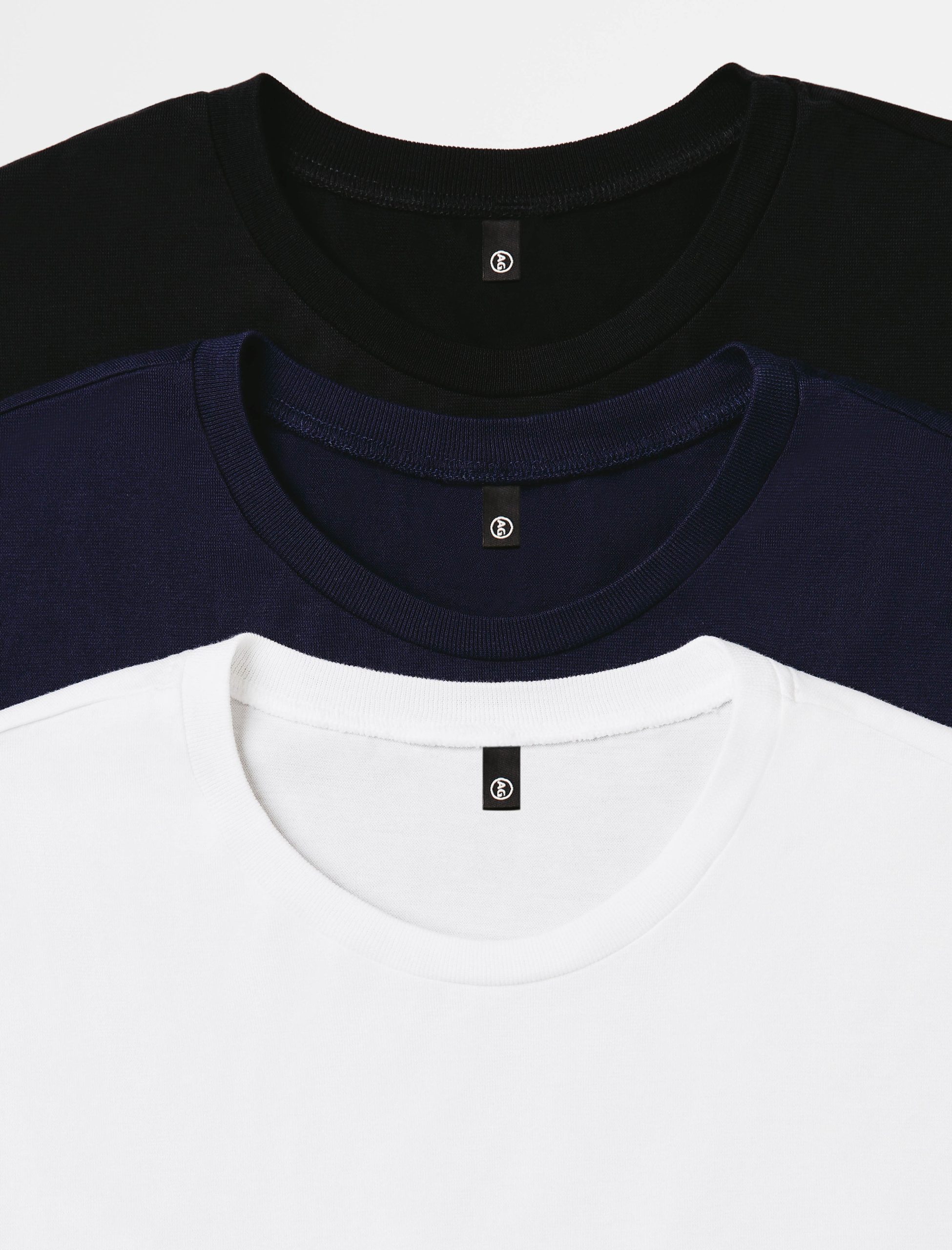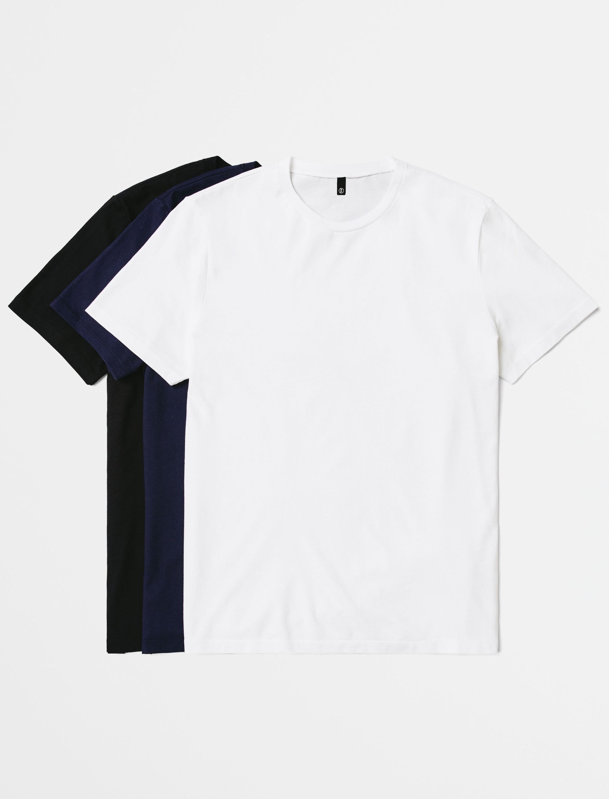 The Bryce Crew our classic fit crewneck, short sleeve tee in our true white, black, and deep navy 3-pack. The tee offers a 1X1 baby rib at the neck to create a great crew shape and serves as the perfect base when layering all year long. Our Jersey Knit offers a luxurious comfort that is unrivaled—knitted with both S-tw