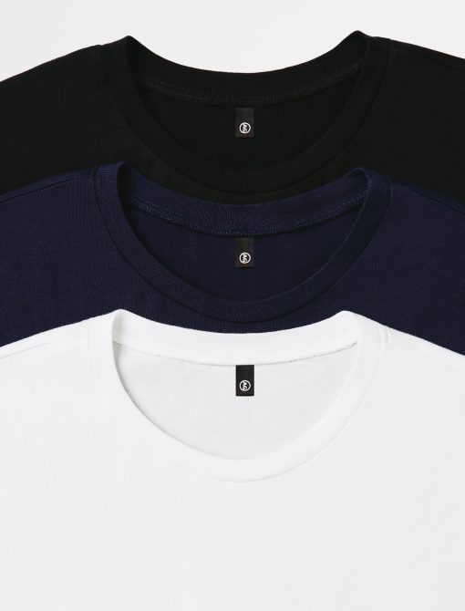 The Bryce Crew our classic fit crewneck, short sleeve tee in our true white, black, and deep navy 3-pack. The tee offers a 1X1 baby rib at the neck to create a great crew shape and serves as the perfect base when layering all year long. Our Jersey Knit offers a luxurious comfort that is unrivaled—knitted with both S-tw