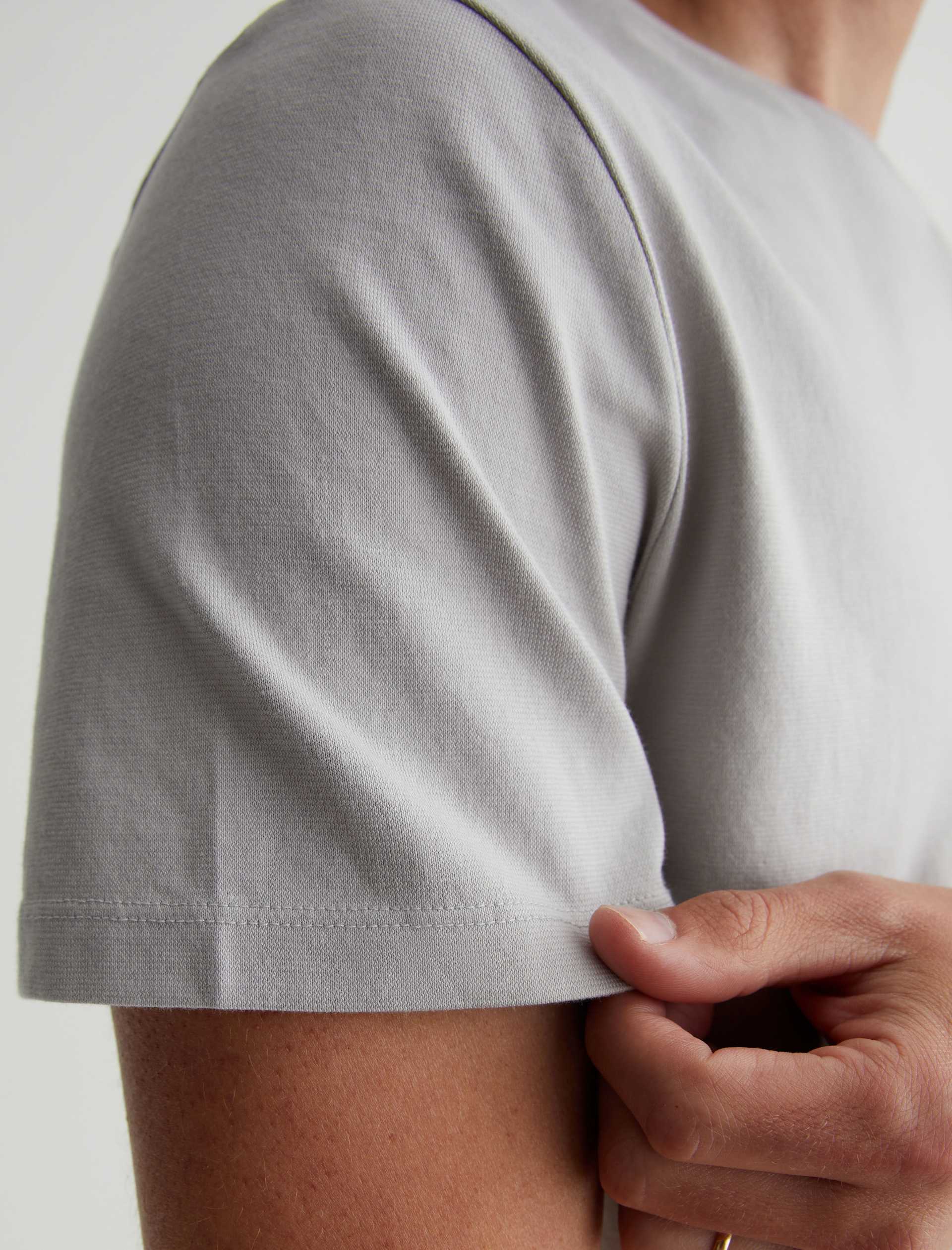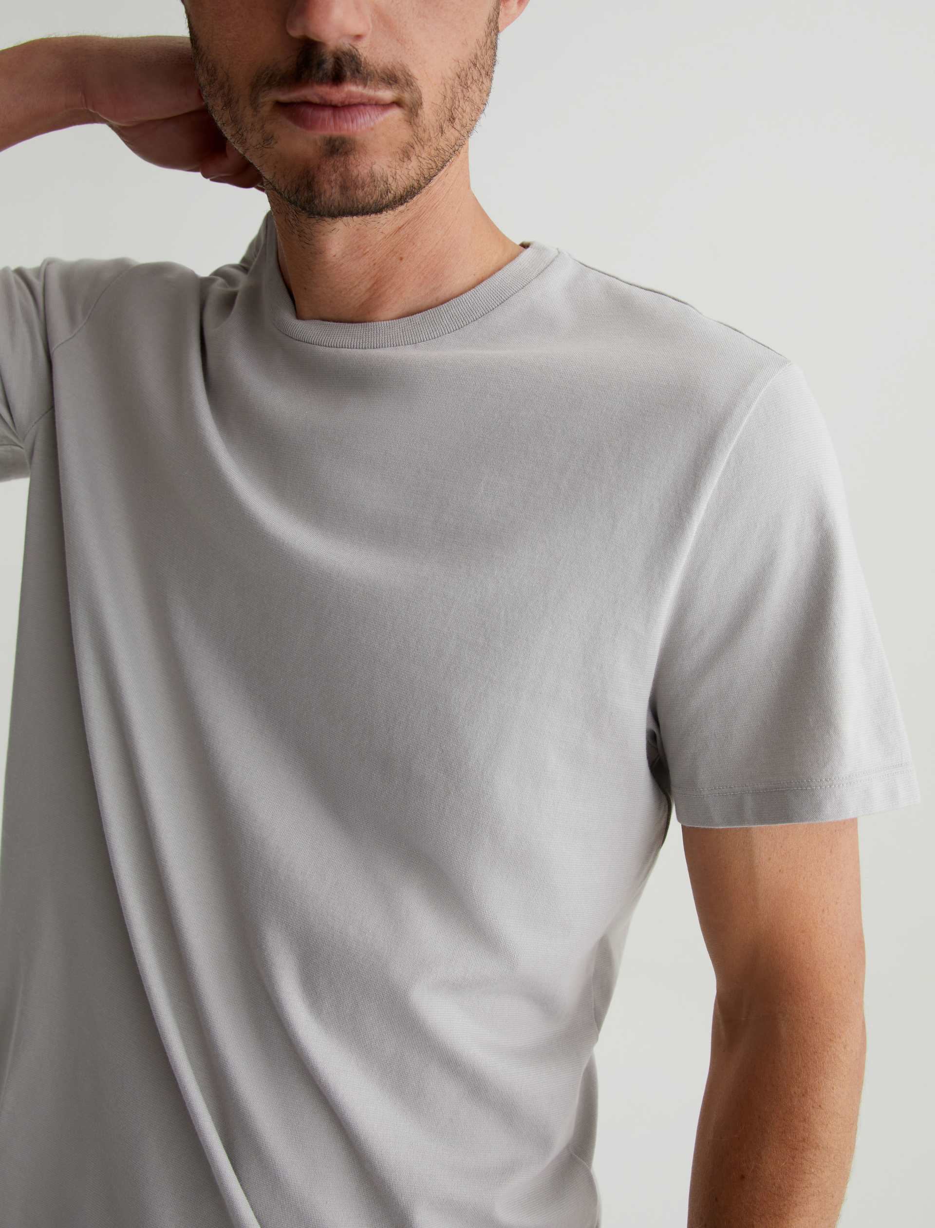The Bryce Crew in grey is a classic fit crewneck, short sleeve tee. The tee offers a 1X1 baby rib at the neck to create a great crew shape and serves as the perfect base when layering all year long. Our Jersey Knit offers a luxurious comfort that is unrivaled—knitted with both S-twist and Z-twist yarn to sustain longev