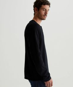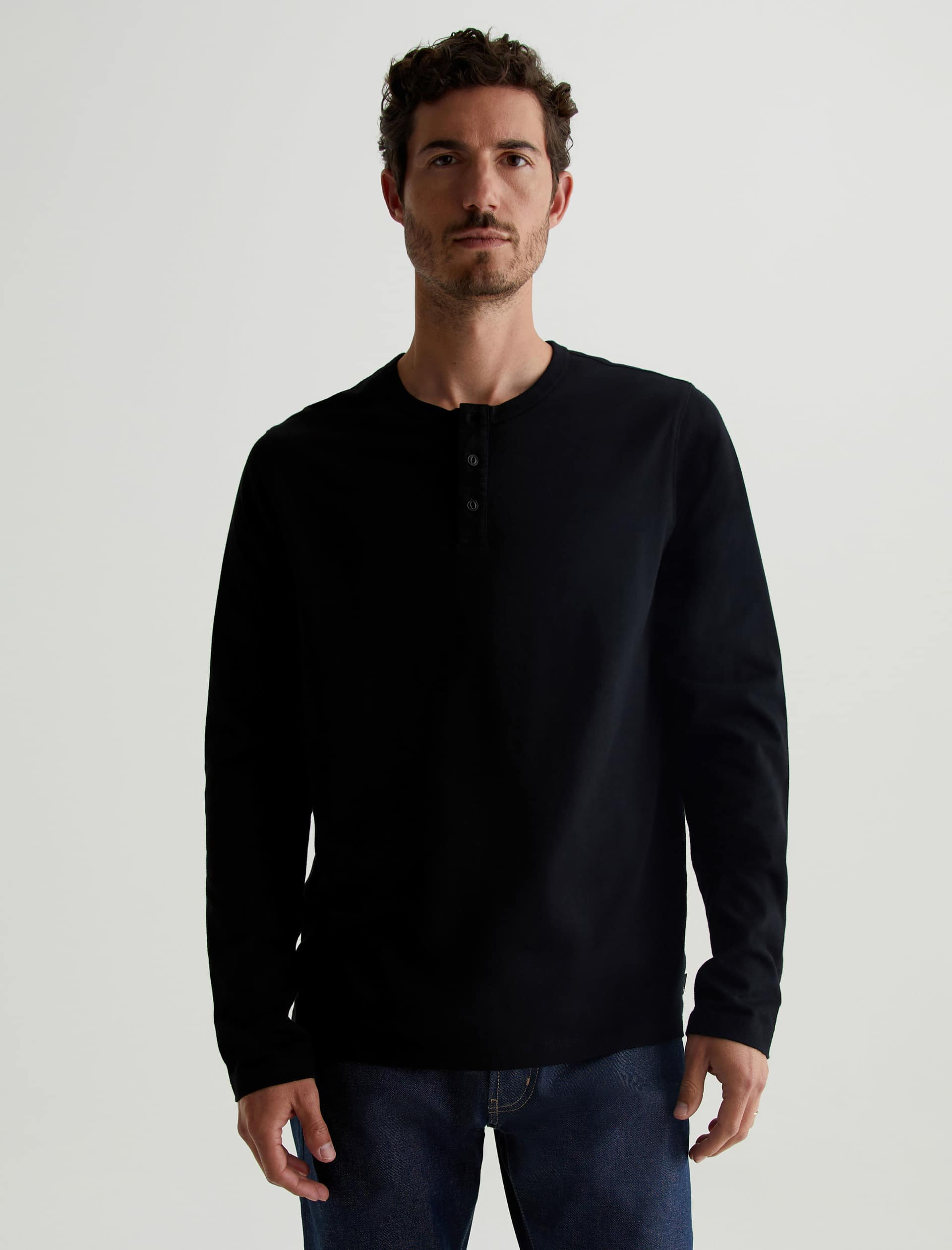 The Bryce Long Sleeve Henley in black is a classic silhouette for us, featuring a signature crew neckline with a self-placket featuring 3 buttons for versatile styling. Our Jersey Knit offers a luxurious comfort that is unrivaled—knitted with both S-twist and Z-twist yarn to sustain longevity and stability, preventing