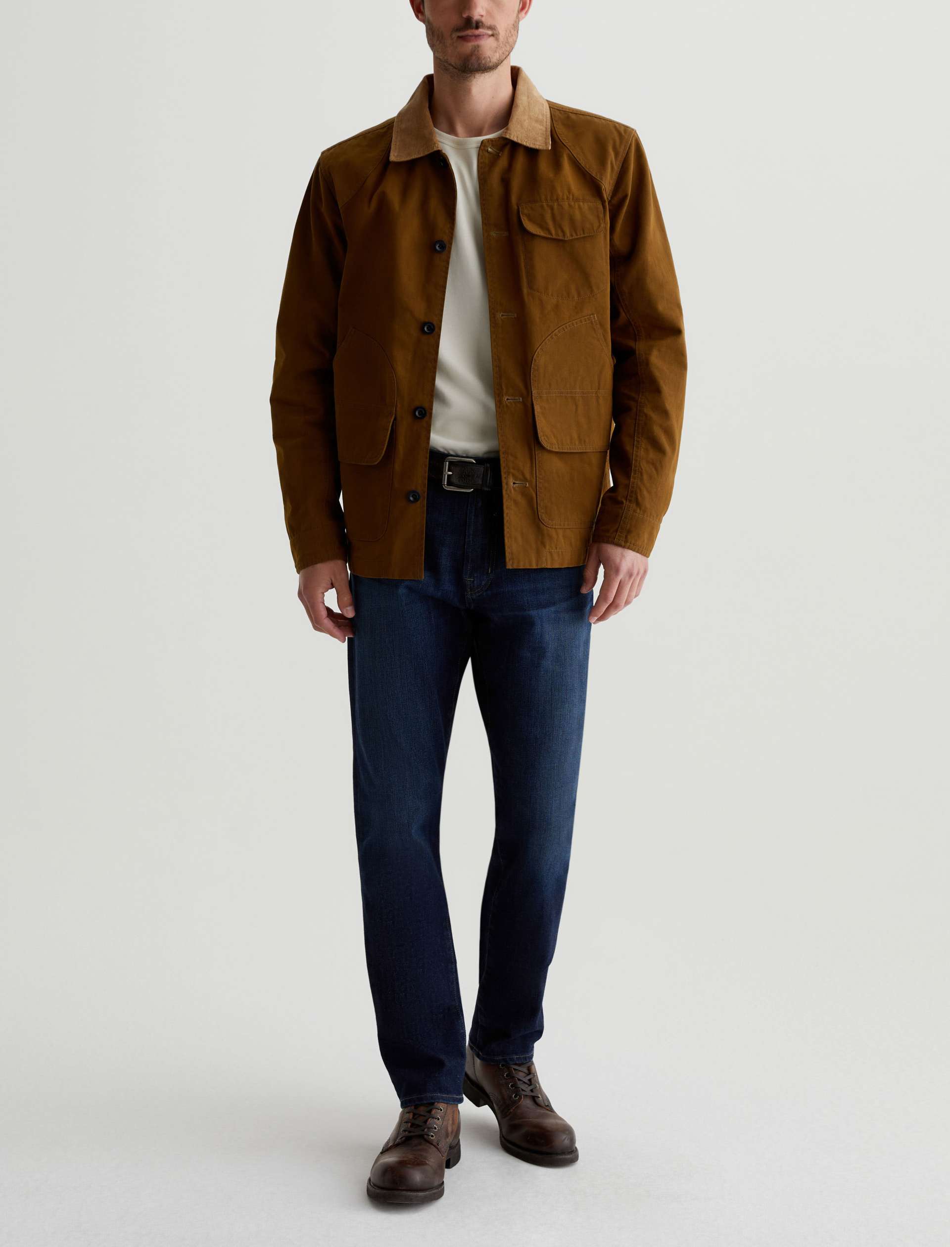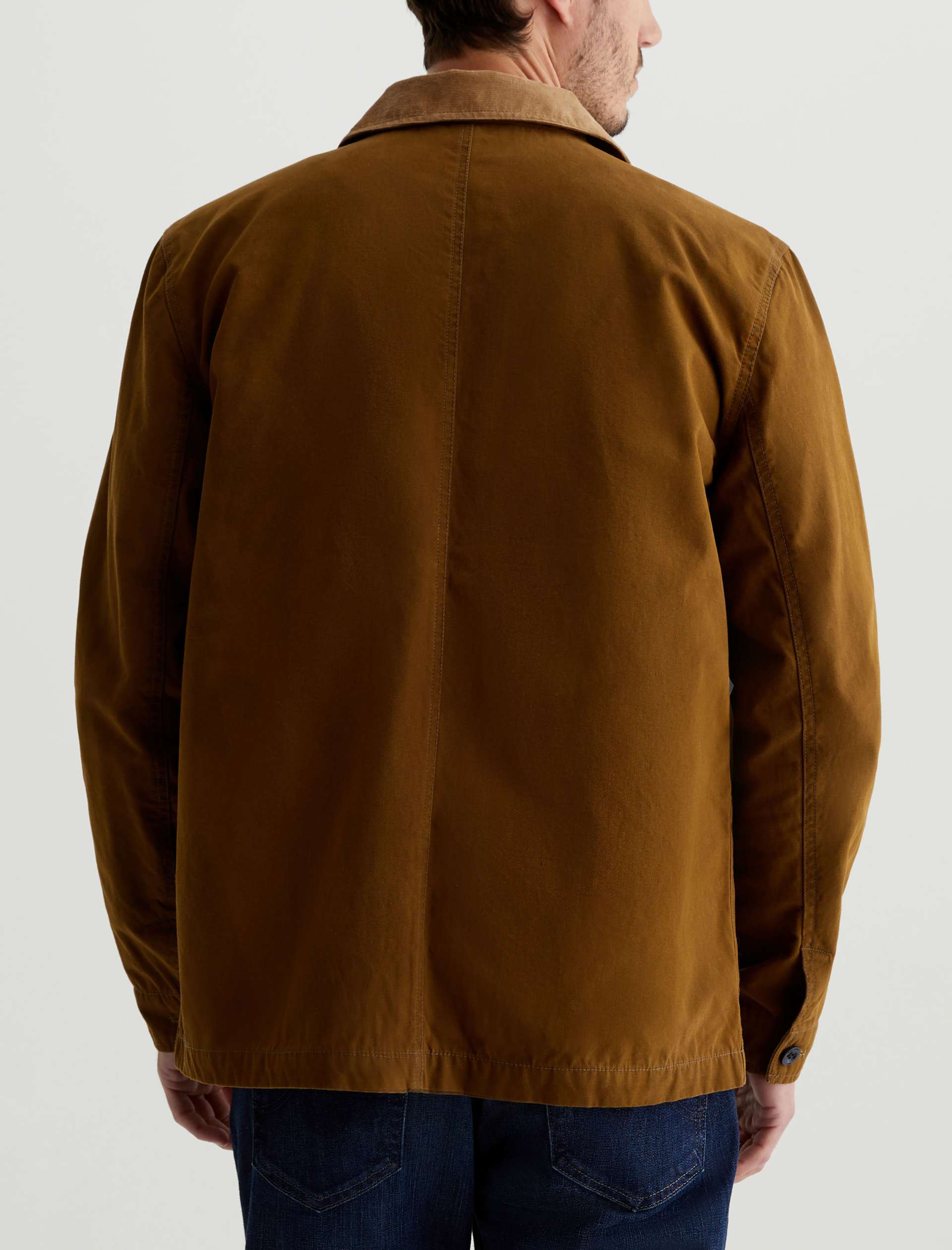 The Camden Jacket takes inspiration from vintage hunting jackets. Made from 10.2 oz. Coated Cotton Canvas in golden brown, it’s contrasted by corduroy at the collar and inner cuffs. Multifunctional utility pockets provide ample room for your essentials, while cotton-tencel lining offers softness and warmth.