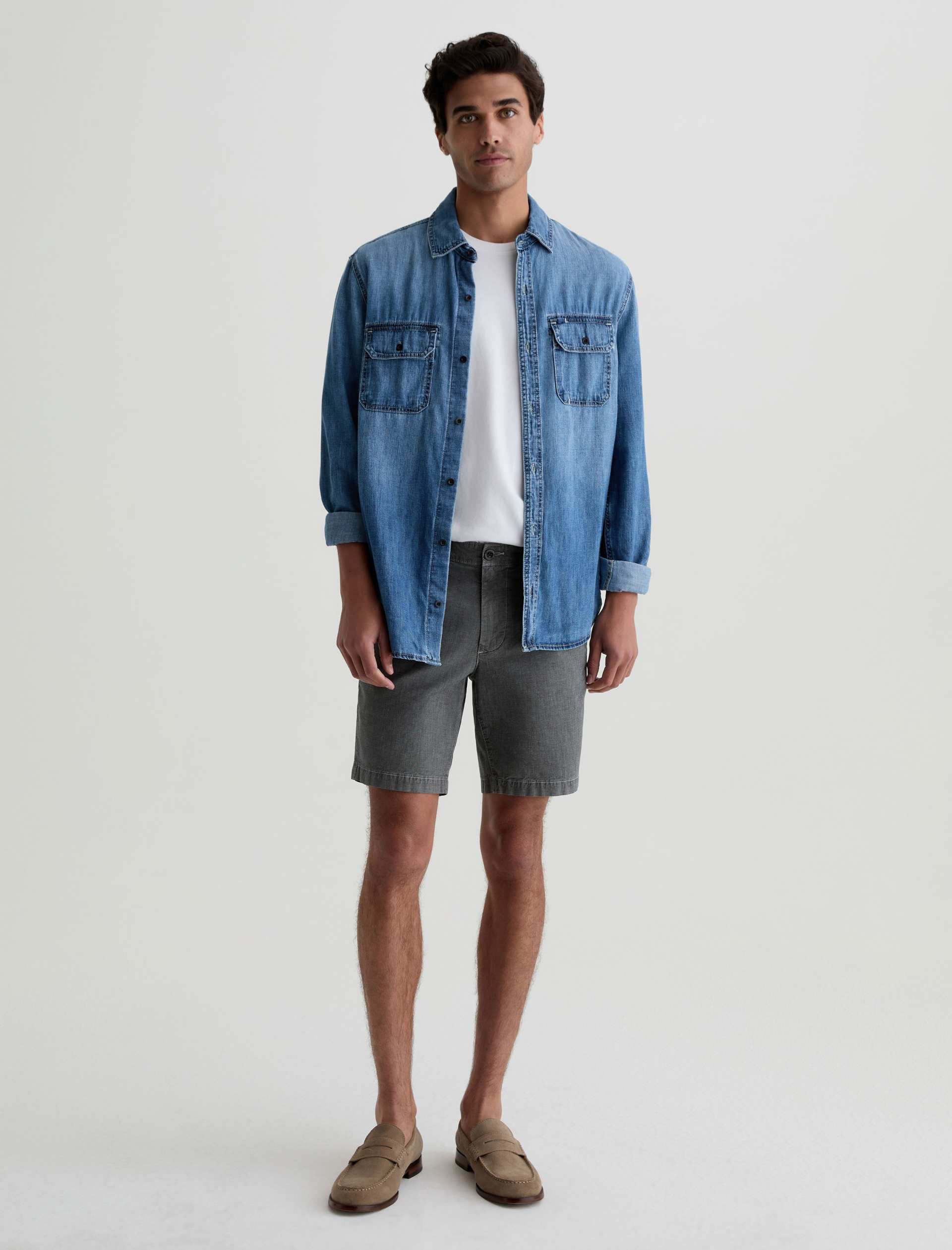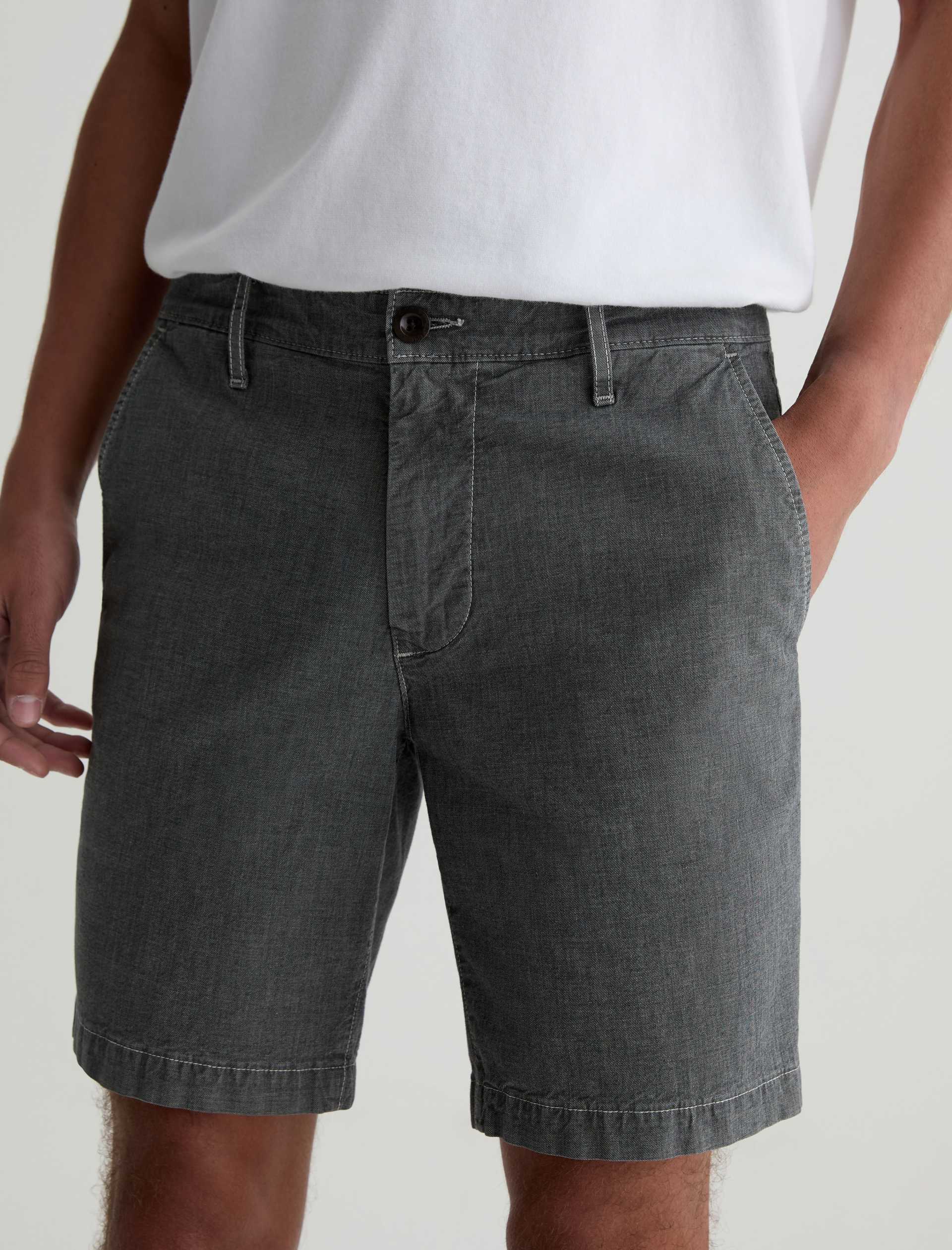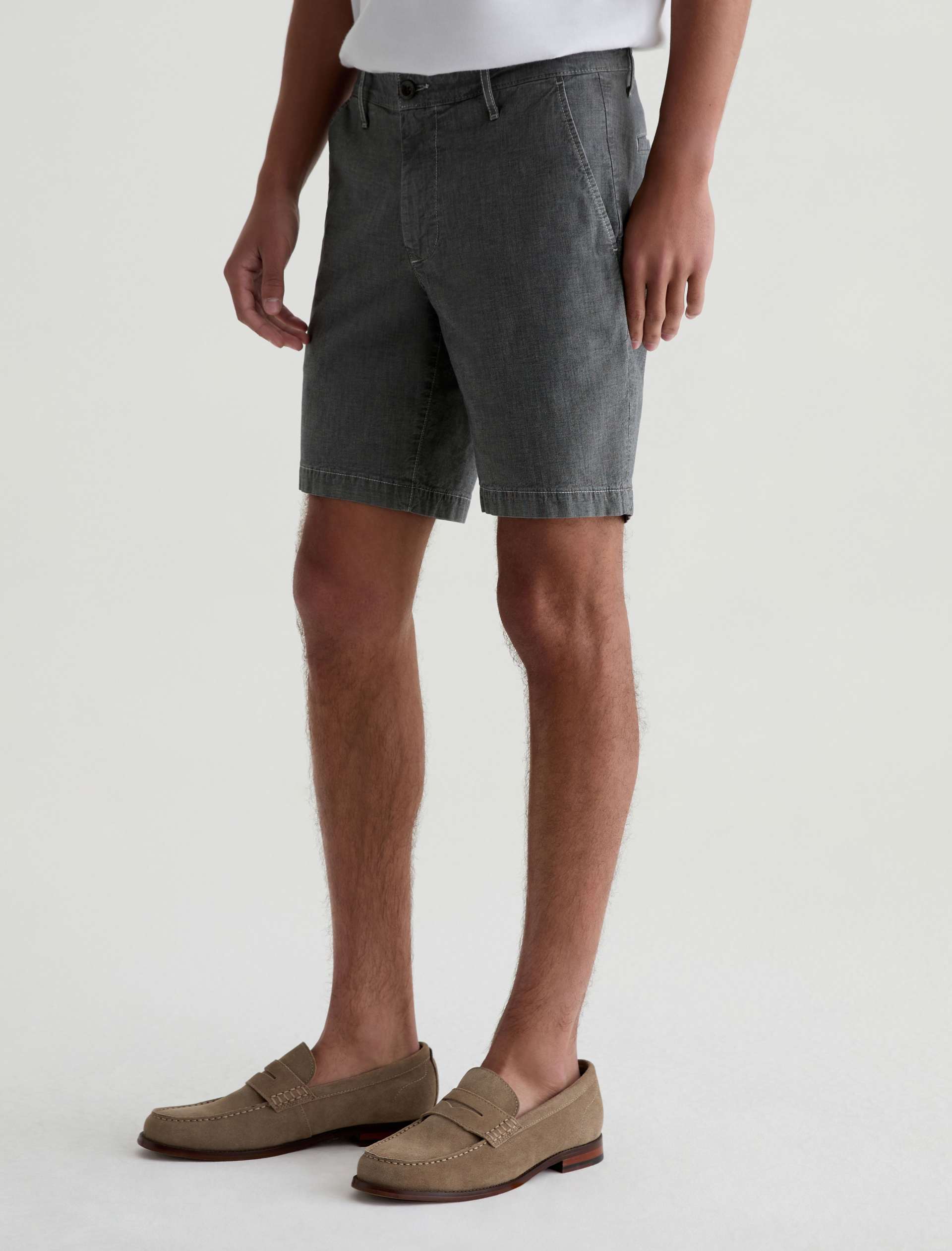 The Cipher Short is a warm-weather essential with casual polish. Made from yarn-dyed stretch cotton in grey, these comfortable stretch-blend shorts have a mid-rise waist and a slim fit that lands at mid-thigh.
