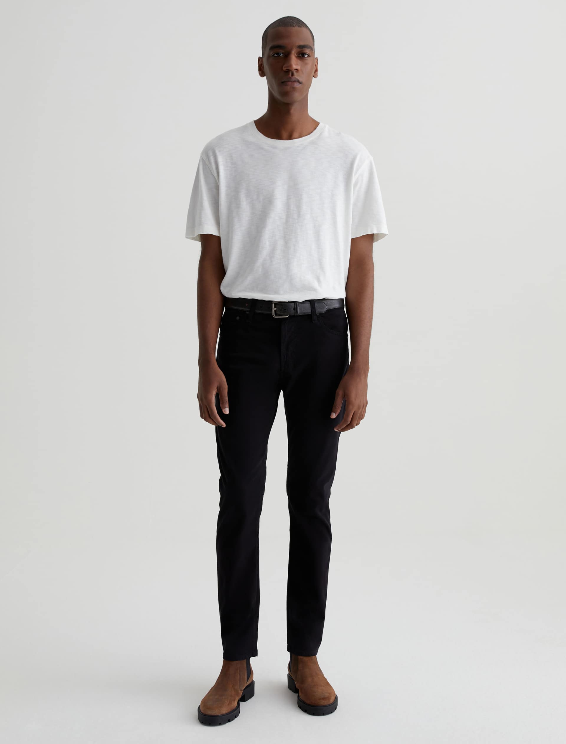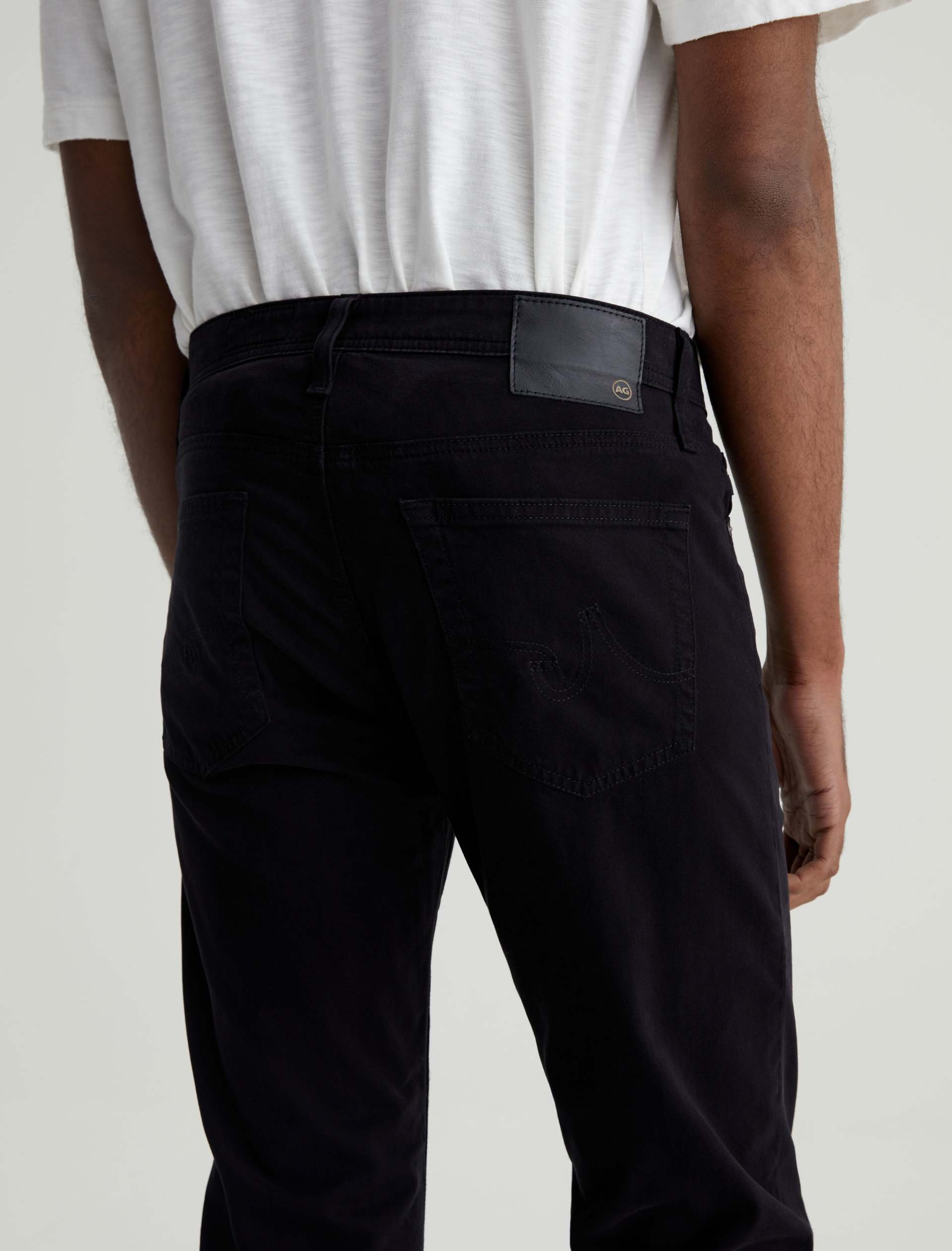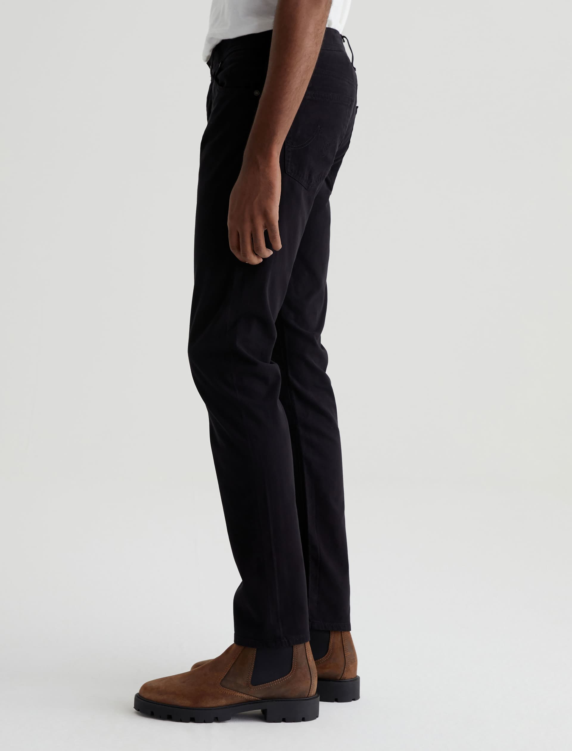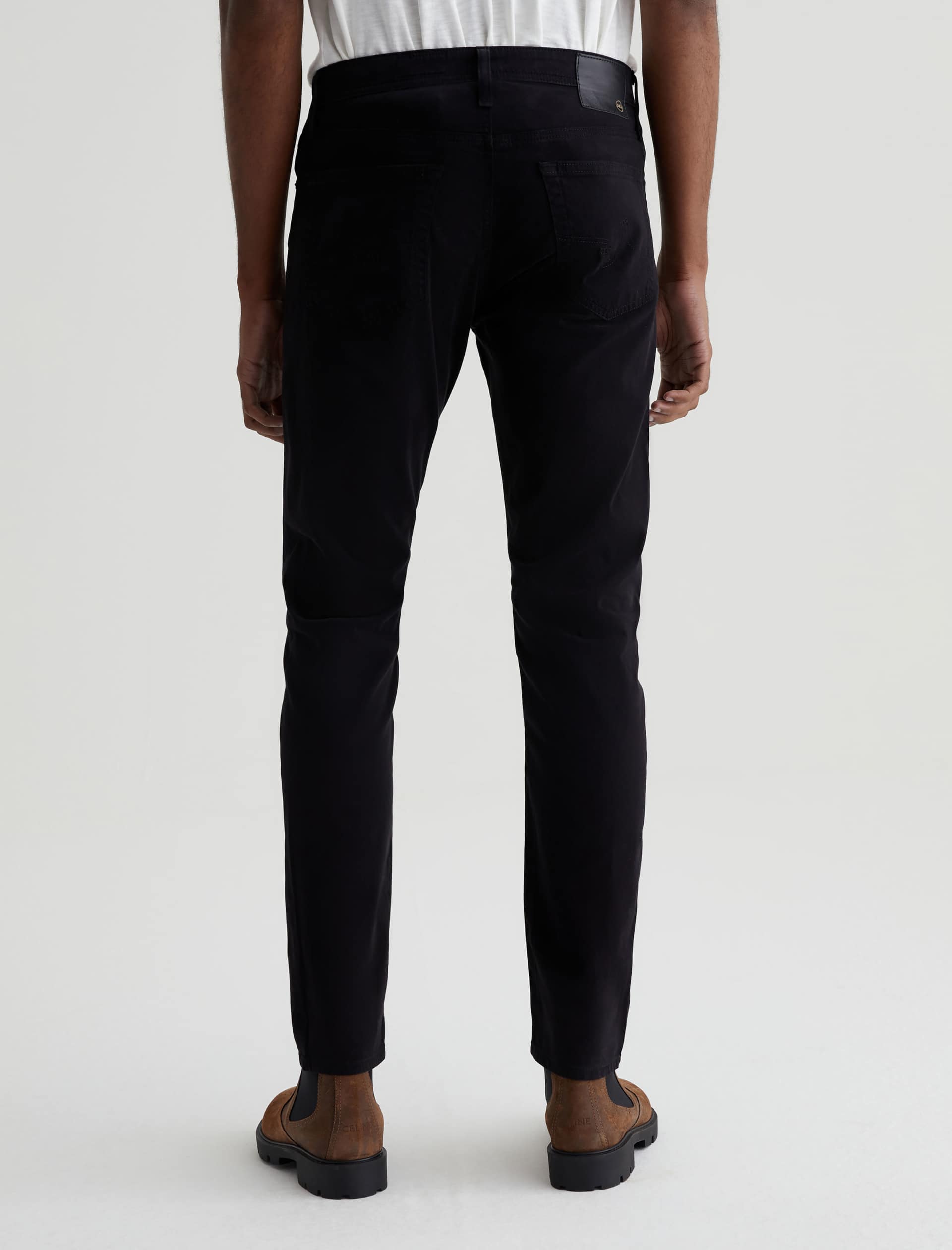 Dylan tailored slim pant for men features a deep black wash and is cut comfortably slim through thighs and tapered at leg opening. This men’s skinny jean is designed in a sueded sateen fabrication for a luxurious feel and premium look.