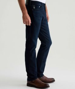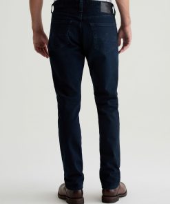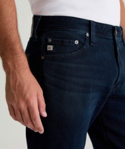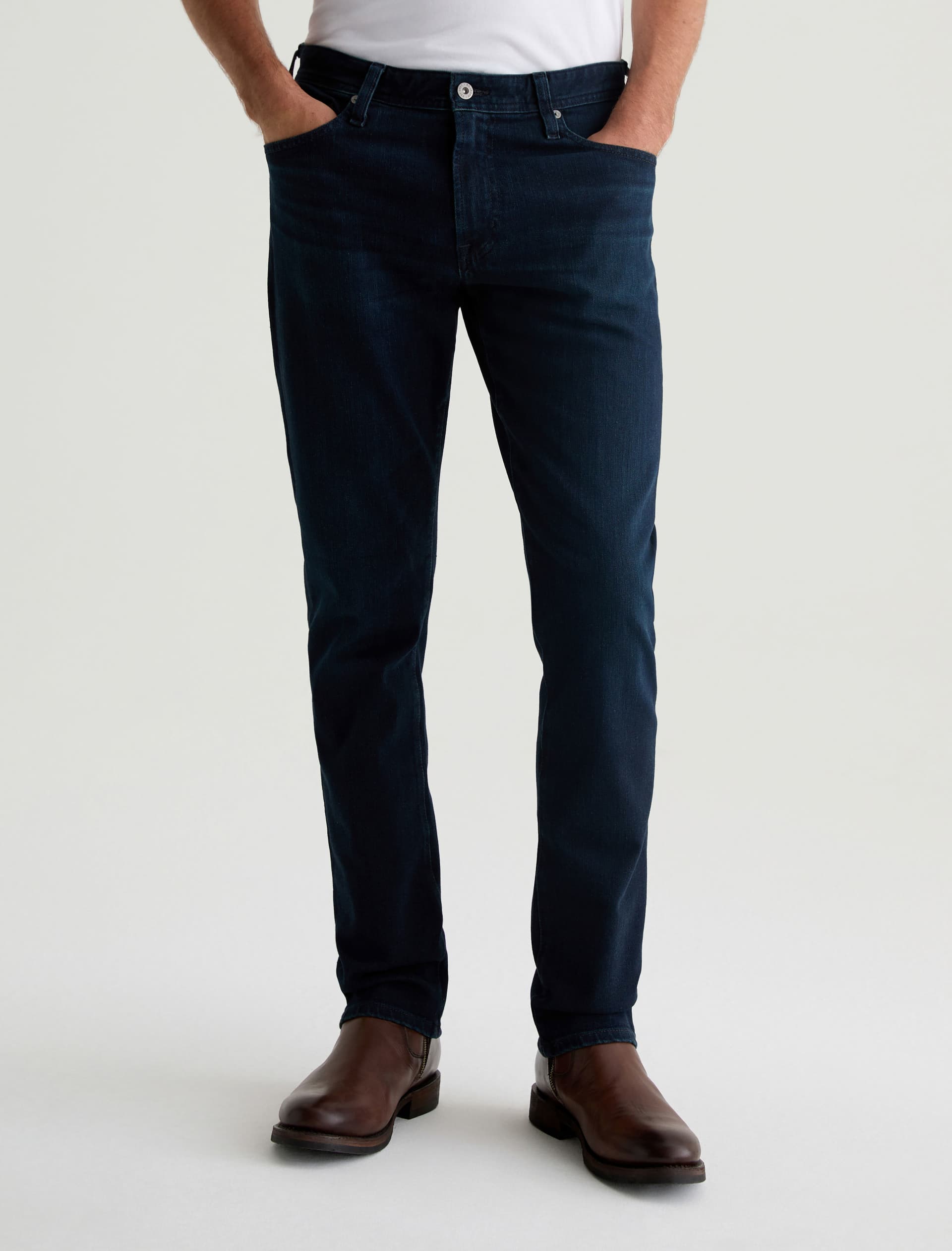 Everett is a slim straight jean for men featuring a dark denim wash—cut in a comfortable mid-rise waist with a straight fit that’s relaxed from hip to the knee before slightly tapering at the leg opening. This men’s slim straight jean is designed in 11.5 oz. 360° Denim.