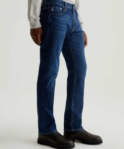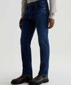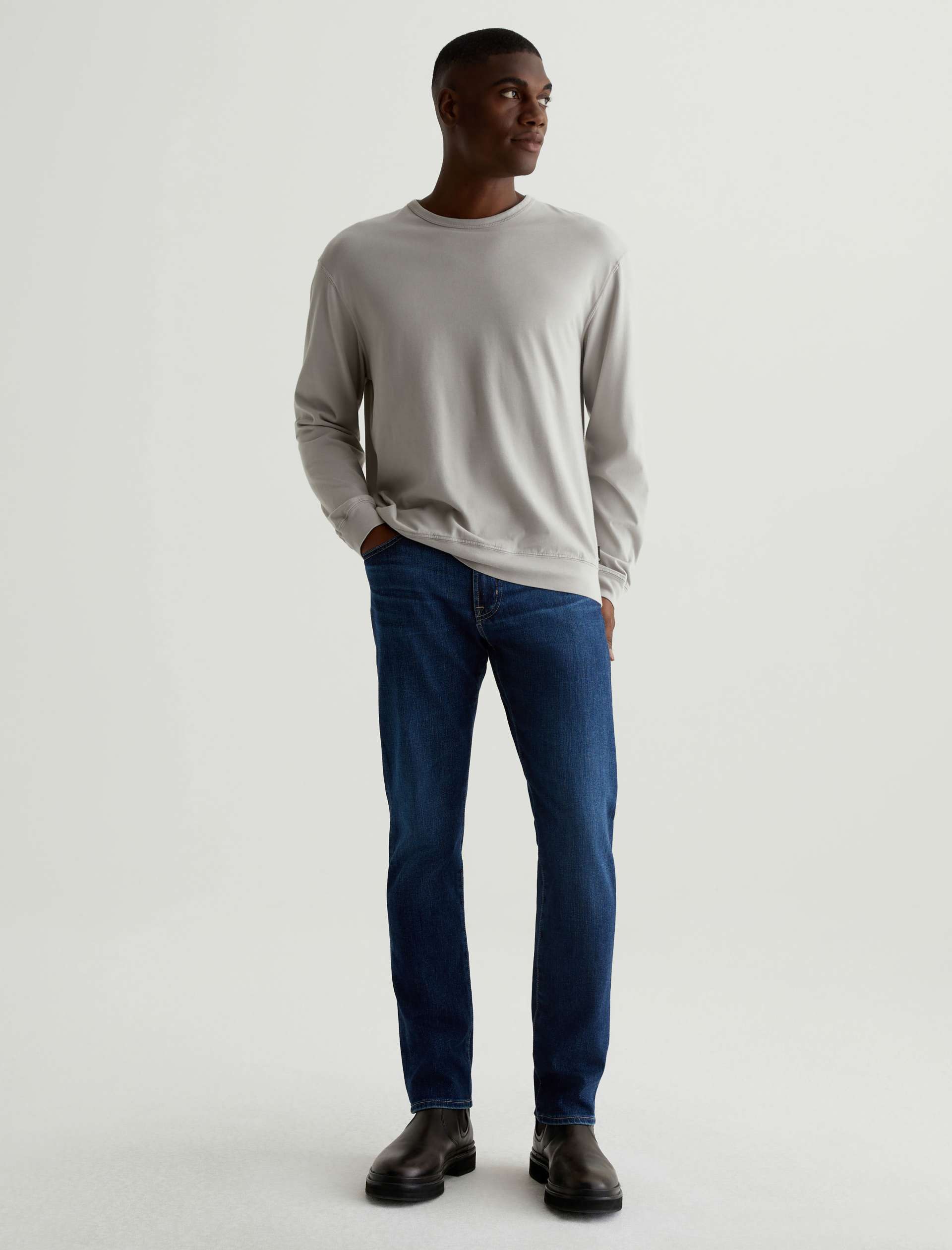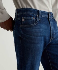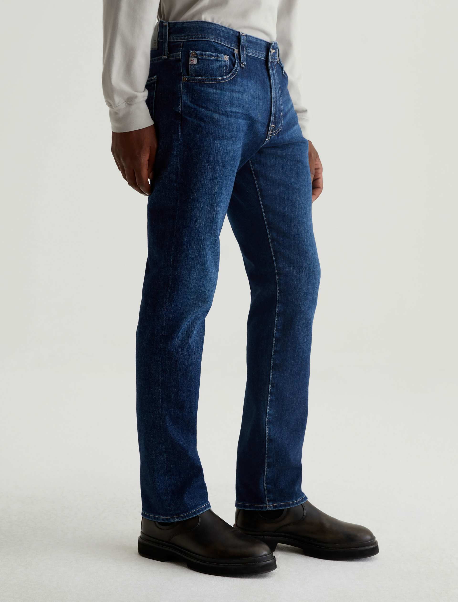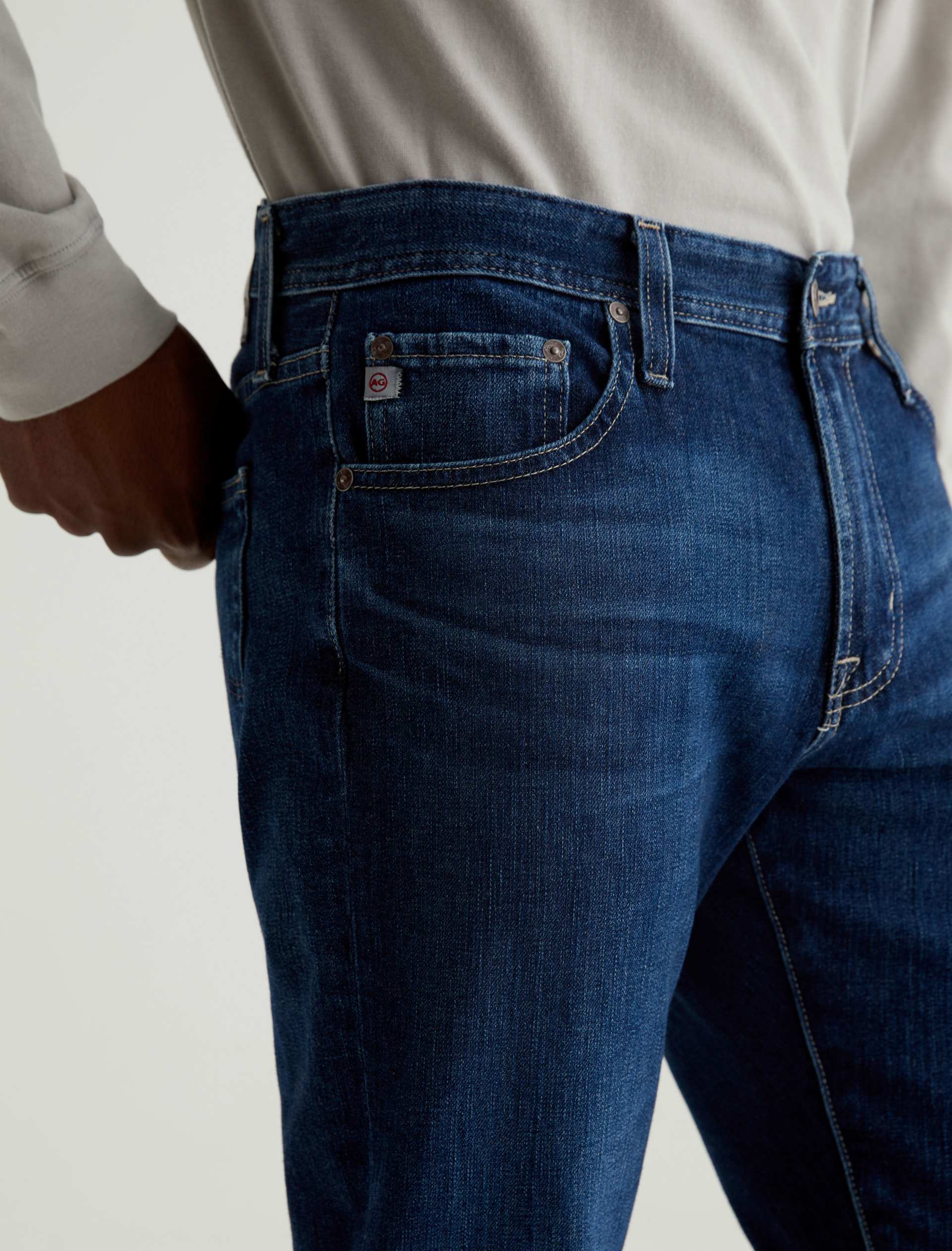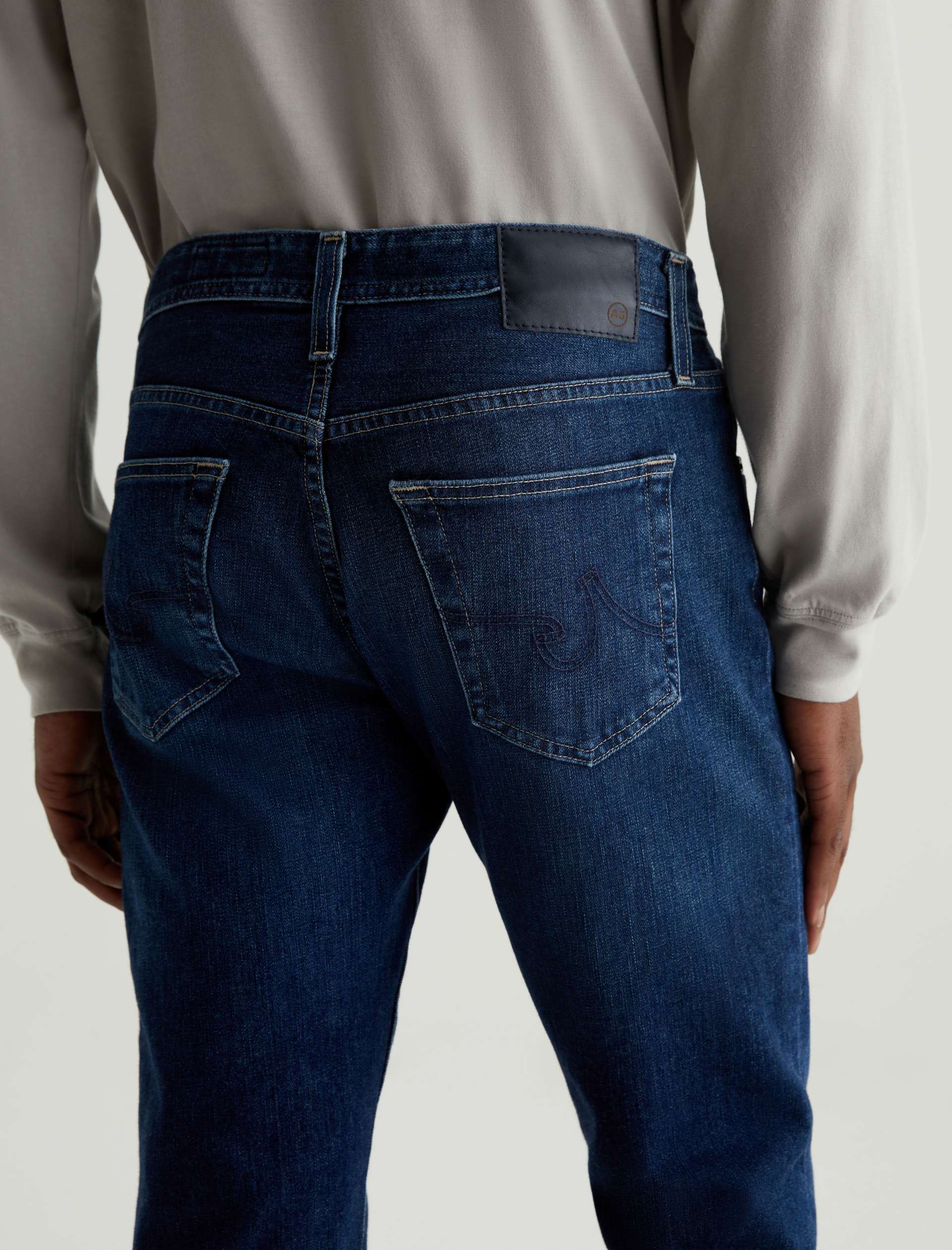 Everett is a slim straight jean for men featuring a dark denim wash—cut in a comfortable mid-rise waist with a straight fit that’s relaxed from hip to the knee before slightly tapering at the leg opening. This men’s slim straight jean is designed in 11 oz. Flex 360° Denim.
