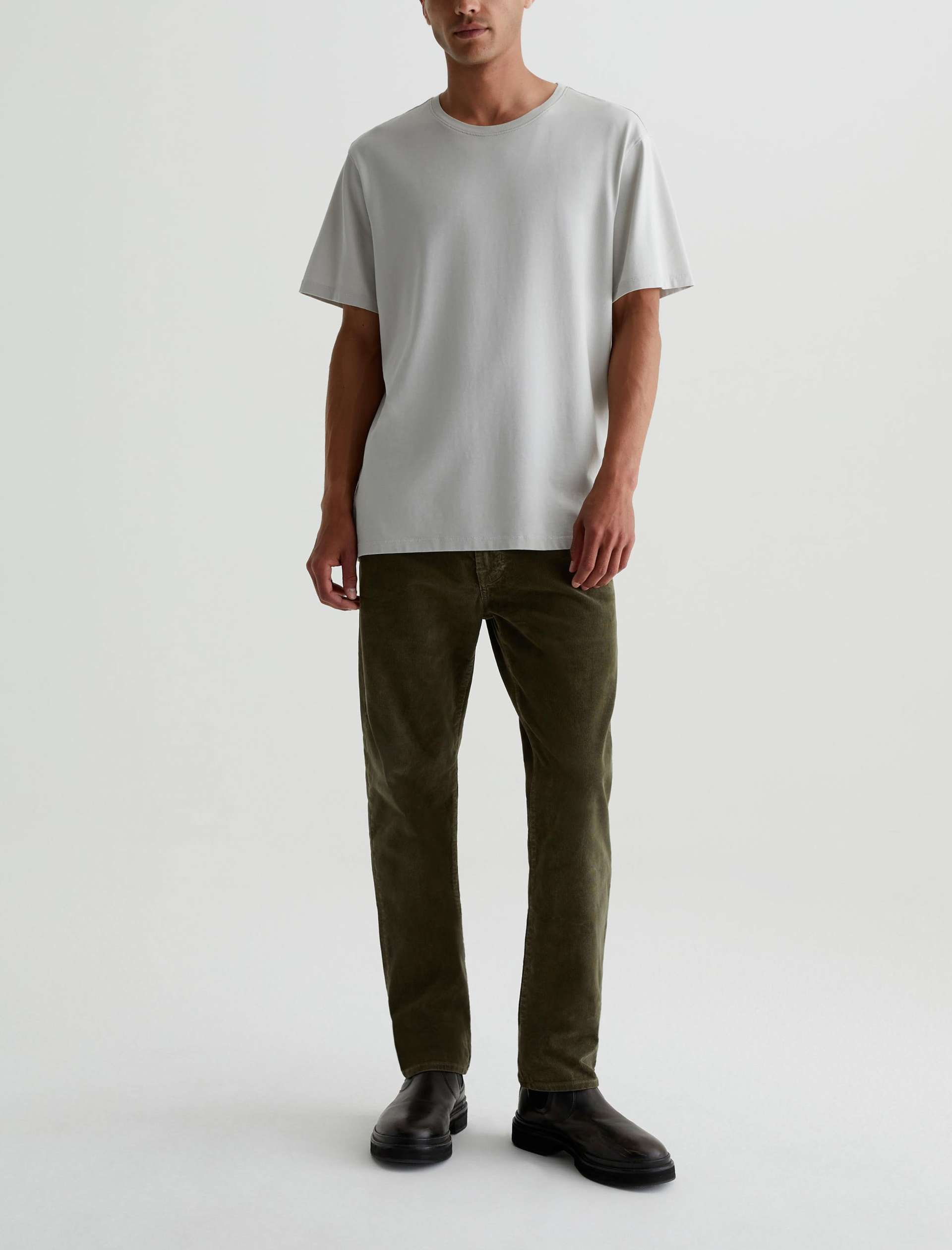 Our Everett slim-straight corduroy pants for men have a soft, plush feel in 8.8 oz. Range Stretch Cord fabric from Japan. Designed with fine-wale construction, this pair has been sulfur-dyed for a versatile dark-green shade. The style has a mid-rise waist and a straight fit that’s relaxed from hip to knee before slight