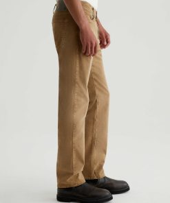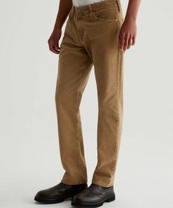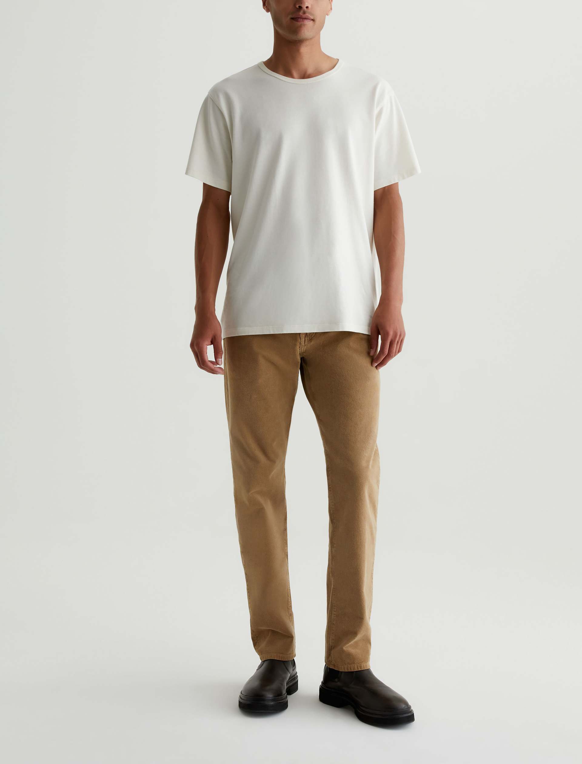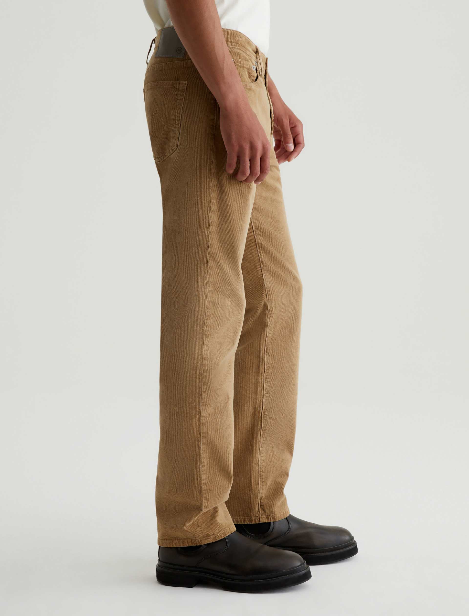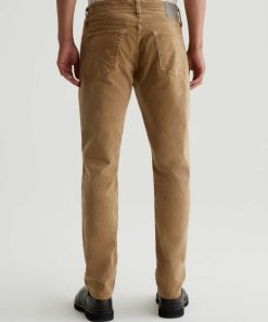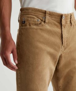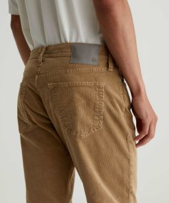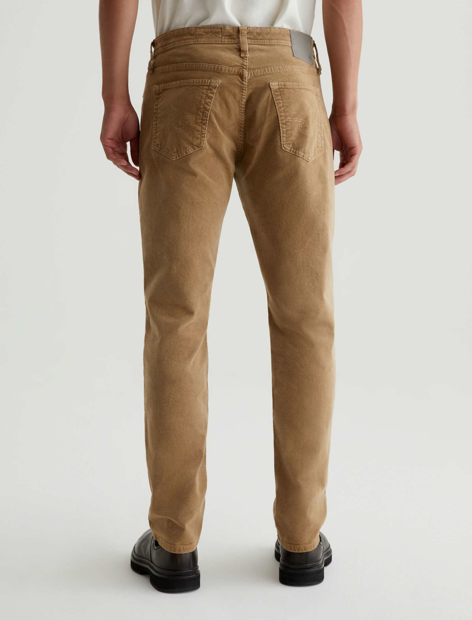 Our Everett slim-straight corduroy pants for men have a soft, plush feel in 8.8 oz. Range Stretch Cord fabric from Japan. Designed with fine-wale construction, this pair has been sulfur-dyed for a khaki shade that’s got subtle variations of color at the seams and edges. The style has a mid-rise waist and a straight fit