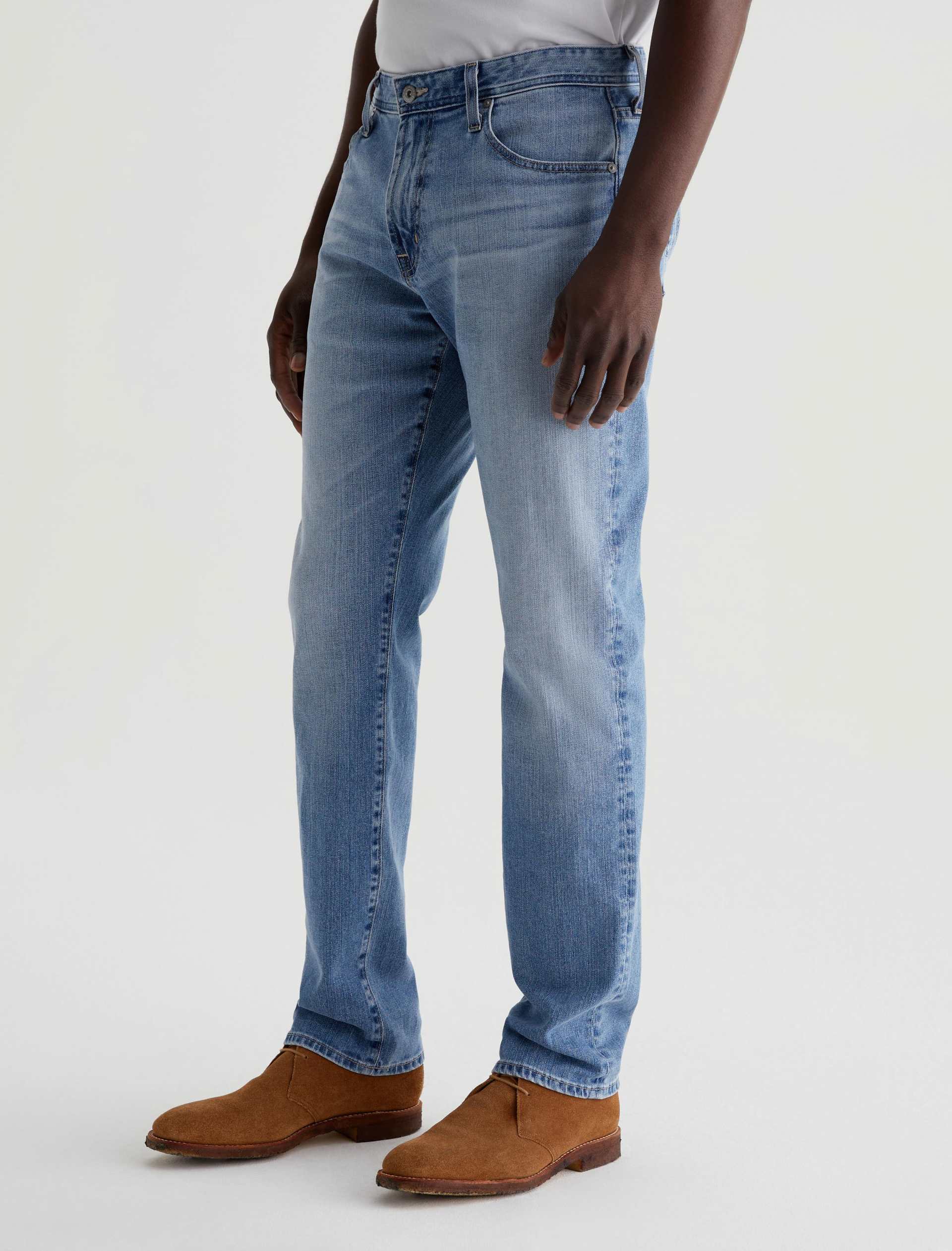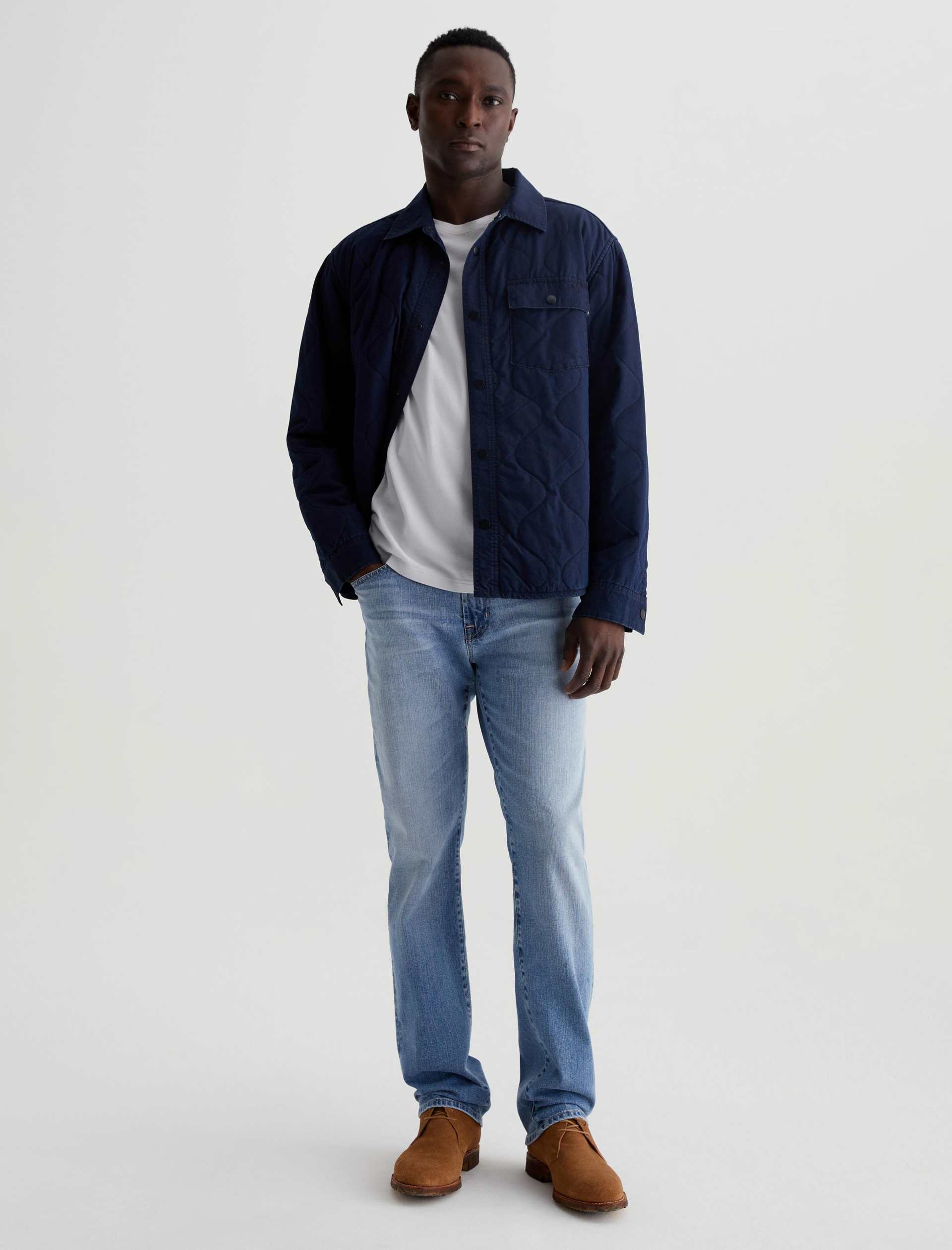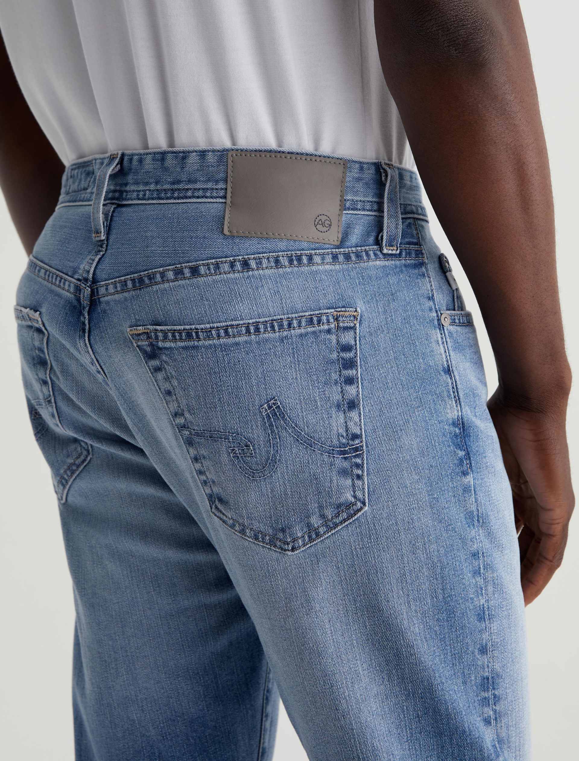 Everett is a slim-straight jean in stretch-blend 11 oz. Lead Denim from Japan. The five-pocket style has a comfortable mid-rise waist and a straight fit that’s relaxed from hip to knee before slightly tapering at the leg openings. These slim-straight men’s jeans comes in a medium indigo shade that’s been lightened by f