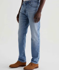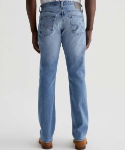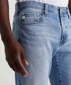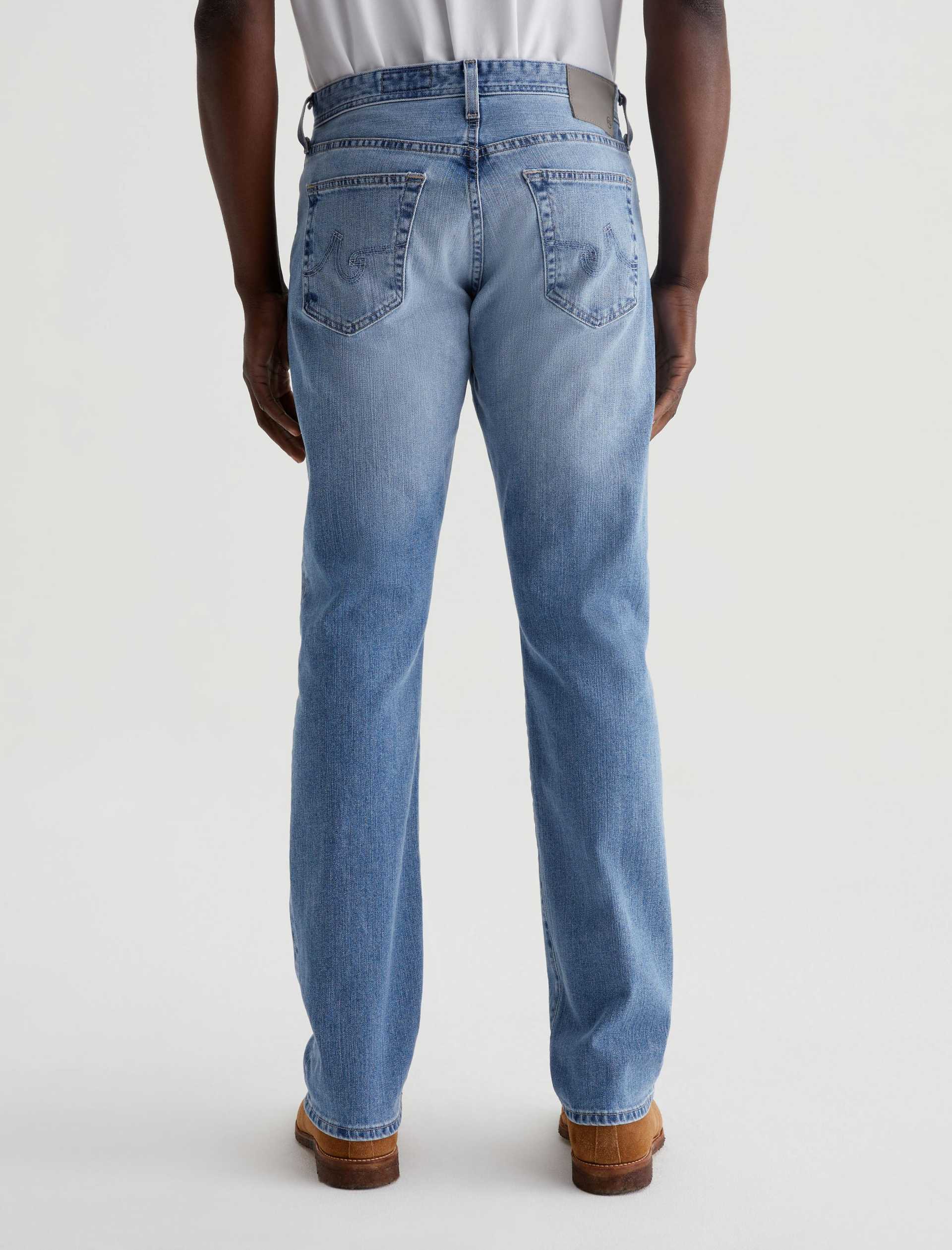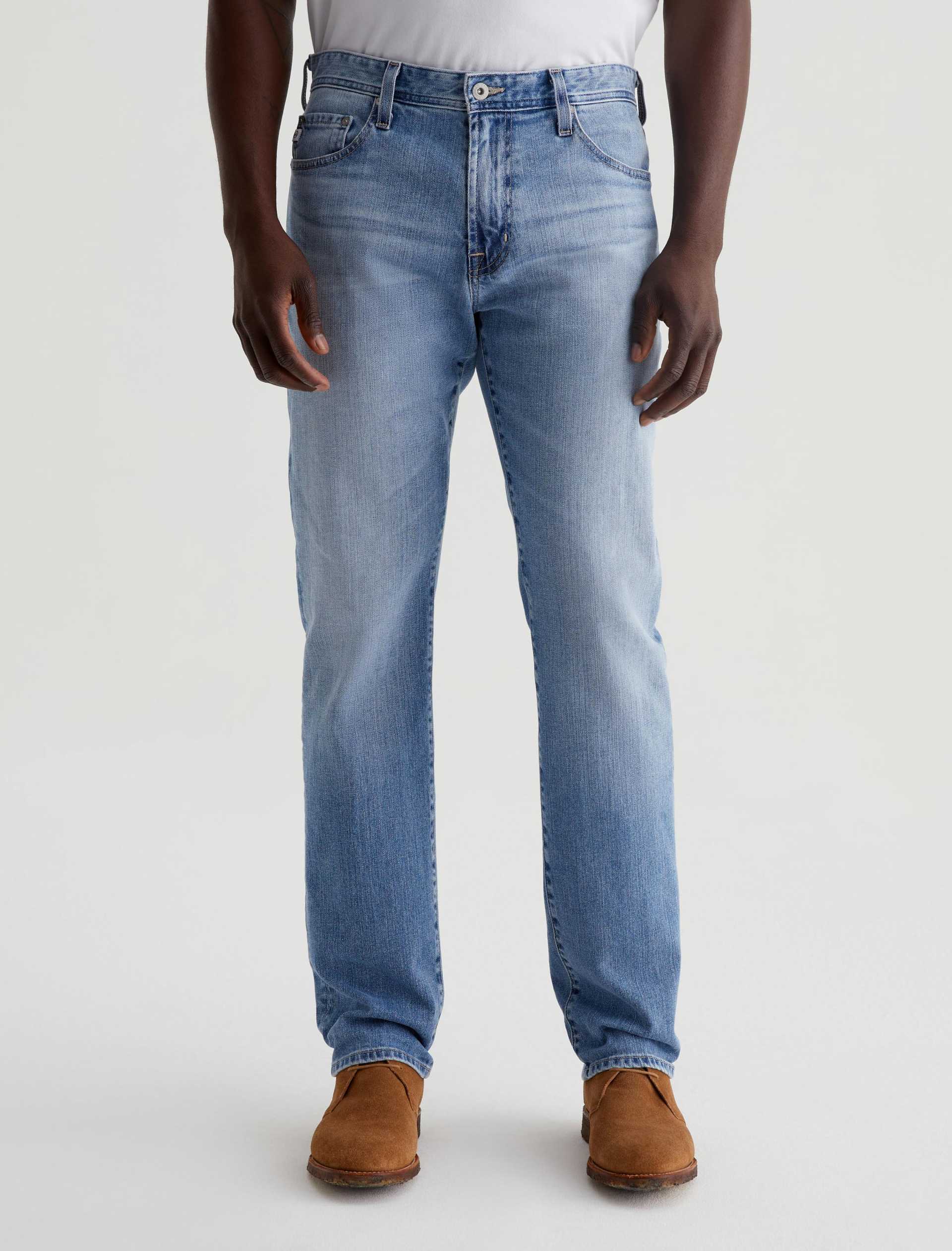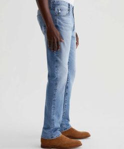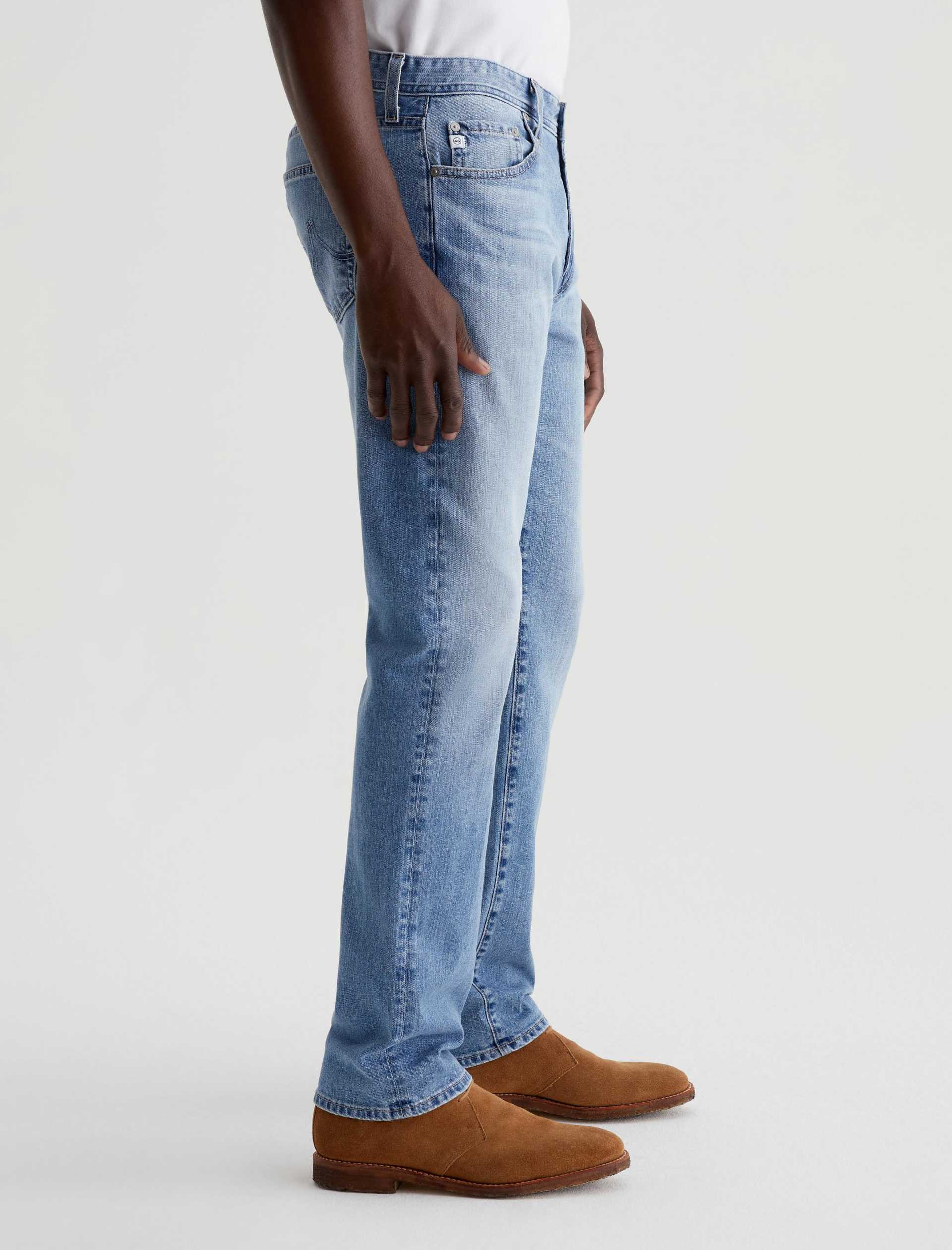 Everett is a slim-straight jean in stretch-blend 11 oz. Lead Denim from Japan. The five-pocket style has a comfortable mid-rise waist and a straight fit that’s relaxed from hip to knee before slightly tapering at the leg openings. These slim-straight men’s jeans comes in a medium indigo shade that’s been lightened by f