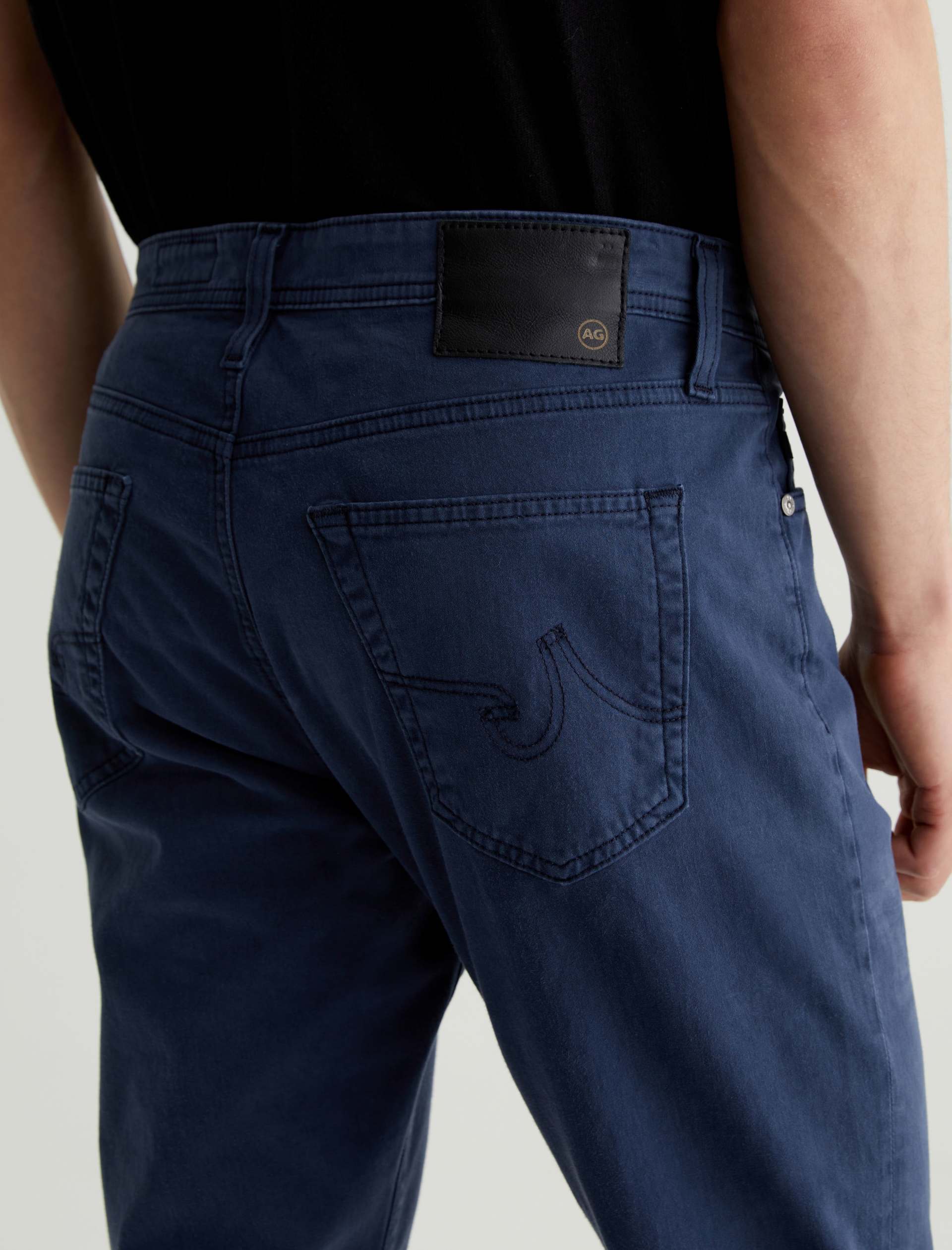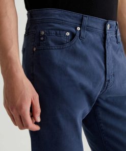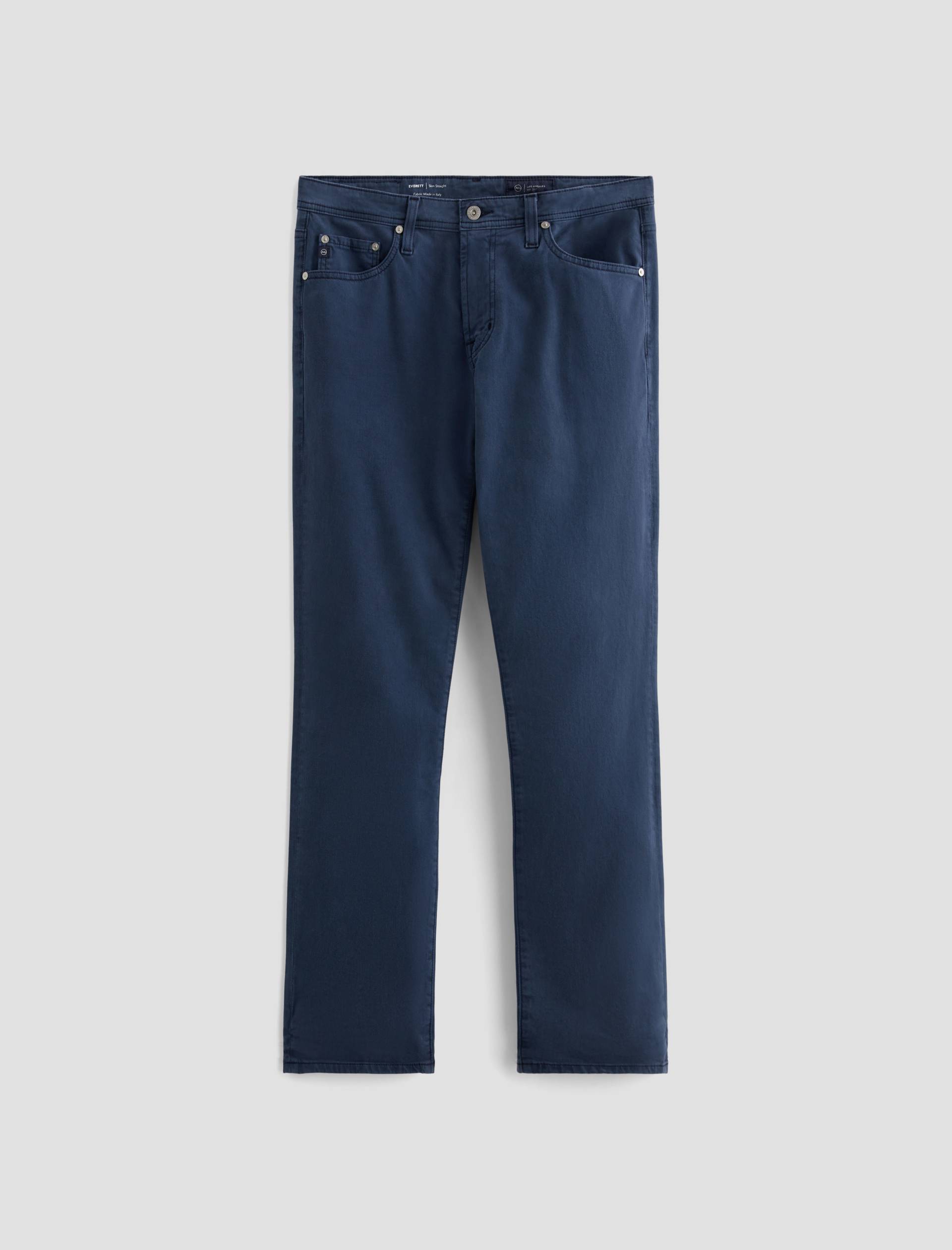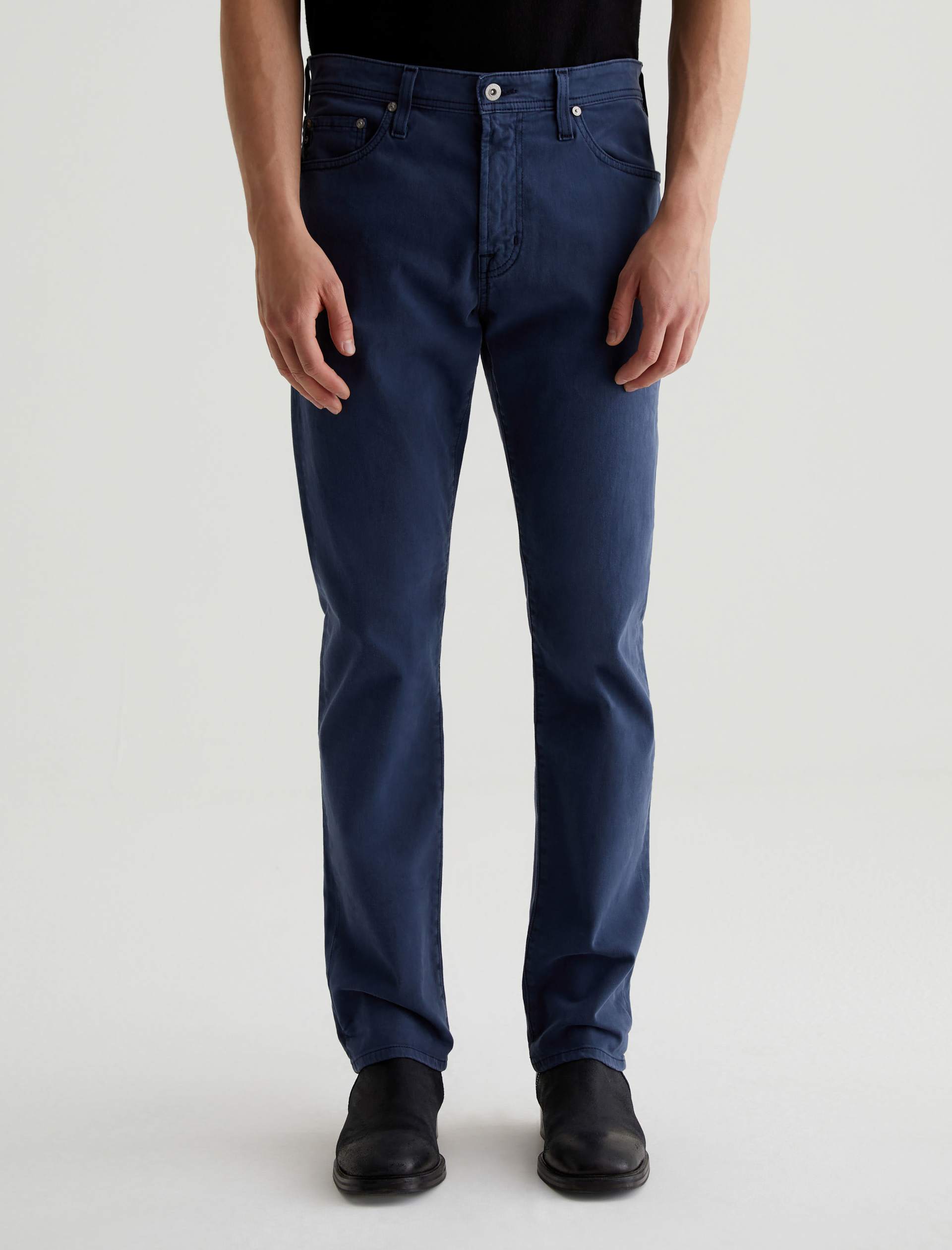Our Everett slim-straight men’s pants have a refined look and soft, supple feel in our best-selling 8.4 oz. Sueded Stretch Sateen from Italy. Featuring a sulfur-dyed dark-blue shade, this pair features a comfortable mid-rise waist and a straight fit that’s relaxed from hip to knee before slightly tapering at the leg op