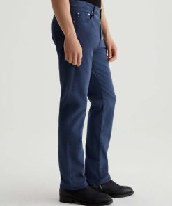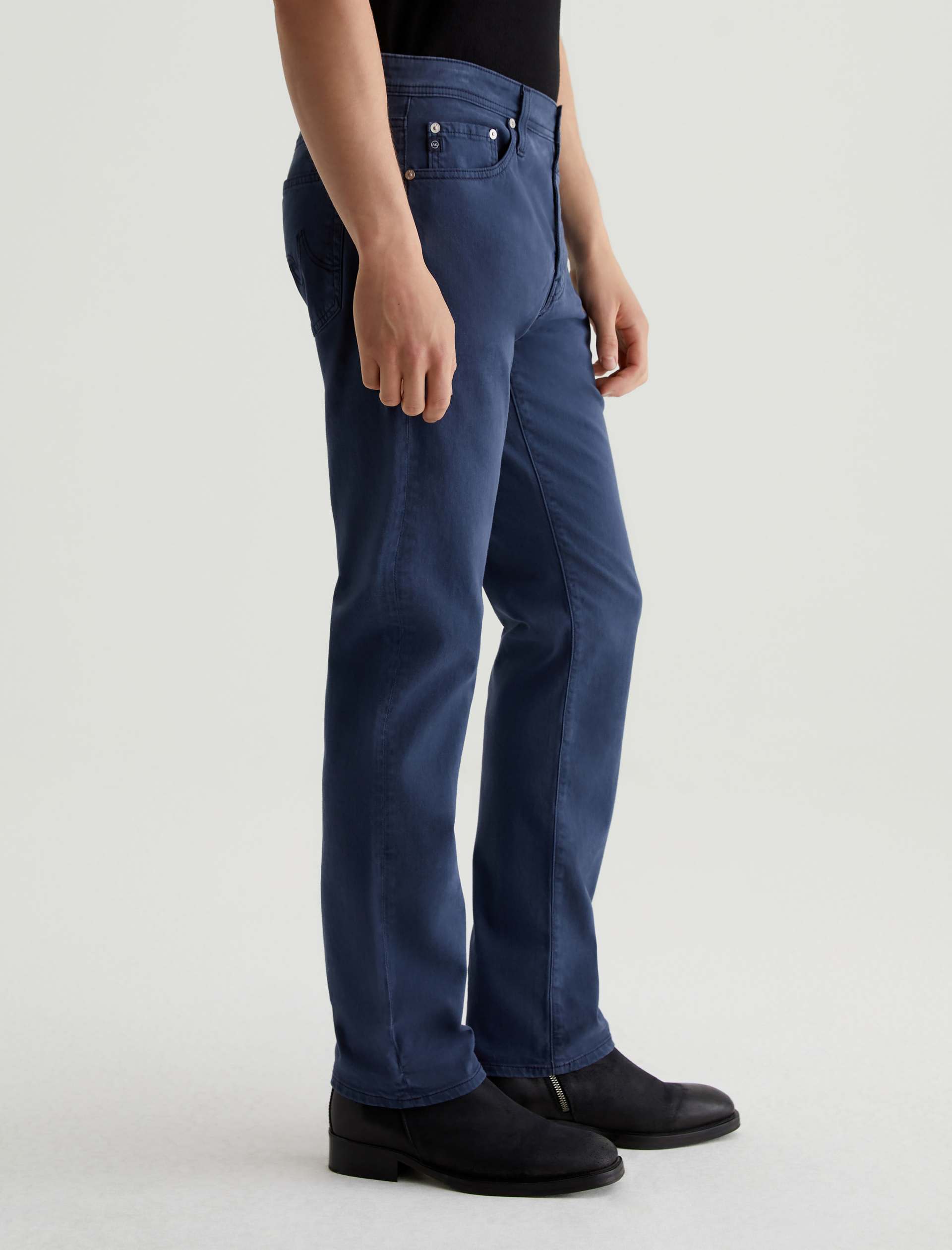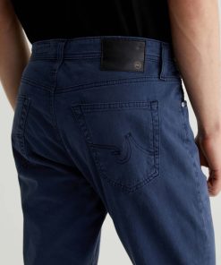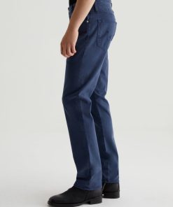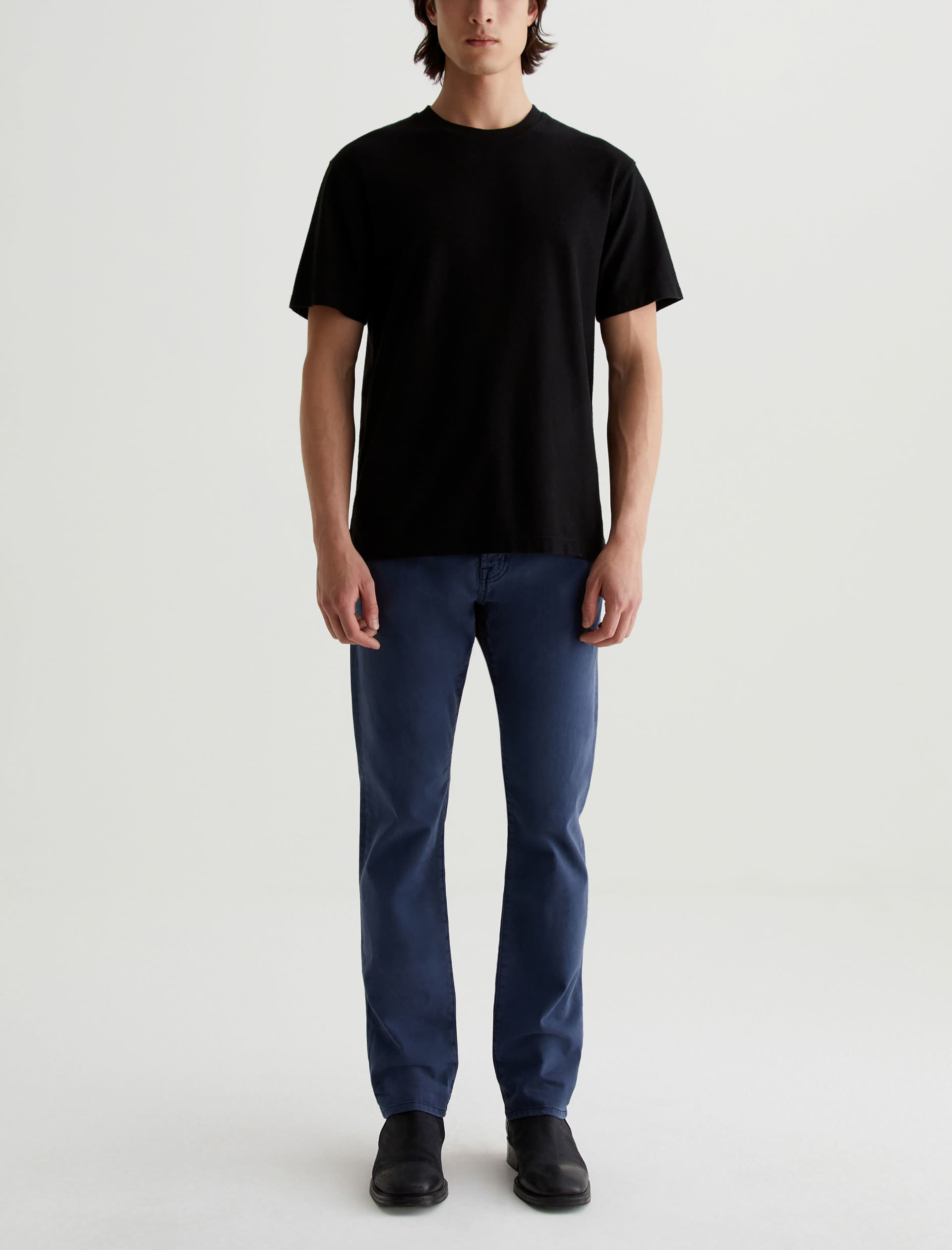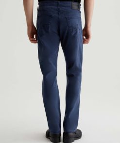 Our Everett slim-straight men’s pants have a refined look and soft, supple feel in our best-selling 8.4 oz. Sueded Stretch Sateen from Italy. Featuring a sulfur-dyed dark-blue shade, this pair features a comfortable mid-rise waist and a straight fit that’s relaxed from hip to knee before slightly tapering at the leg op