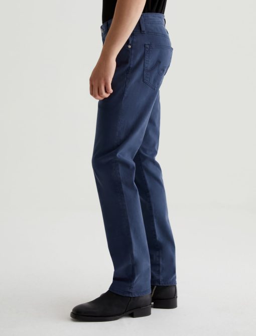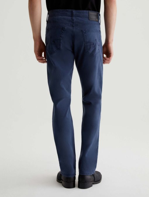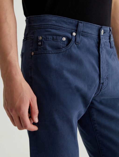 Our Everett slim-straight men’s pants have a refined look and soft, supple feel in our best-selling 8.4 oz. Sueded Stretch Sateen from Italy. Featuring a sulfur-dyed dark-blue shade, this pair features a comfortable mid-rise waist and a straight fit that’s relaxed from hip to knee before slightly tapering at the leg op