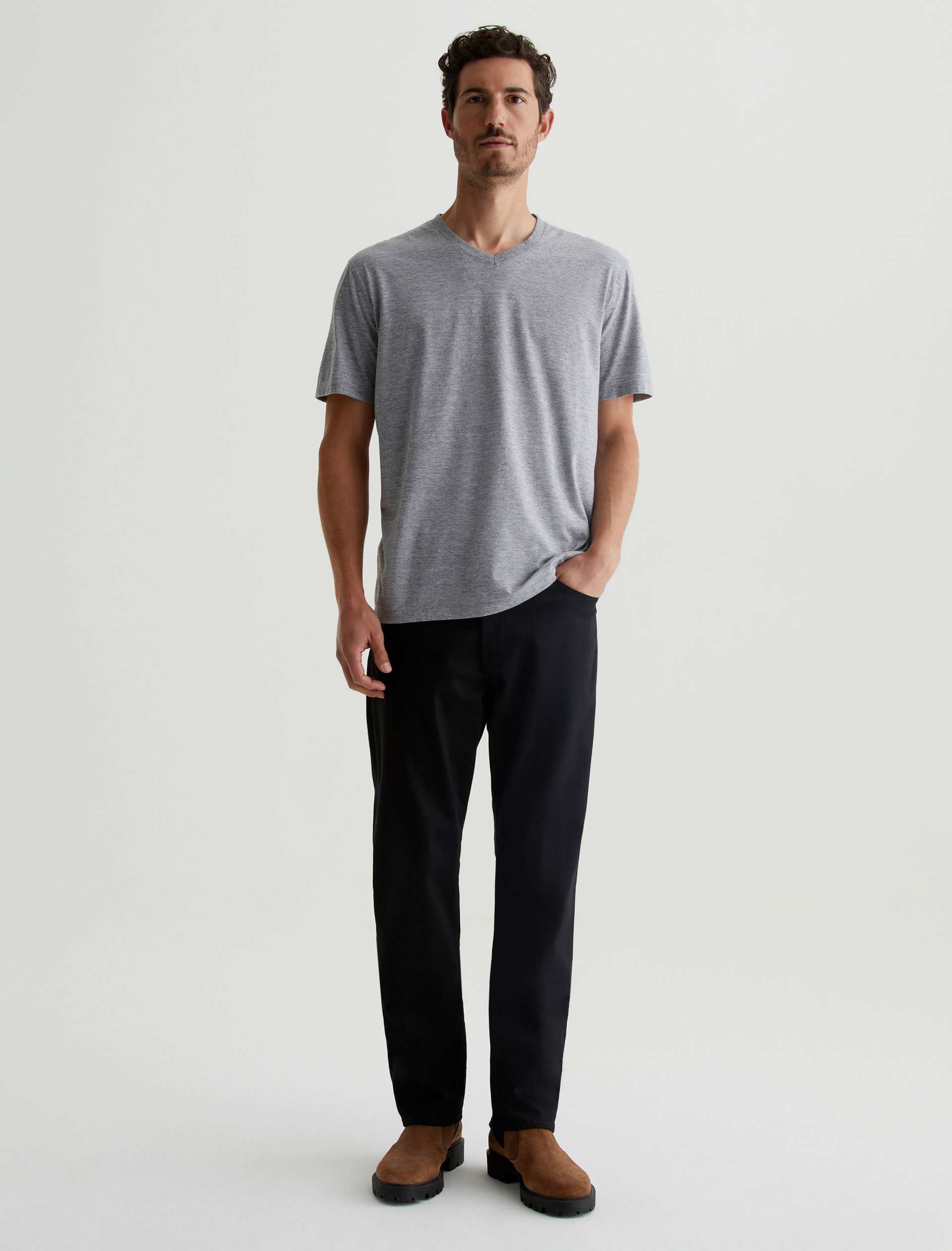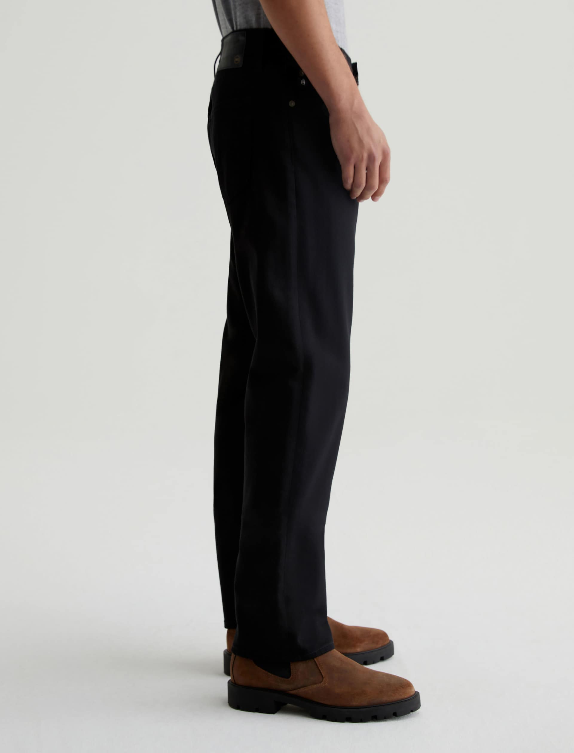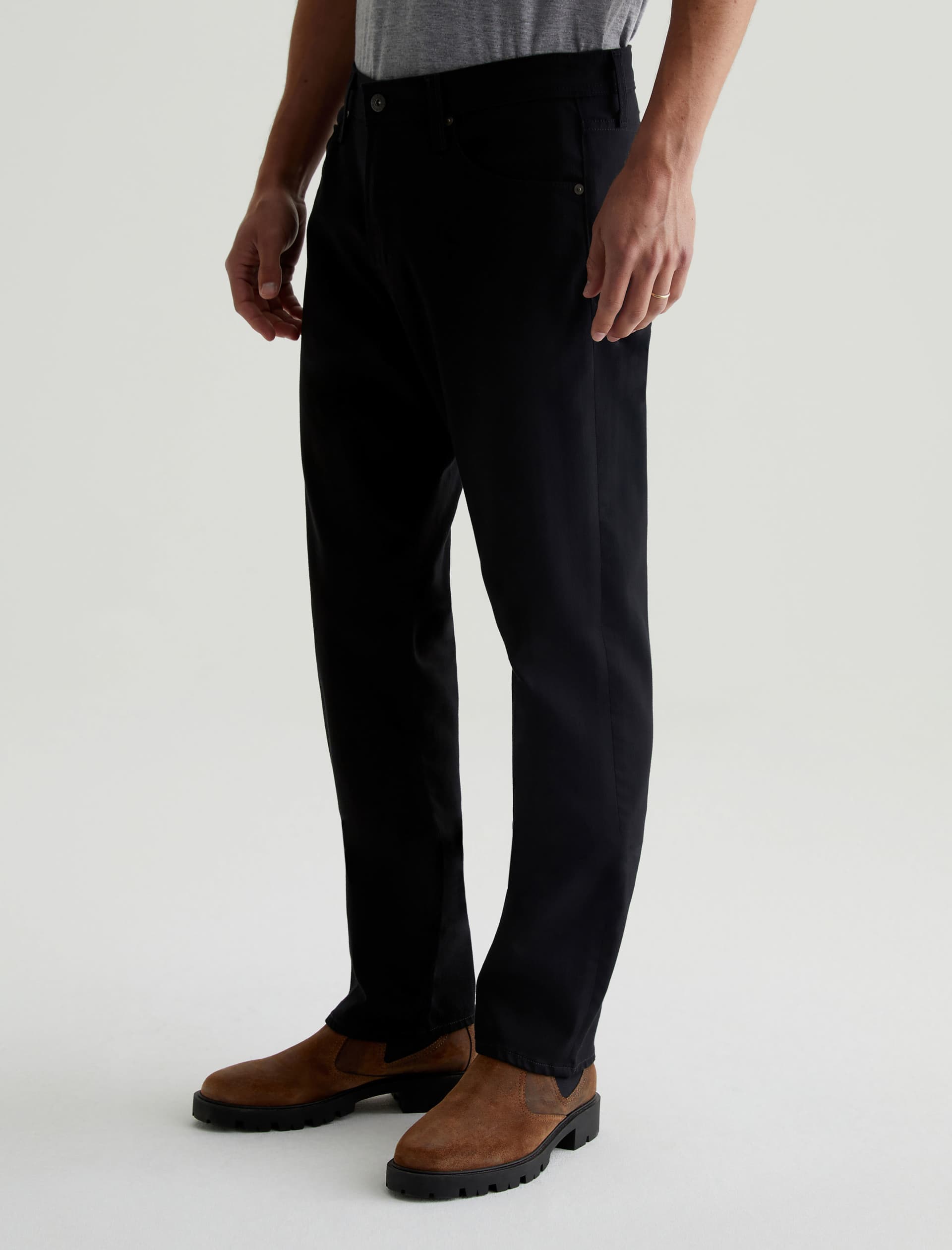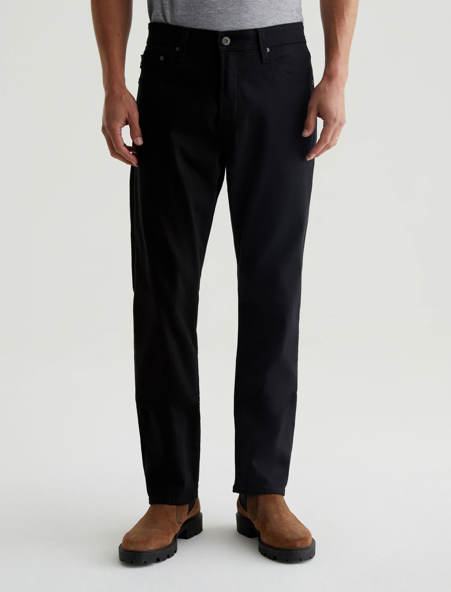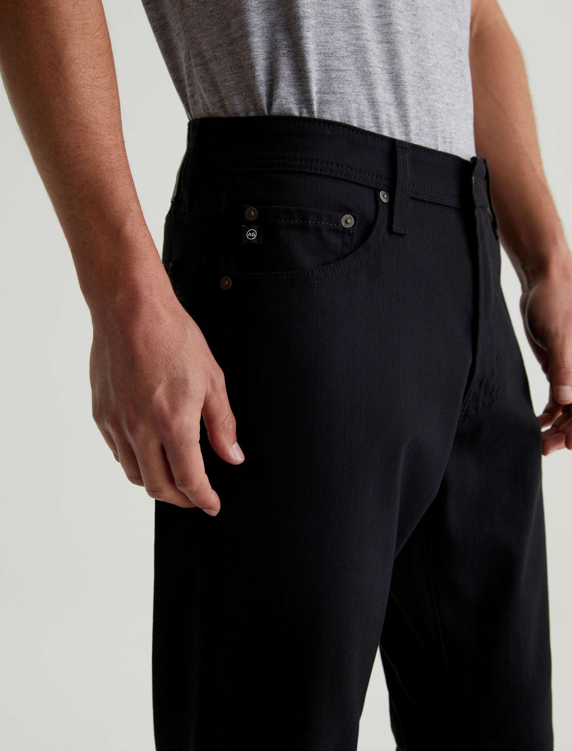 Graduate is a tailored leg jean for men featuring a rich black hue. Graduate is cut in a slim mid-rise waist with a relaxed fit from the hip to the knee before tapering at the leg opening. This men’s slim straight jean is designed in 10 oz. Dover Stretch Denim.