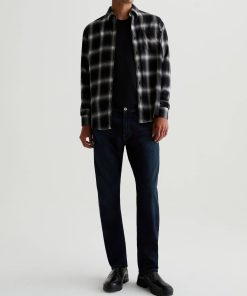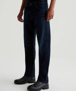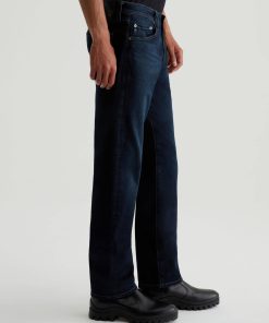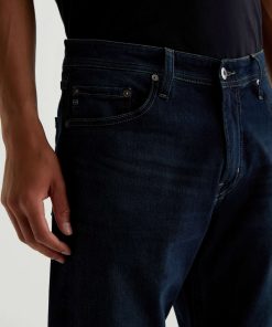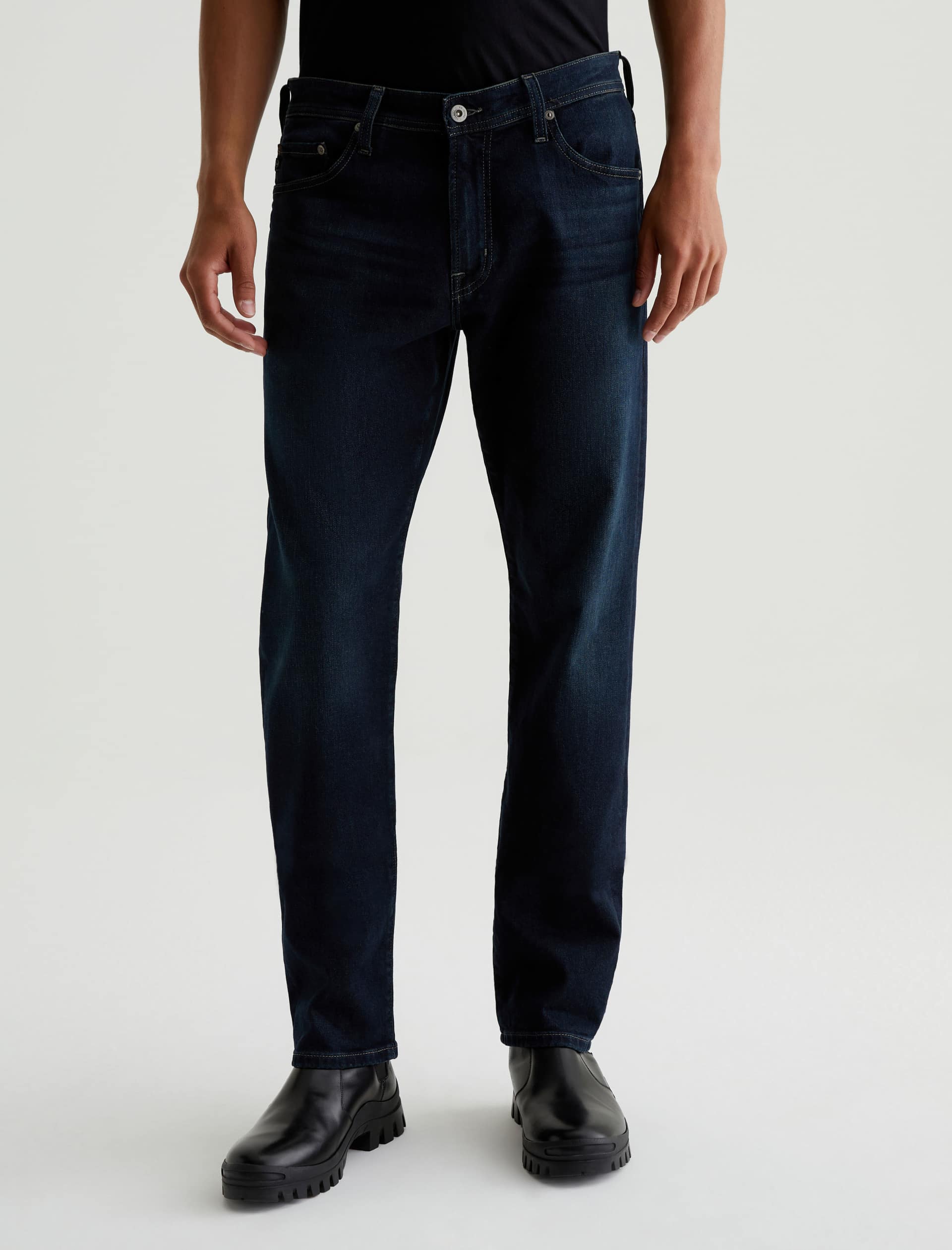 Our Graduate five-pocket men’s jeans feature a classic tailored silhouette in a dark indigo wash with subtle fading and contrast stitching. Topped by a slim mid-rise waist, it’s got a relaxed fit from hip to knee before tapering at the leg opening. This pair comes in 9.4 oz. Hyper Soft Indigo Denim, a velvety-soft left