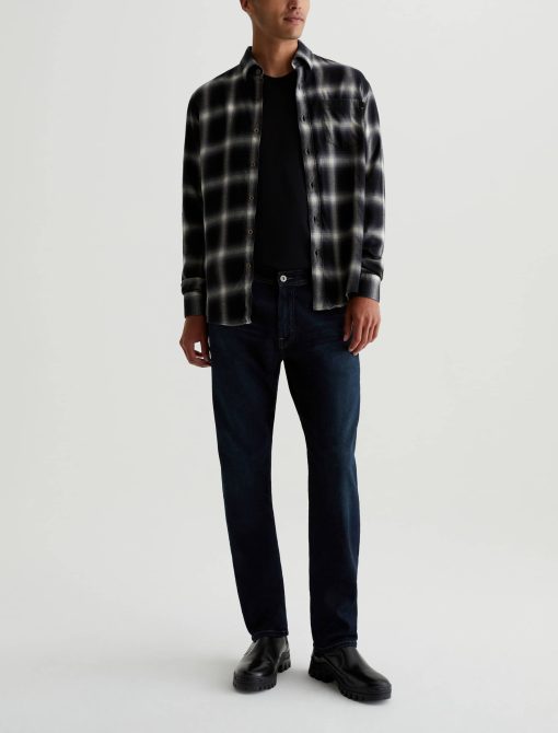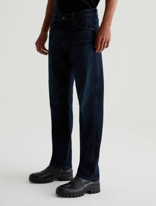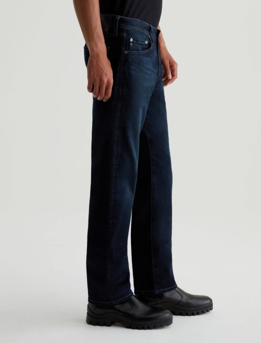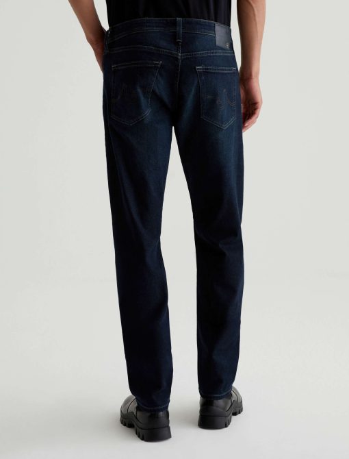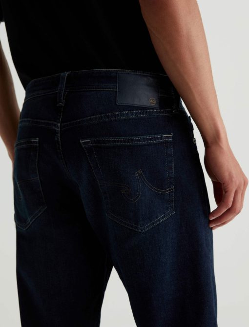 Our Graduate five-pocket men’s jeans feature a classic tailored silhouette in a dark indigo wash with subtle fading and contrast stitching. Topped by a slim mid-rise waist, it’s got a relaxed fit from hip to knee before tapering at the leg opening. This pair comes in 9.4 oz. Hyper Soft Indigo Denim, a velvety-soft left