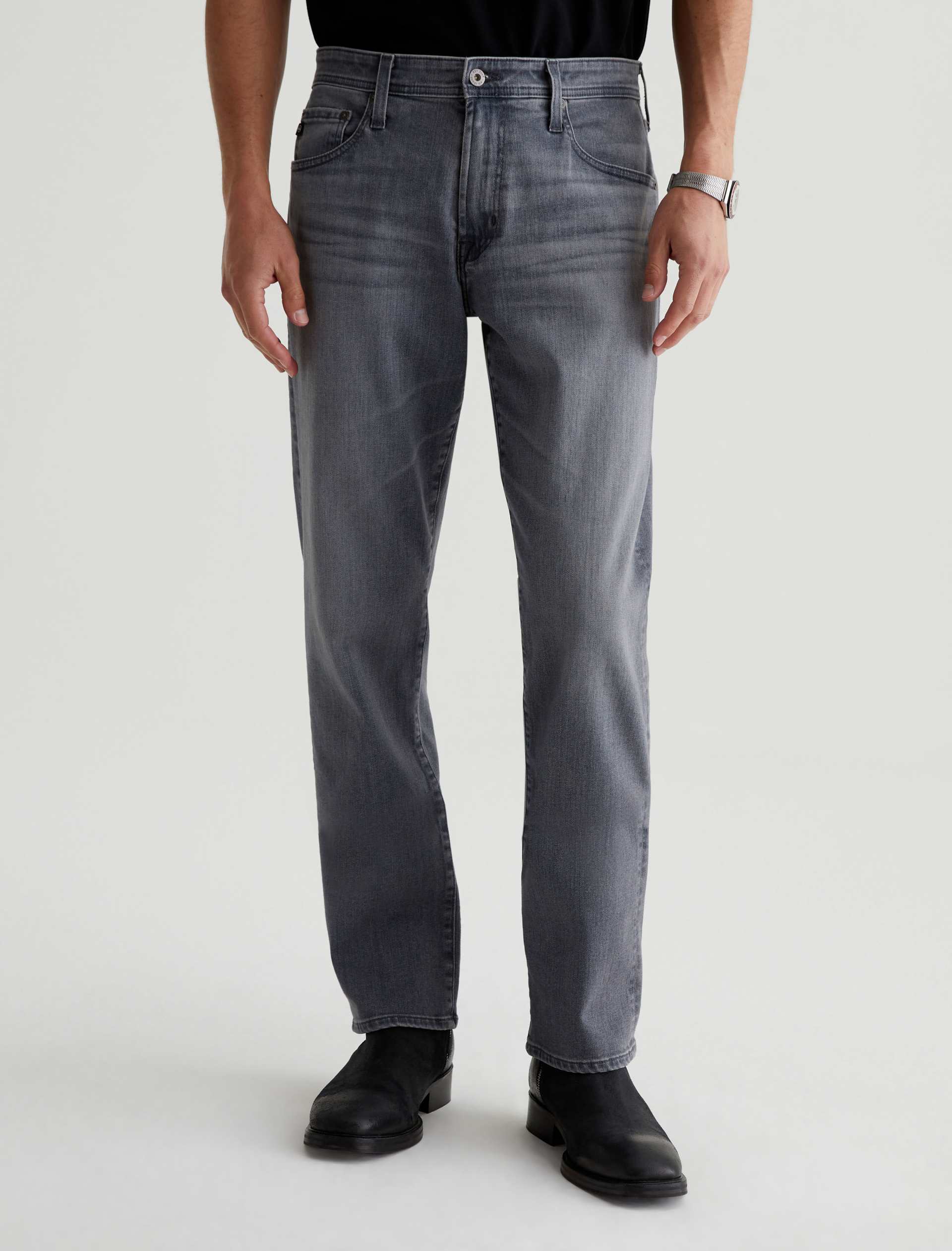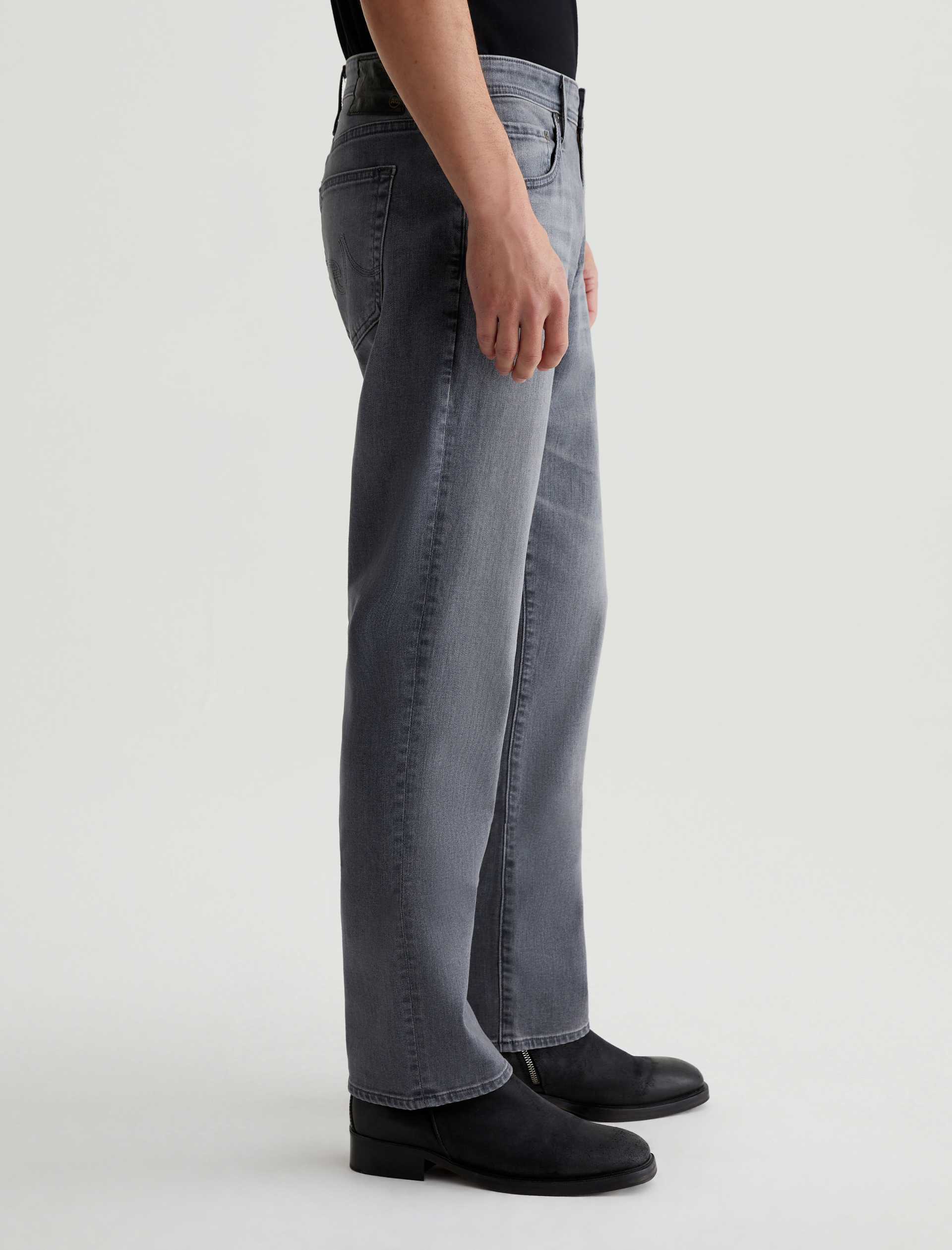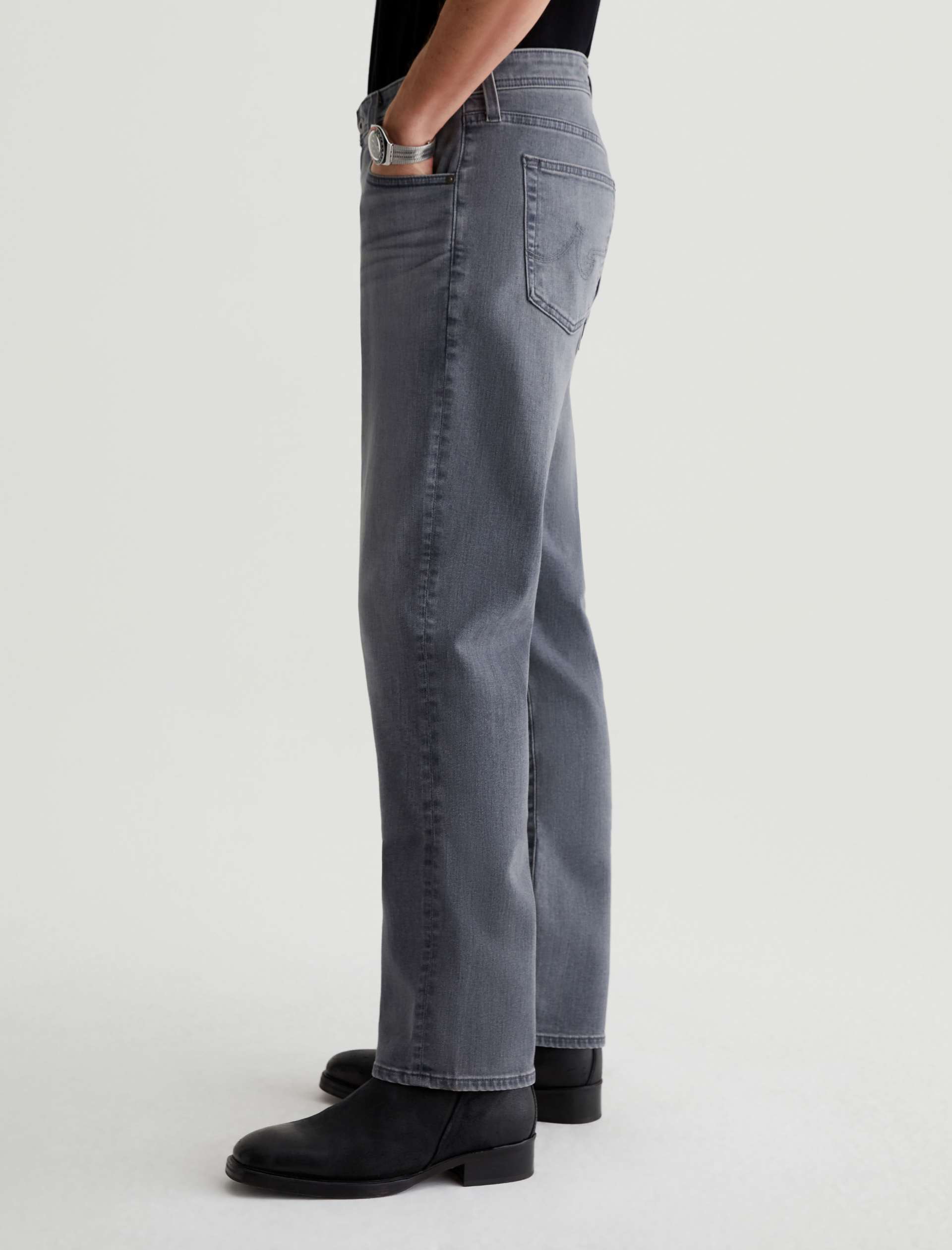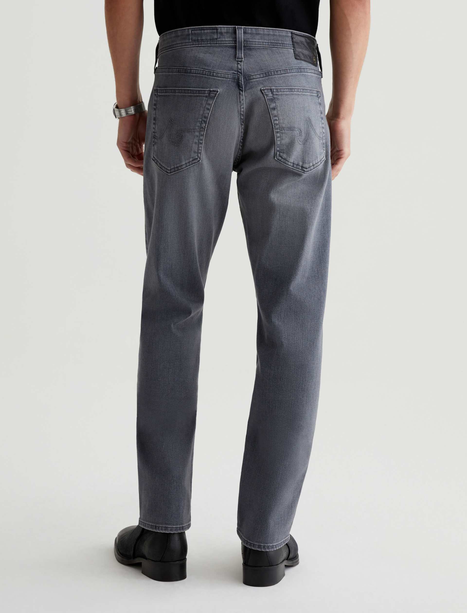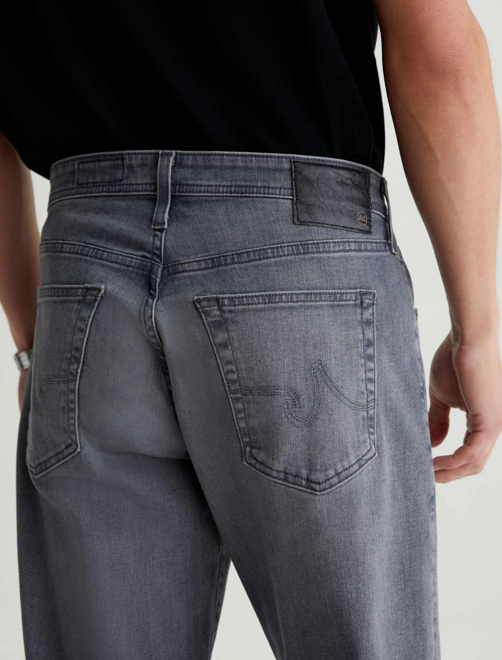 Our best-selling Graduate men’s jeans are updated in 10 oz. Ashen Stretch Denim with a faded grey wash. Featuring a slim mid-rise waist, this five-pocket style has a tailored silhouette that’s relaxed from hip to knee and tapered at the leg opening. Complete with a zip fly and button closure.