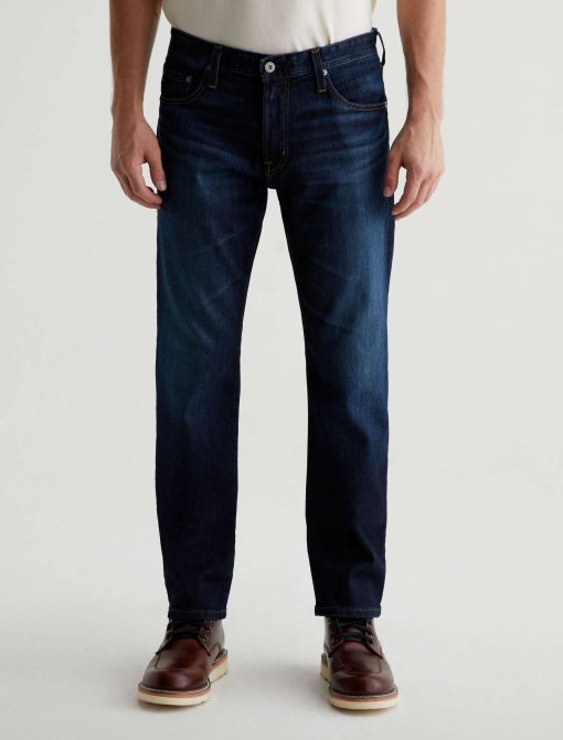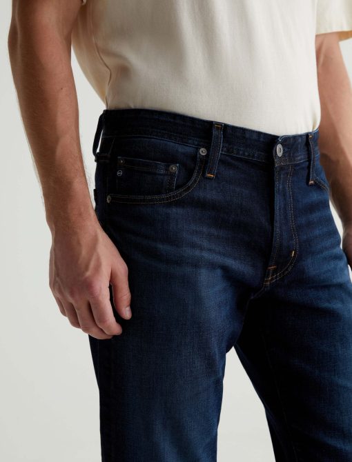 The Graduate is a tailored leg jean for men, done here in a classic dark indigo wash with fading and whiskering. These men’s jeans are cut with a slim mid-rise waist and a relaxed fit from the hip to knee before tapering at the leg opening. The pair features 11.75 oz. Union Dark Denim with comfort stretch. Marigold top