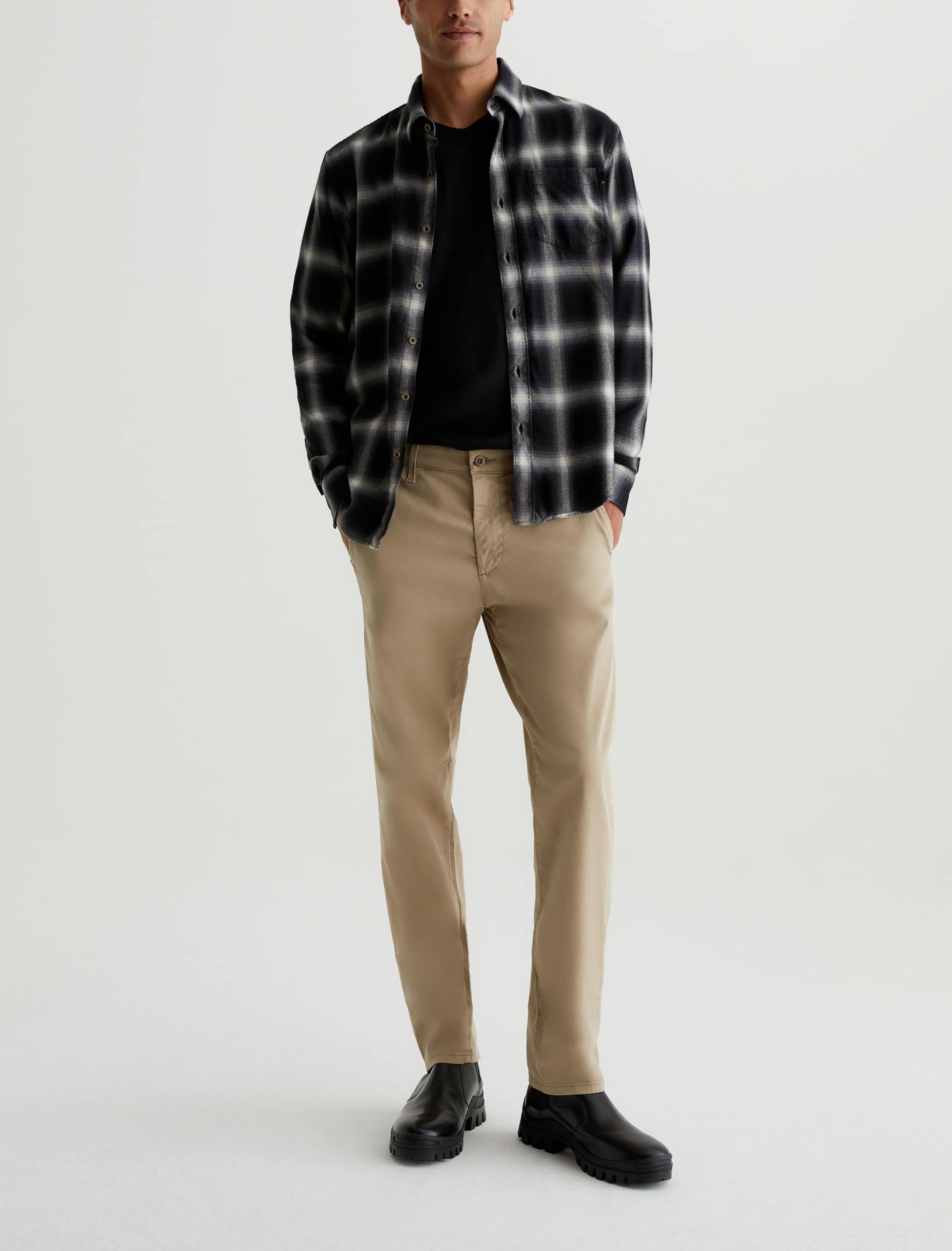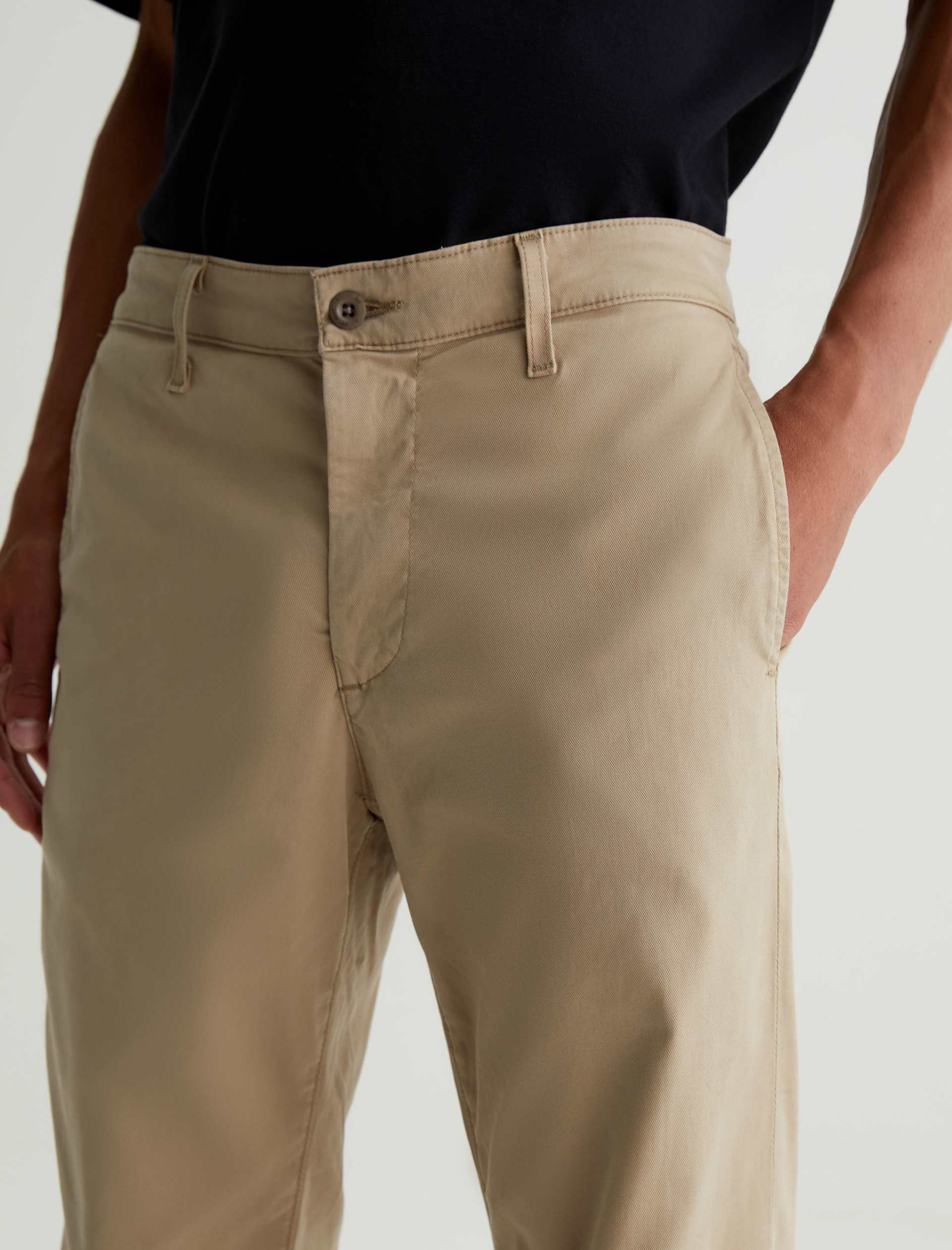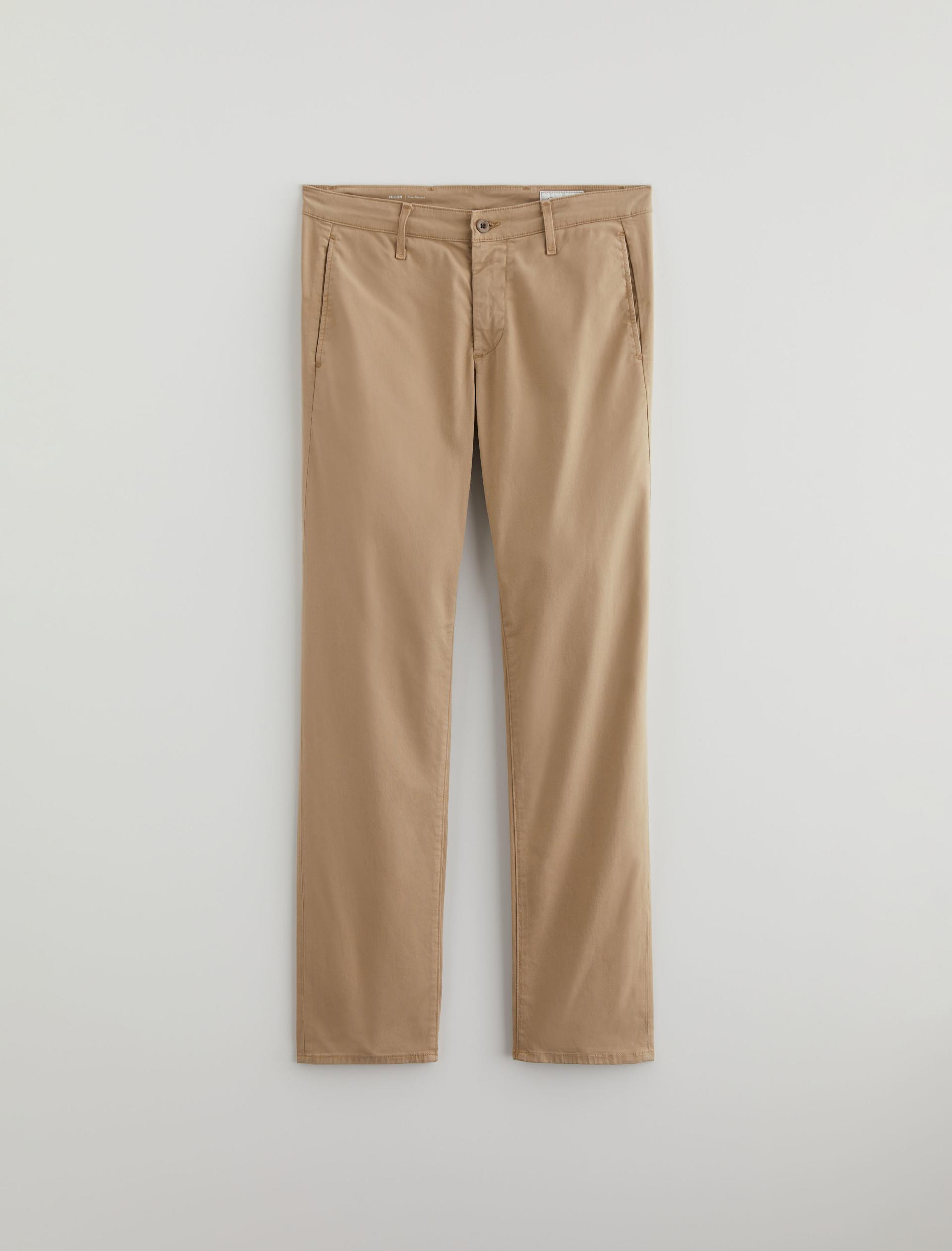 Our Kullen slim-fit trousers for men are cut from 7.9 oz. Sorrento Stretch Twill, a refined Italian fabric in a khaki shade. These men’s pants are tailored with on-seam front pockets for a simple, classic look. Button-fastened welt pockets at the back complete the look.