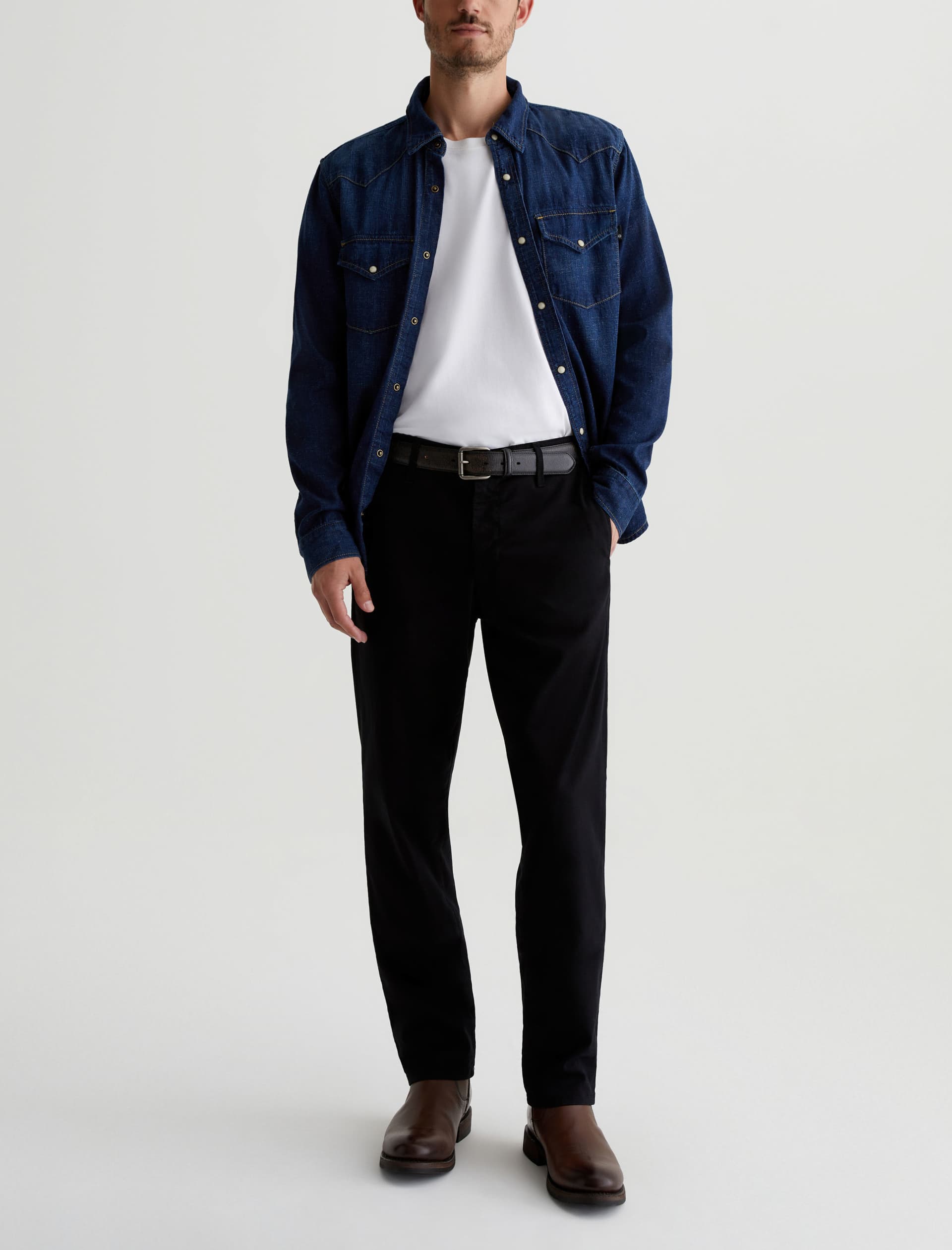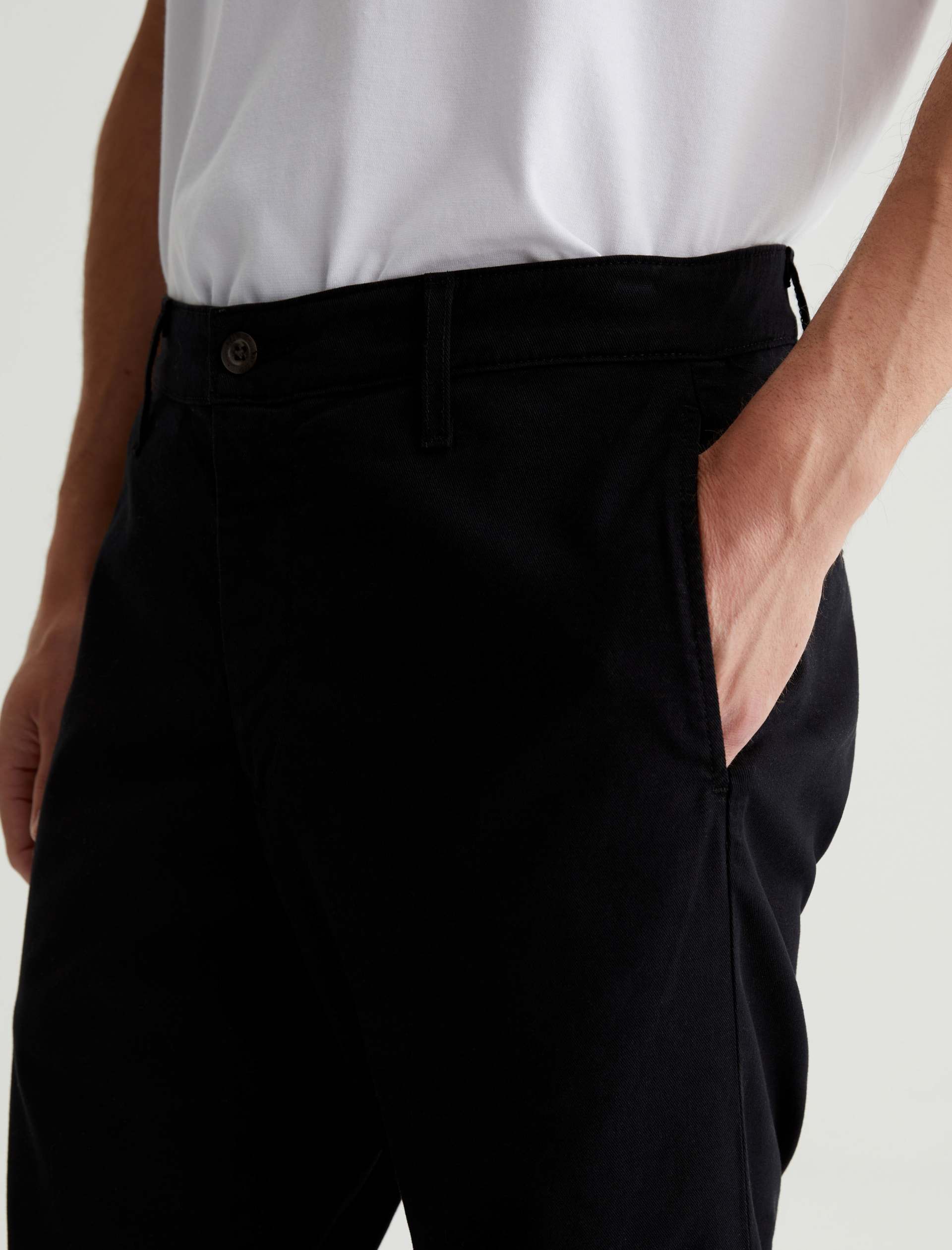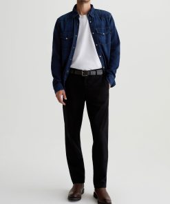 Kullen is a slim trouser crafted from 7.9 oz. Sorrento Stretch Twill, a refined fabric in classic black. These slim-cut men’s pants feature on-seam pockets for a streamlined aesthetic. Welt pockets at the back complete the look.