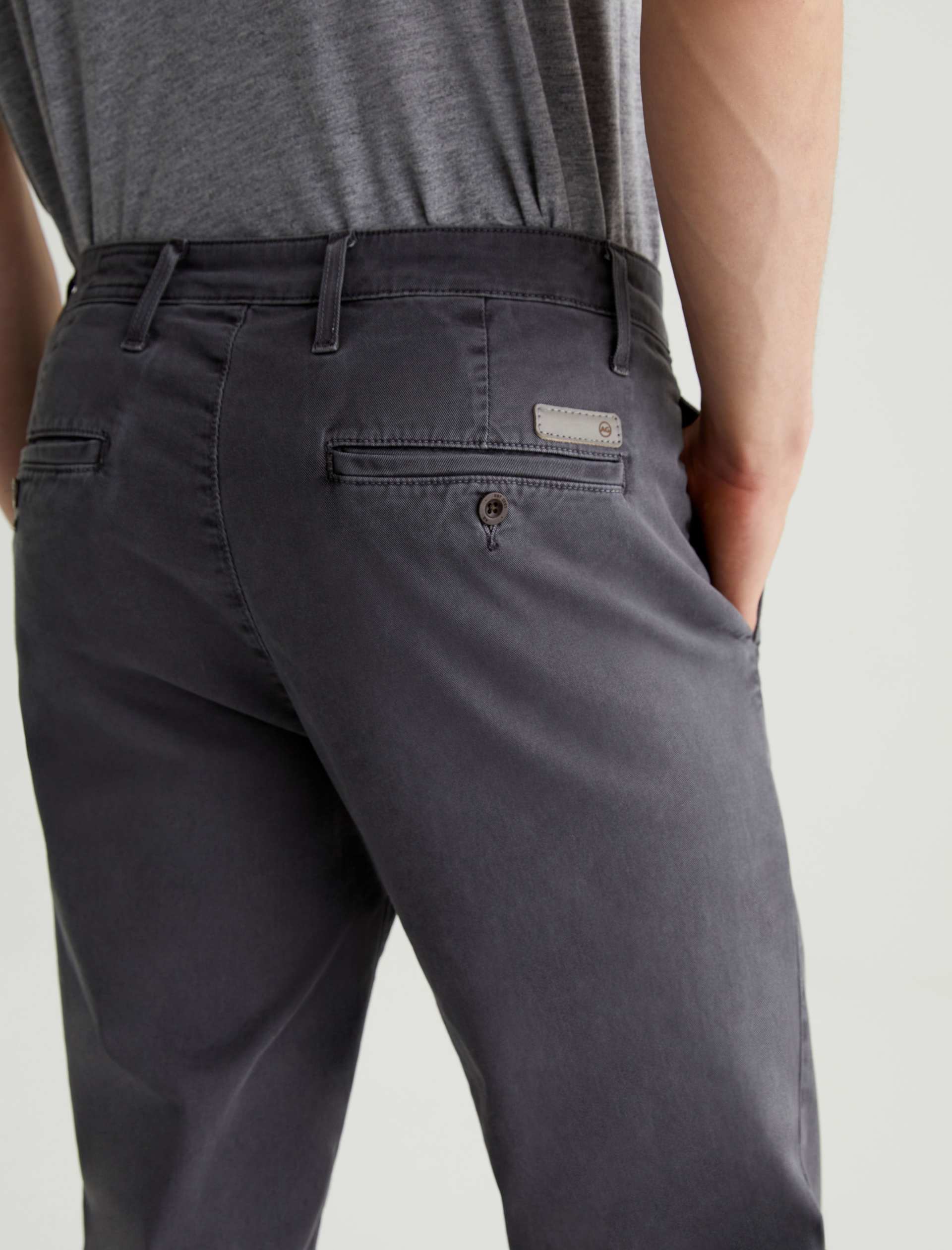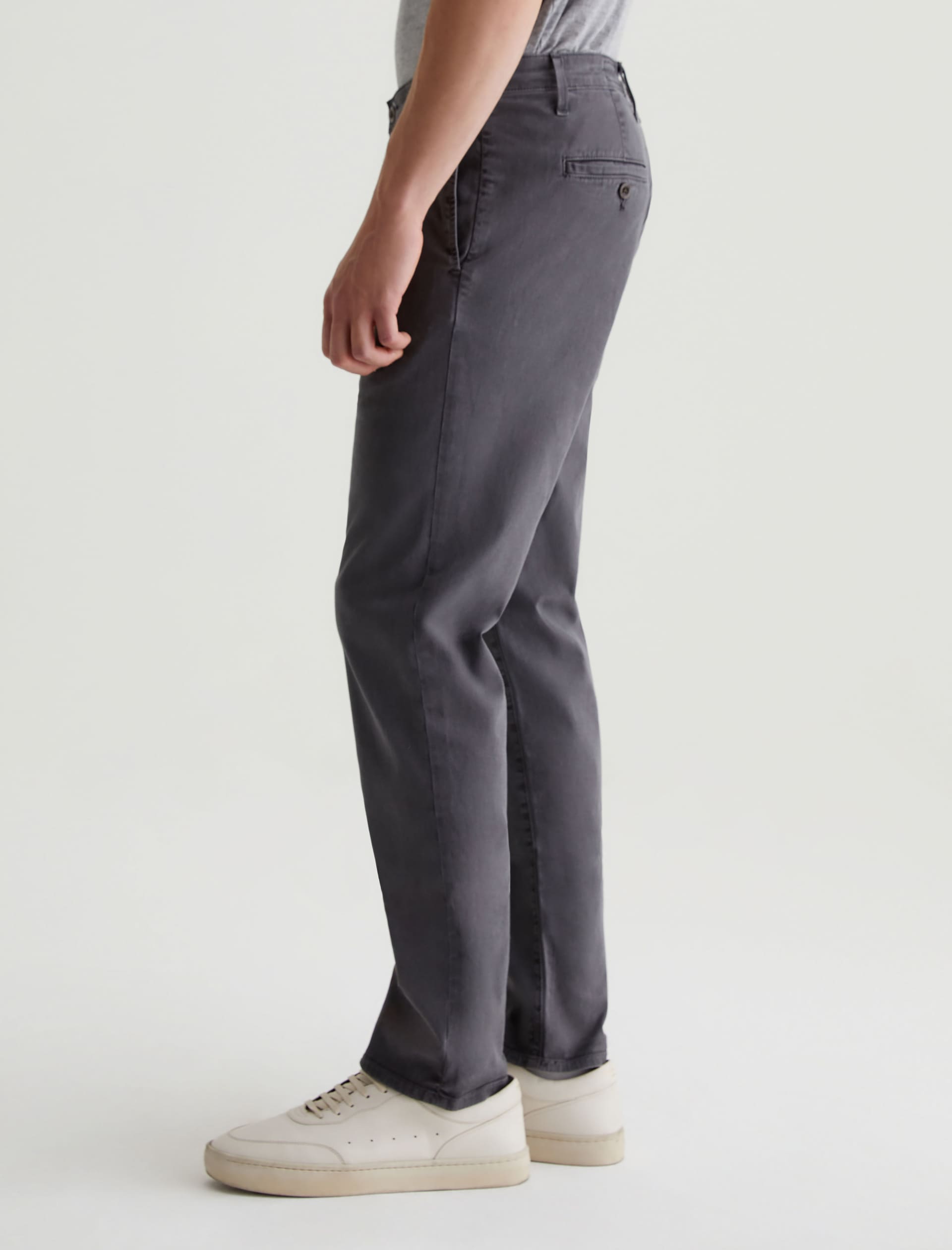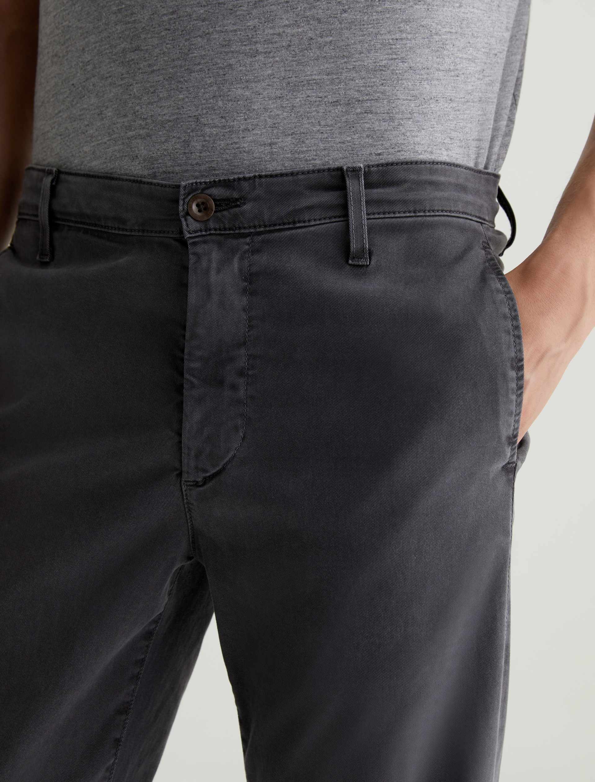 Kullen is a slim trouser crafted from 7.9 oz. Sorrento Stretch Twill, a refined Italian fabric in a sulfur-dyed grey shade. These slim-cut men’s pants feature on-seam pockets for a smart, tidy aesthetic. Welt pockets at the back complete the look.