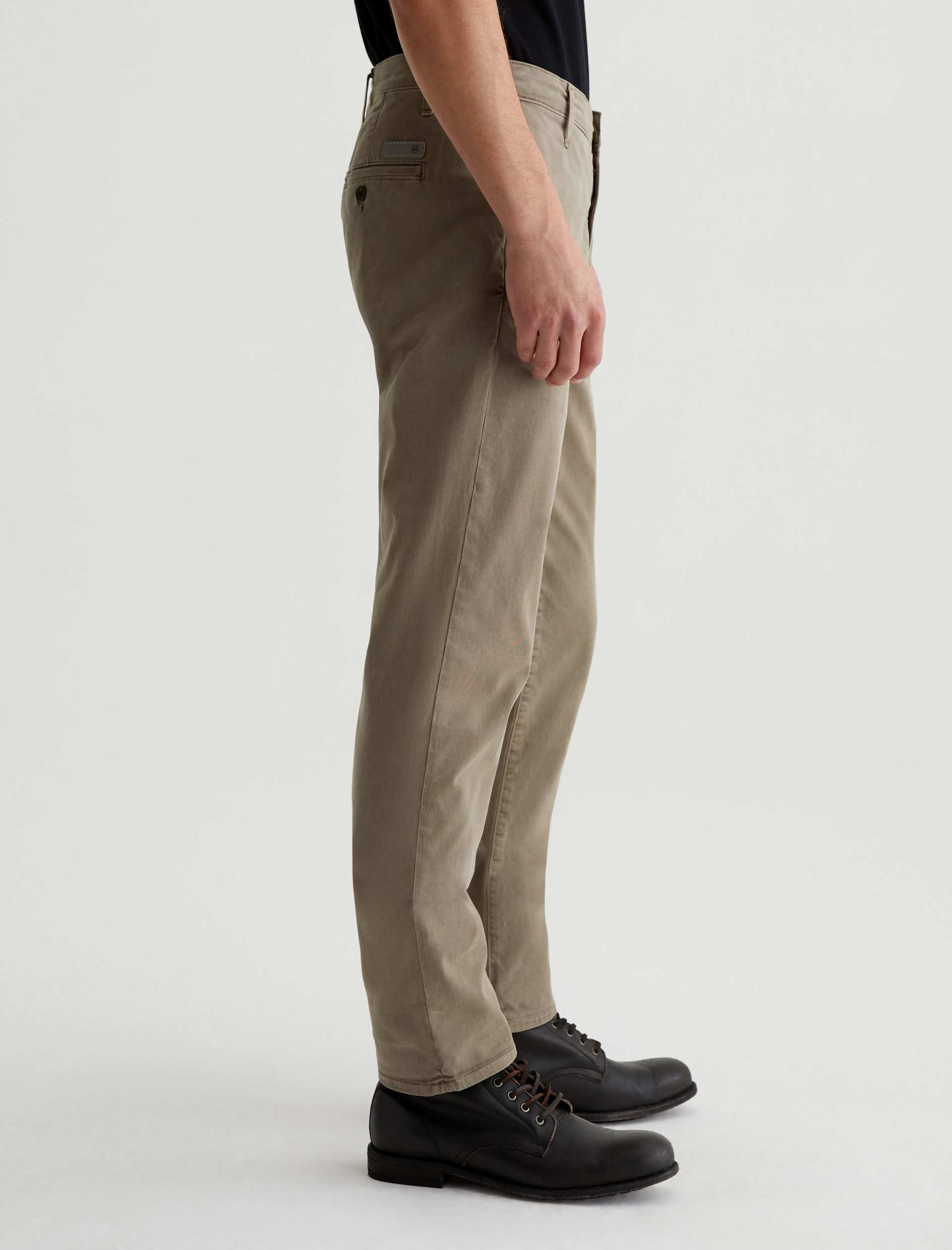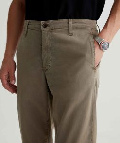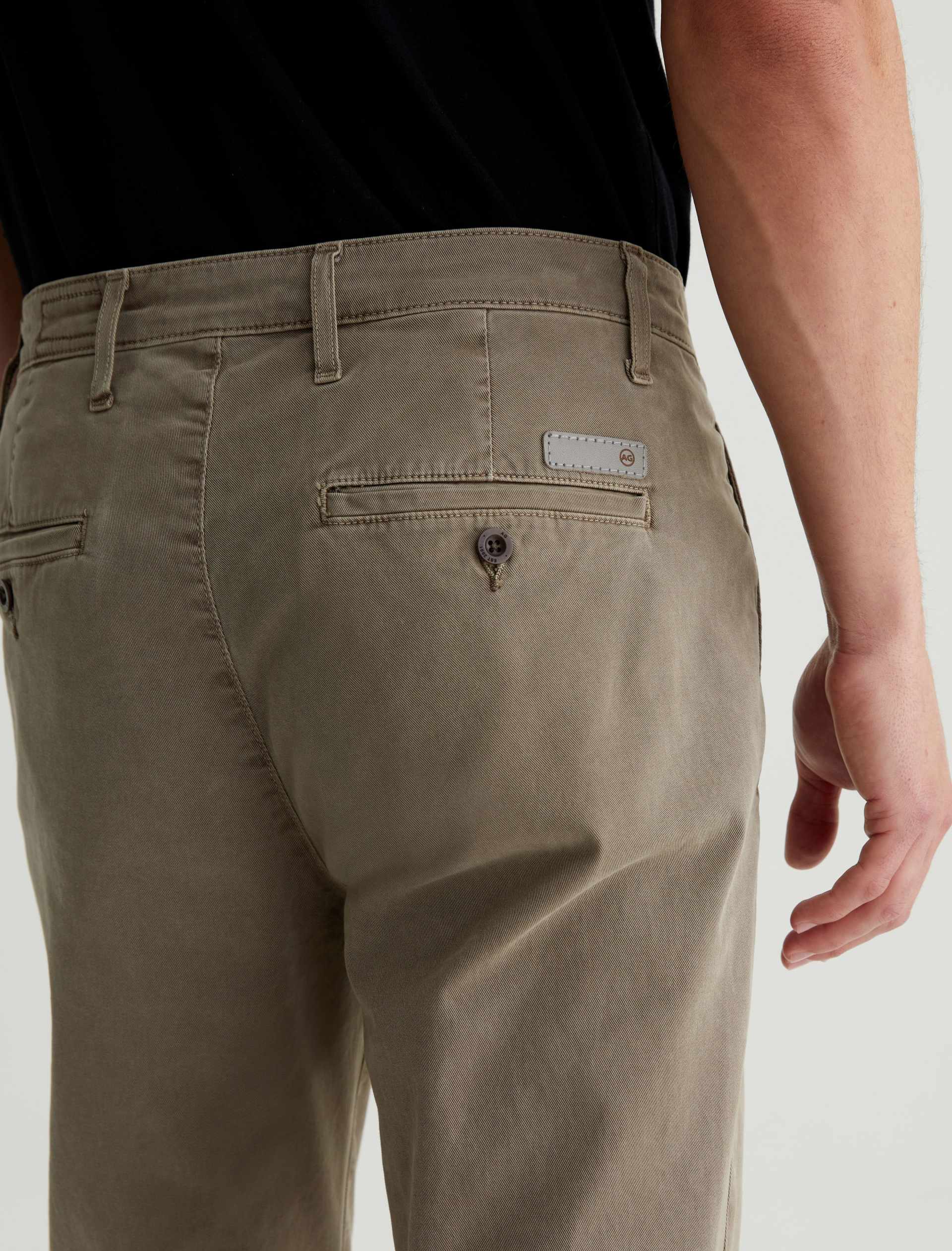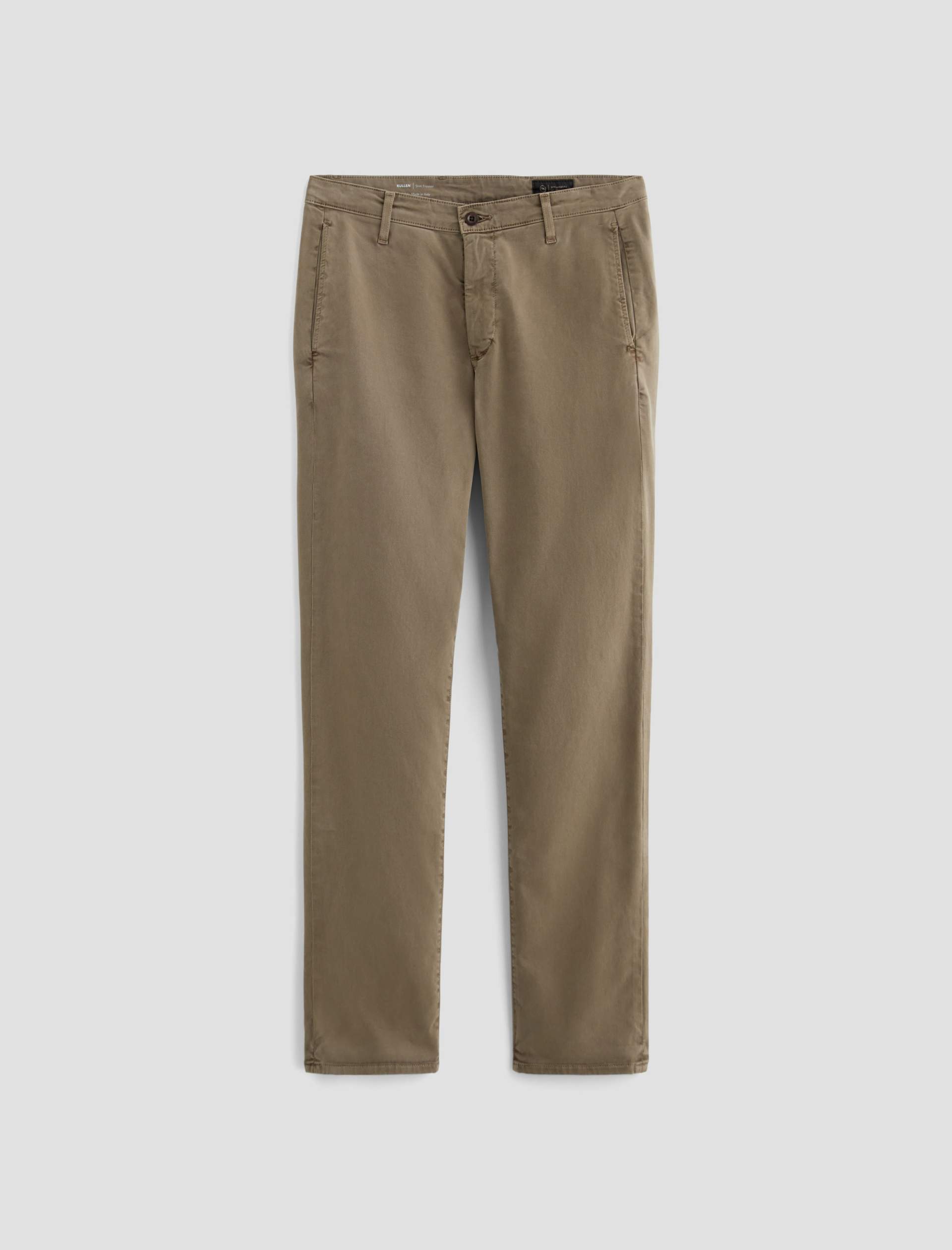 Kullen is a slim trouser crafted in 7.9 oz. Sorrento Stretch Twill, a refined Italian fabric. Sulfur-dyed for a light green shade, these slim-cut men’s pants feature on-seam pockets for a streamlined aesthetic. Welt pockets with button closures detail the back.
