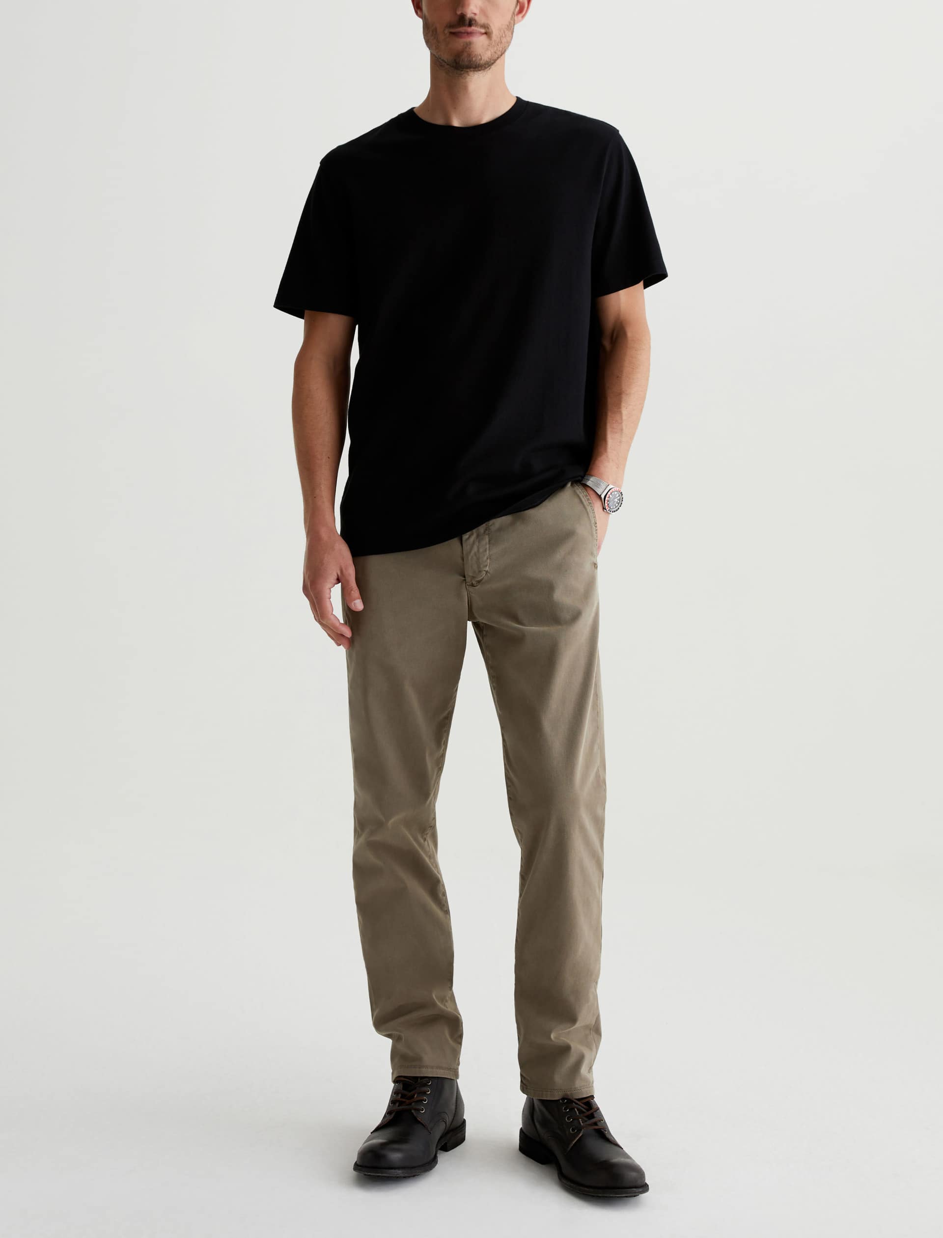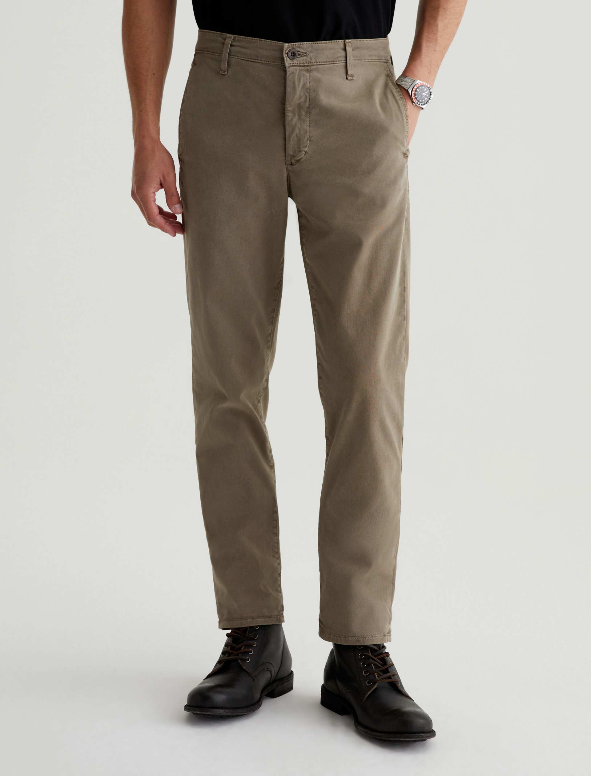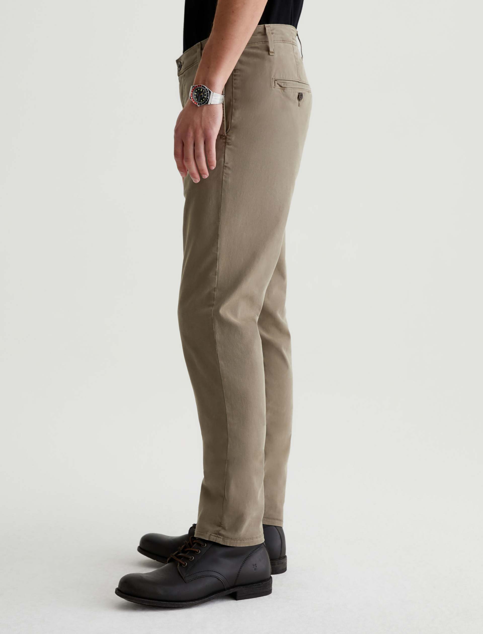Kullen is a slim trouser crafted in 7.9 oz. Sorrento Stretch Twill, a refined Italian fabric. Sulfur-dyed for a light green shade, these slim-cut men’s pants feature on-seam pockets for a streamlined aesthetic. Welt pockets with button closures detail the back.