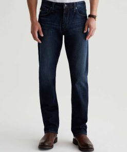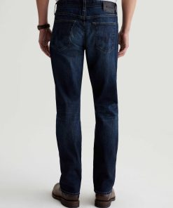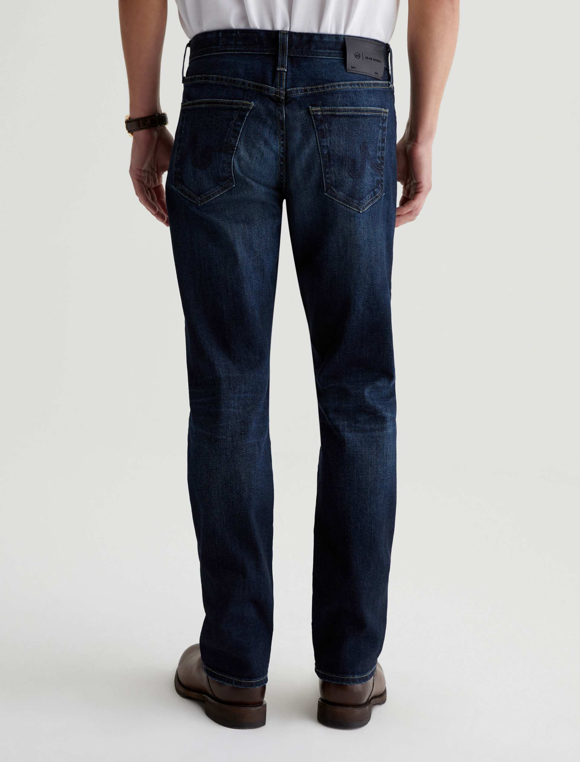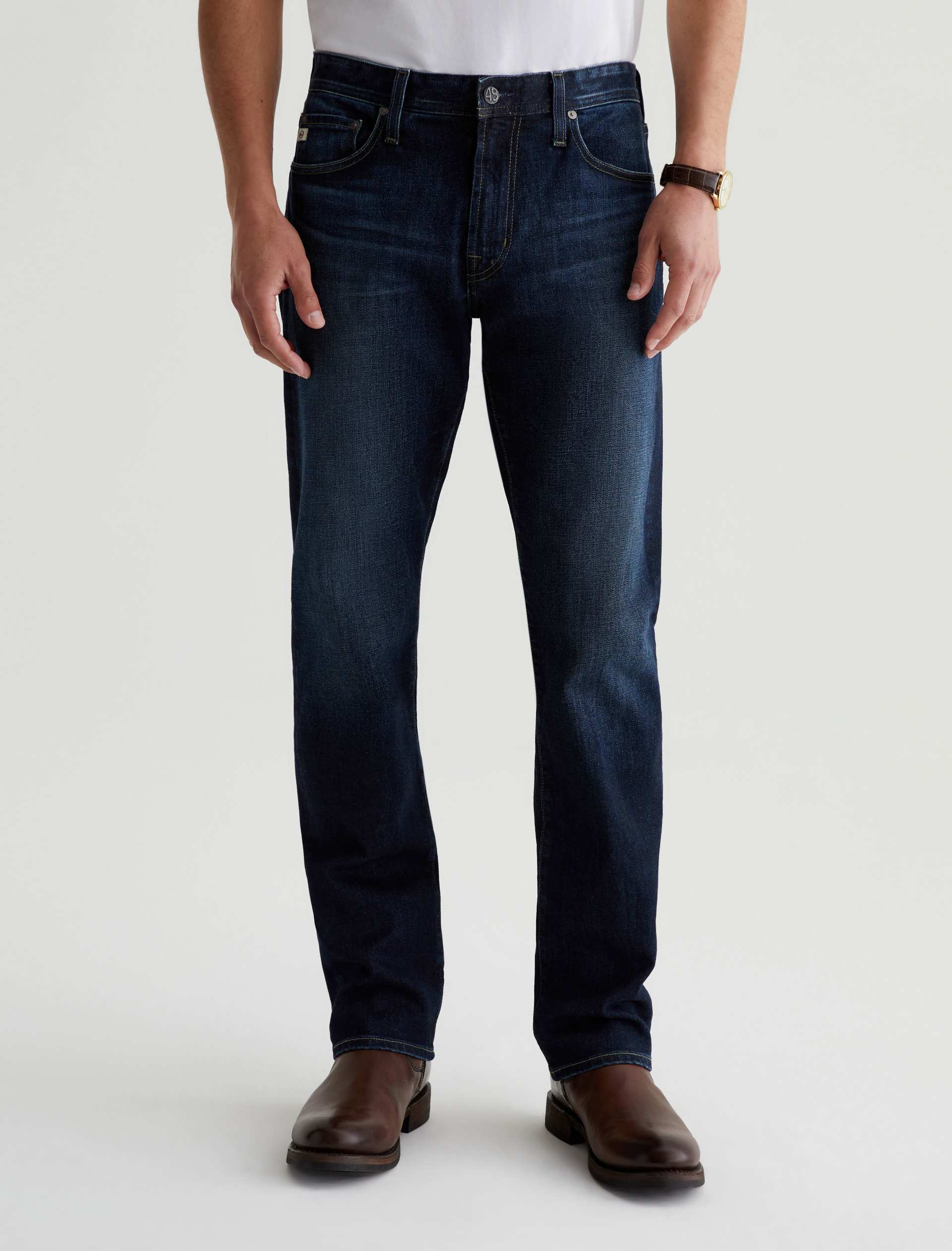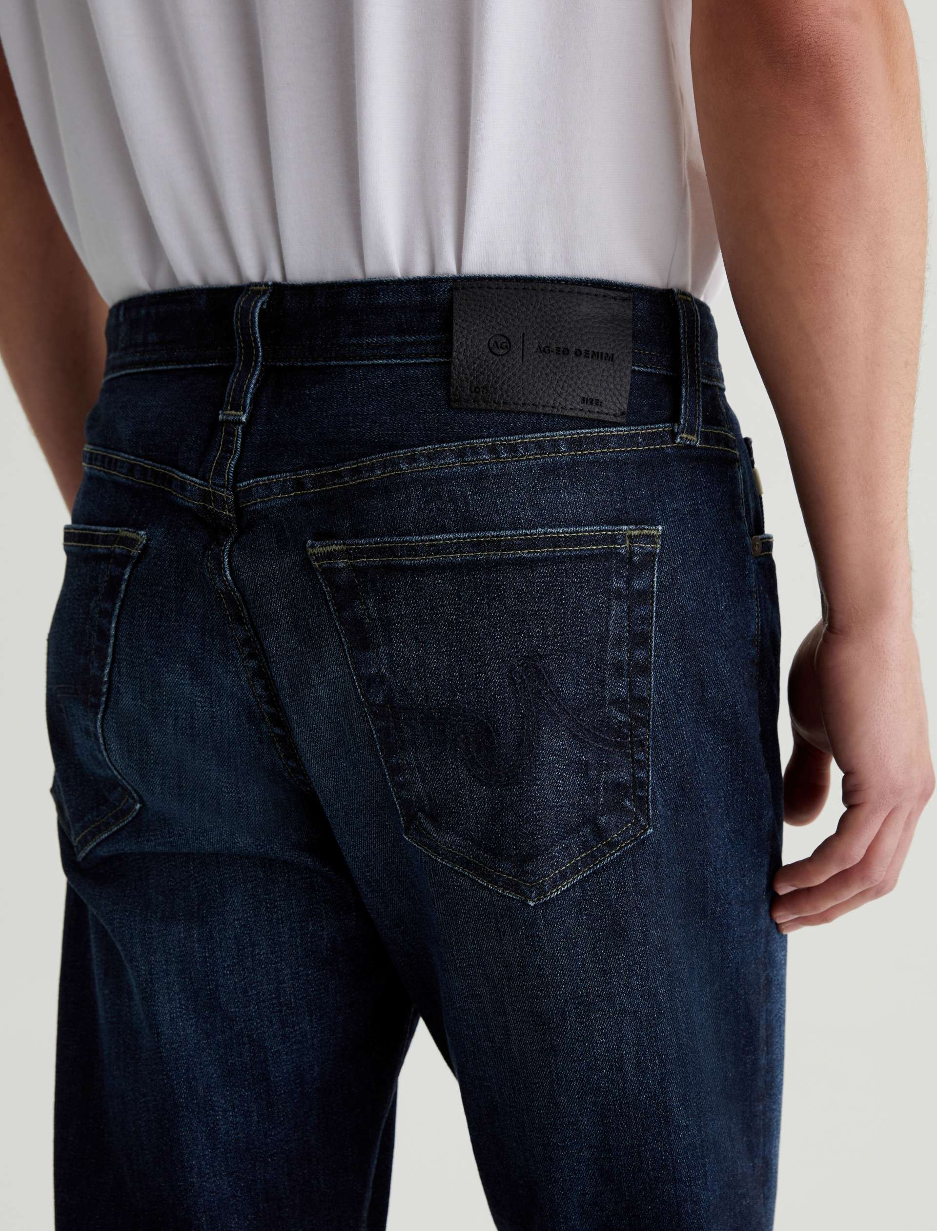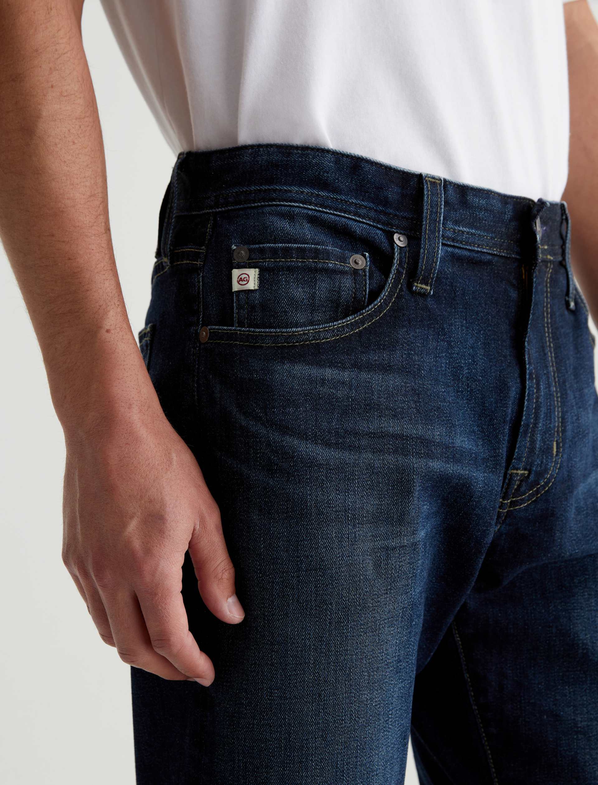 Our Protégé classic straight fit returns in 11.2 oz. New Union Dark Denim from Italy. Washed to a versatile indigo shade, it’s got an AG-ed™ 5-year fade with whiskering and contrast stitching. These men’s straight-leg jeans have an easy fit through the thighs and a clean finish at the leg openings.
