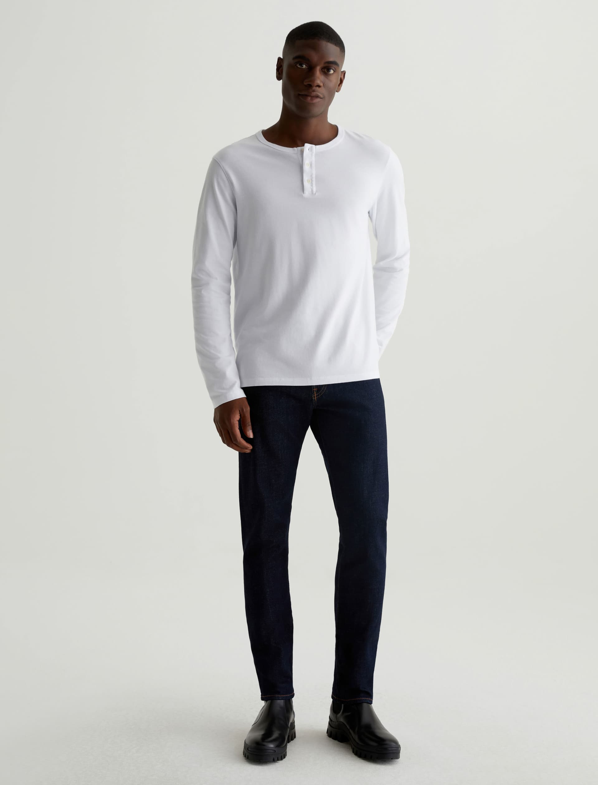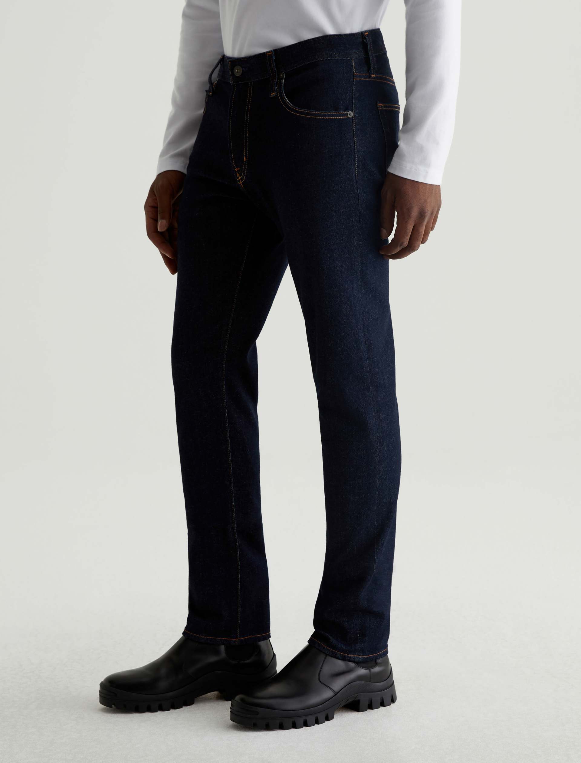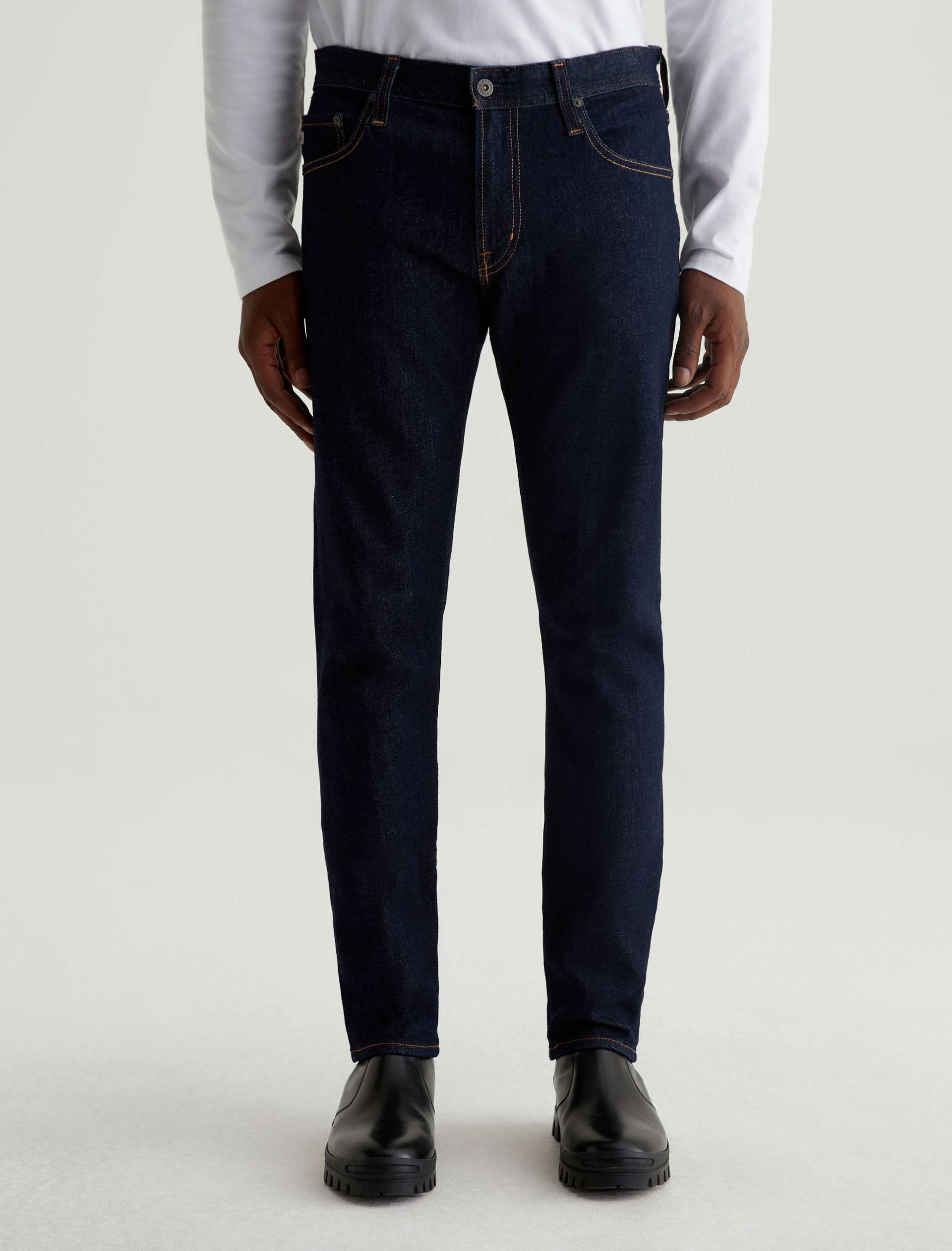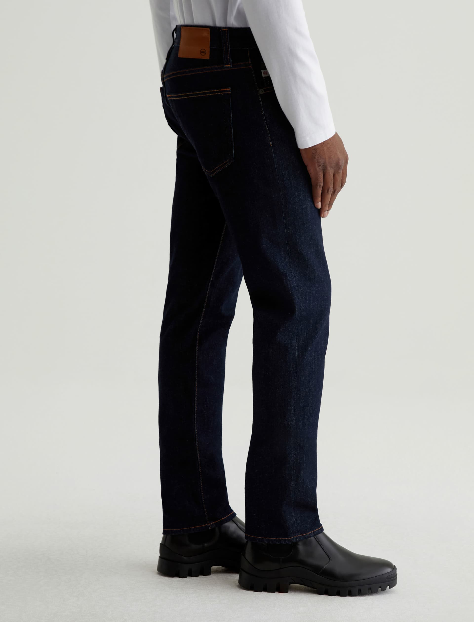 The Tellis modern slim jean for men features a fitted upper block and tapered leg opening—complete with a dark wash. This men’s pant is designed in 11.5 oz. 360° Denim.
