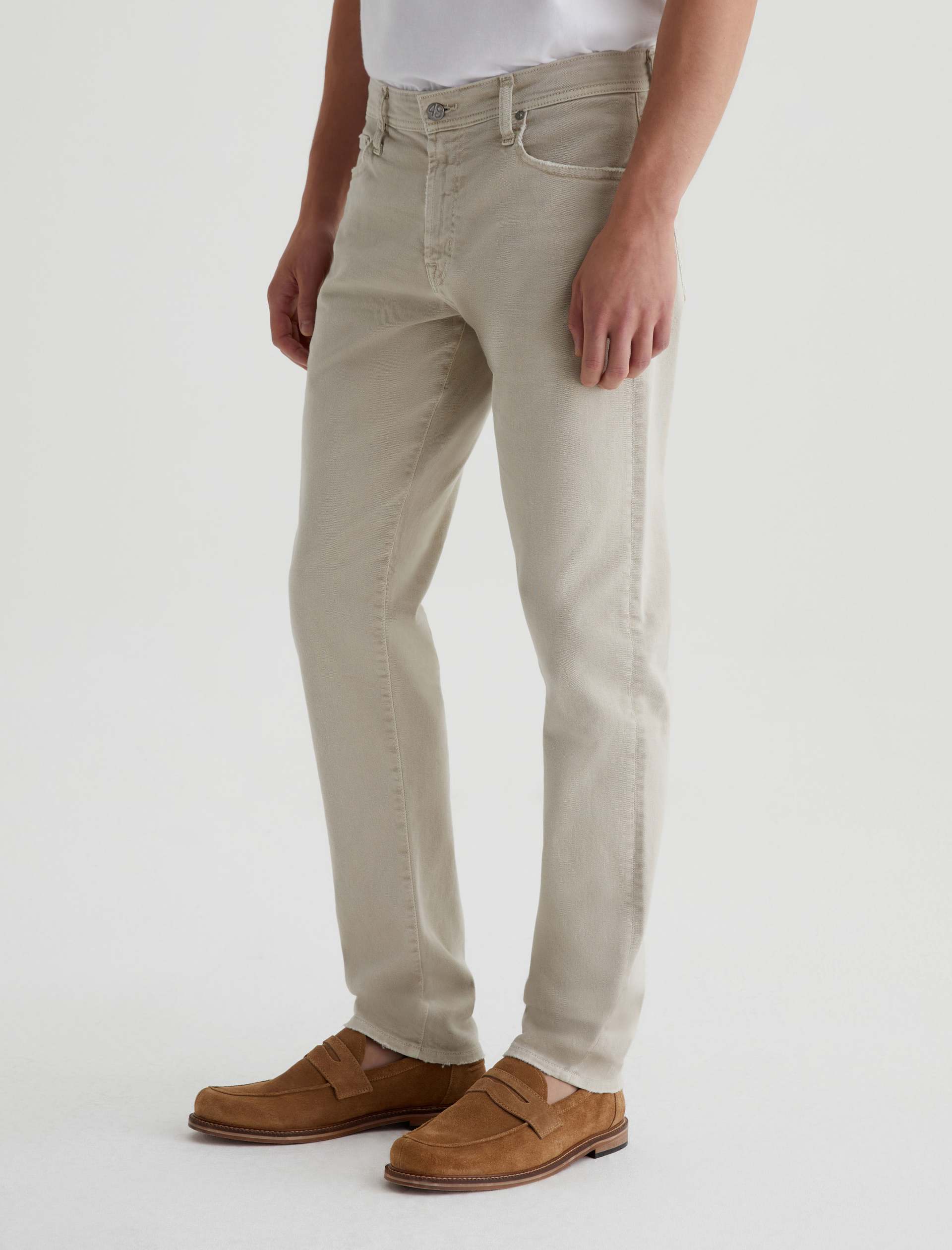 Tellis is a modern slim fit in a sulfur-dyed khaki shade with an AG-ed™ finish to emulate 7 years of authentic wear. These five-pocket men’s jeans have a fitted upper block with a mid-rise waist and slim legs that taper down to the ankle. The pair is crafted from 8.7 oz. Hyper Soft Bull Denim, an exclusive AG Cloud Sof
