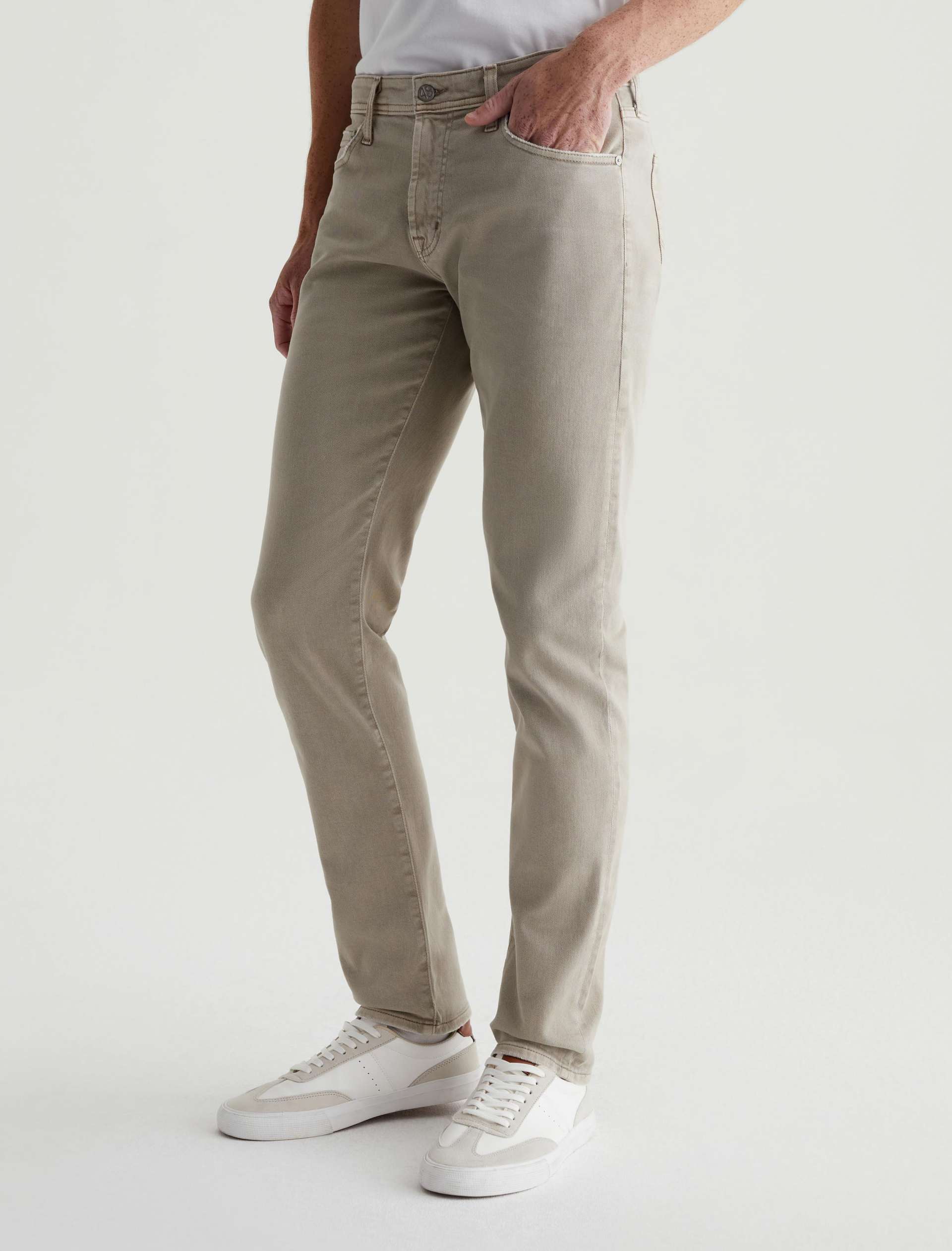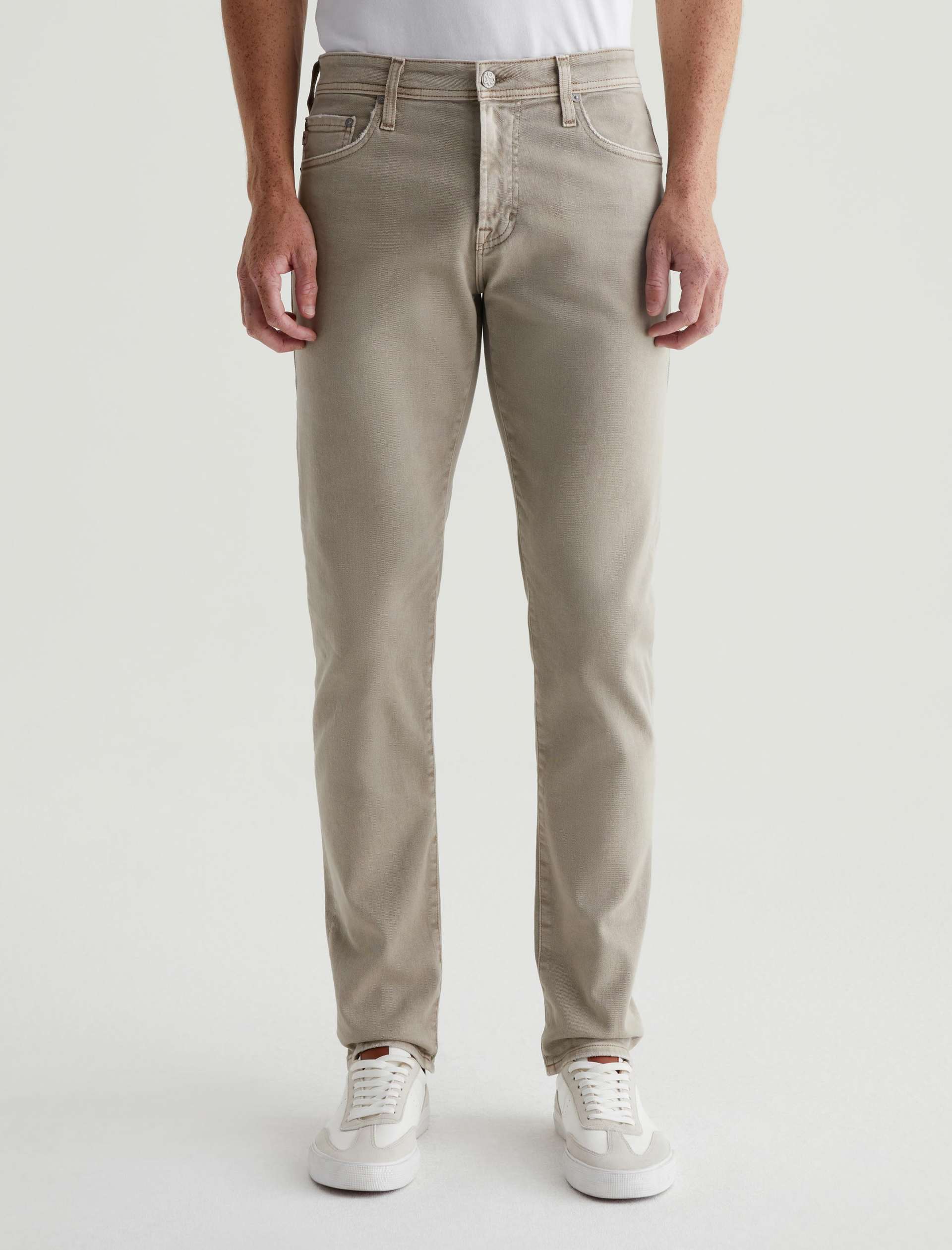Tellis is a modern slim fit in an AG-ed™ khaki color. Fading and subtle wear along the edges emulate 7 years of authentic wear. Featuring a fitted upper block with a mid-rise waist, these five-pocket men’s jeans have slim legs that taper down to the ankle in 8.7 oz. Hyper Soft Bull Denim, a velvety-soft left-hand twill