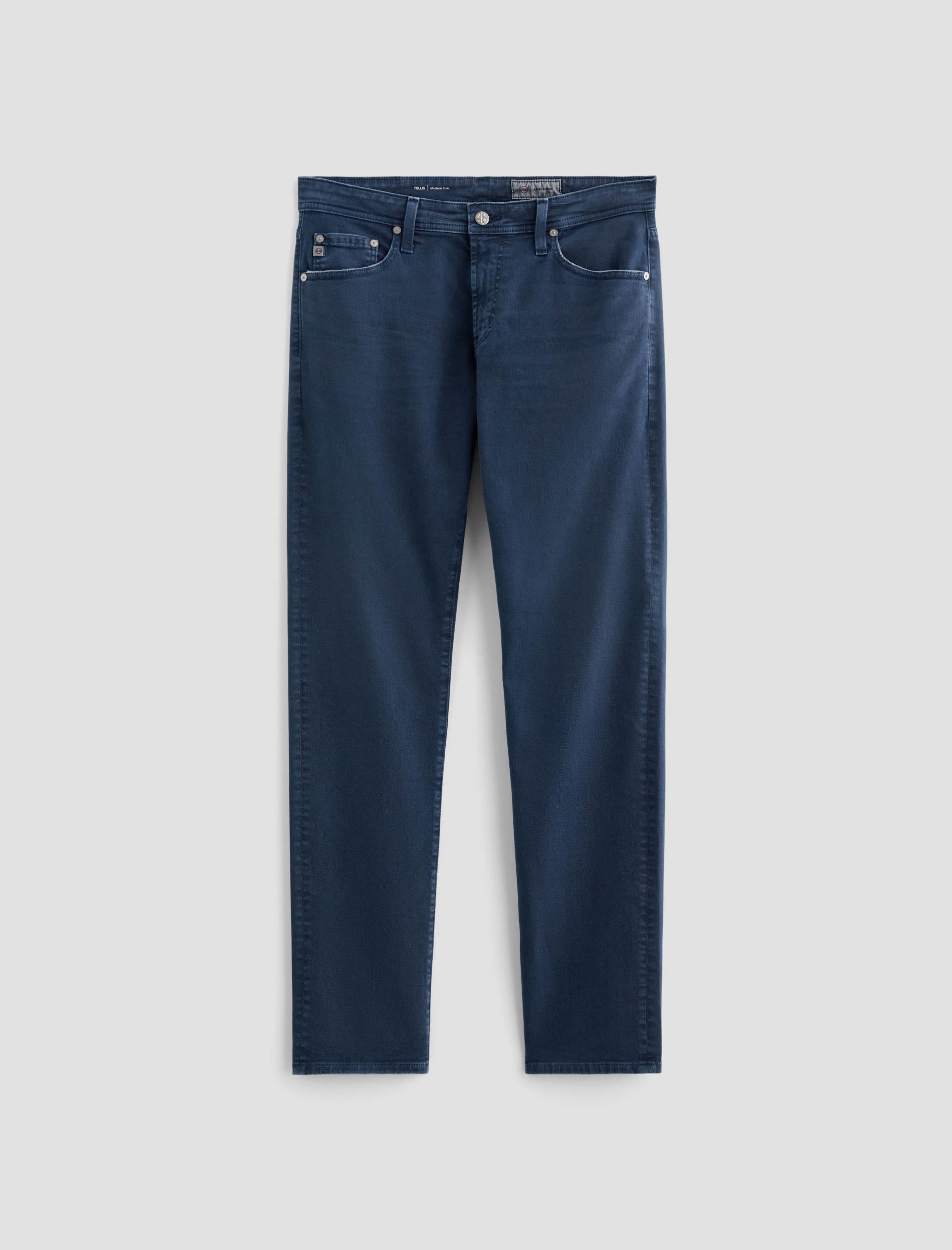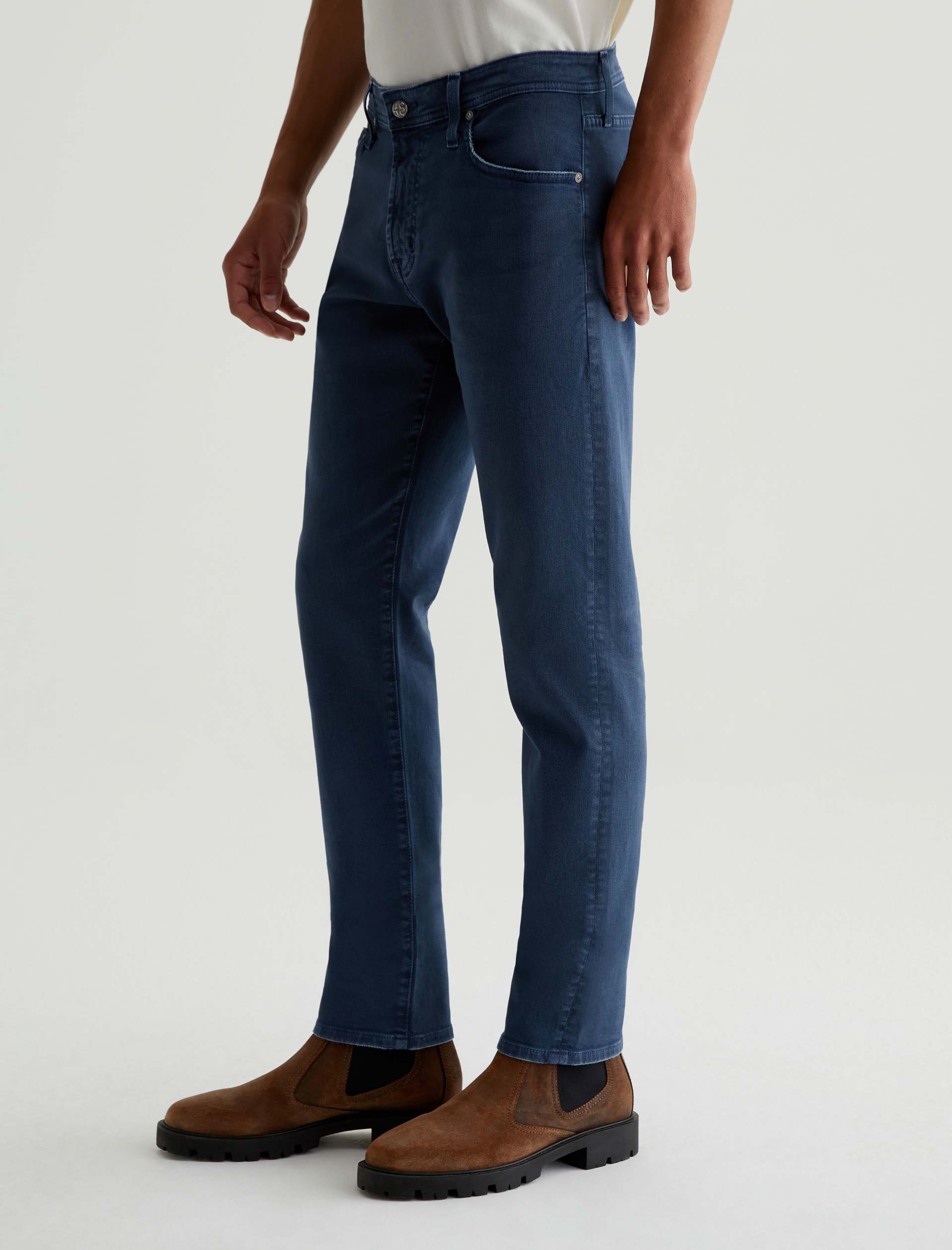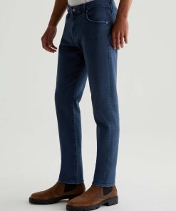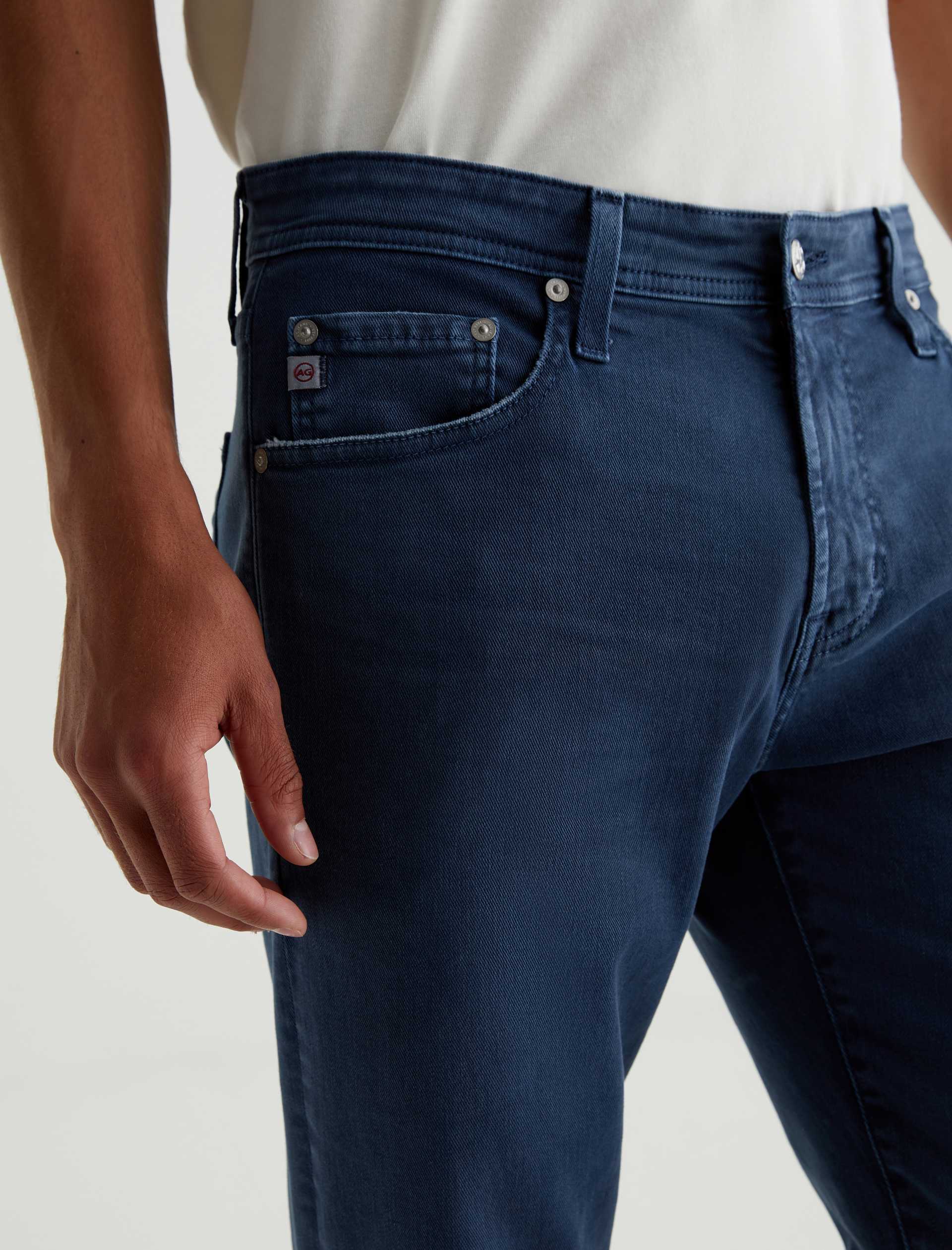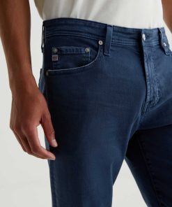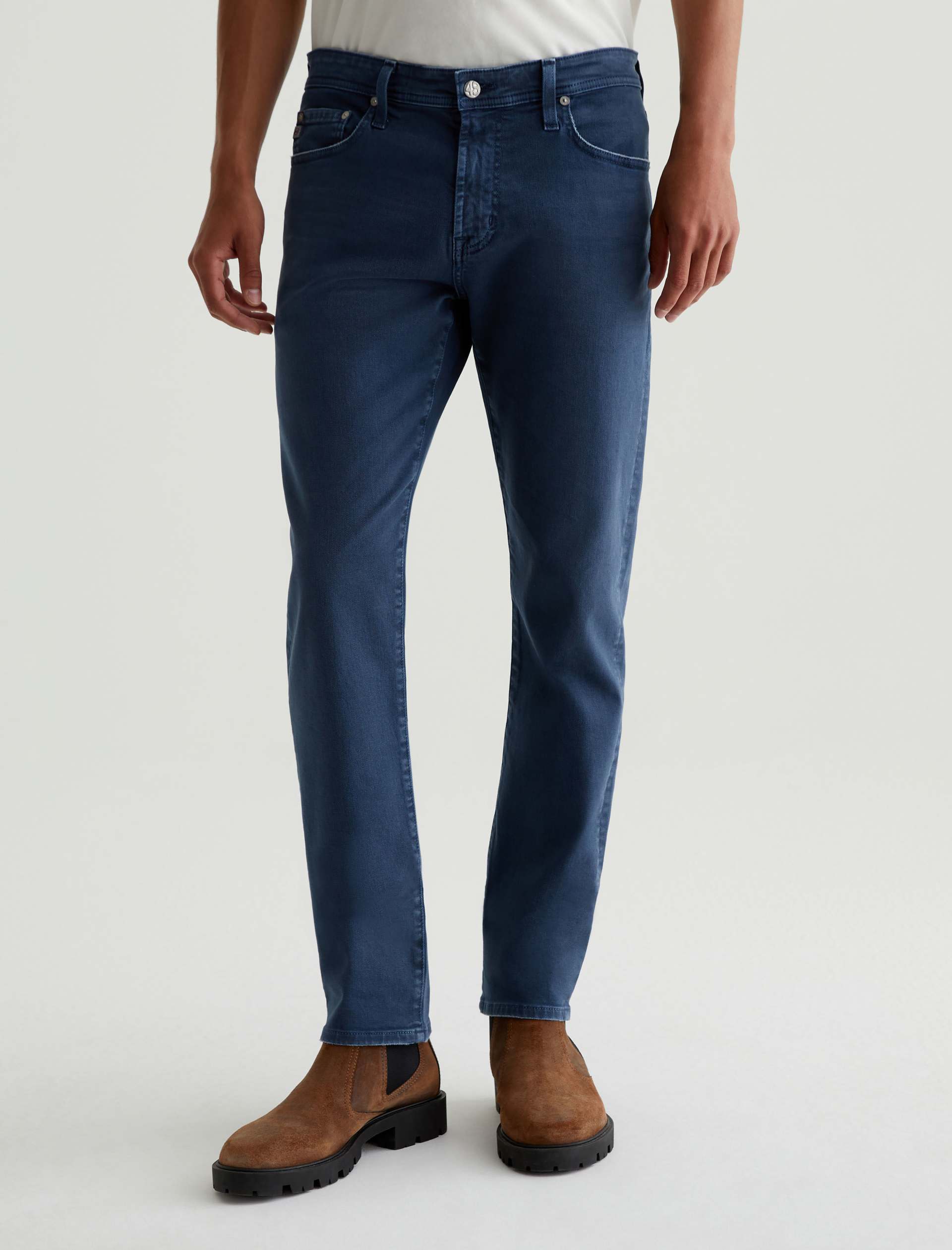 Our Tellis modern slim jeans for men feature a fitted upper block and slim legs with a tapered finish. Updated in a deep-blue shade, this AG-ed™ pair has fading and subtly distressed pocket edges to emulate 7 years of wear. The pair comes in 8.7 oz. Hyper Soft Bull Denim, a velvety AG Cloud Soft Denim™ fabric. It’s got