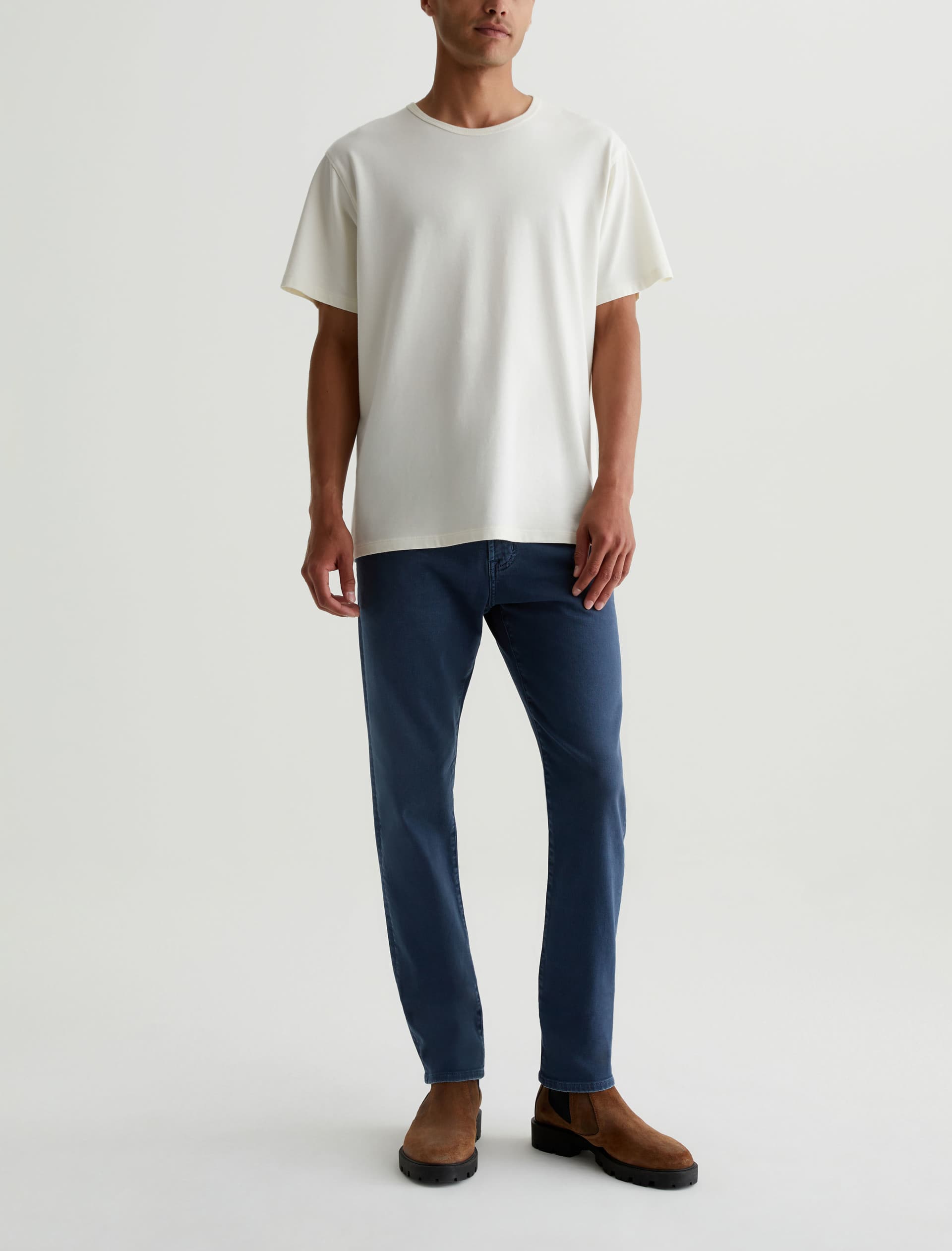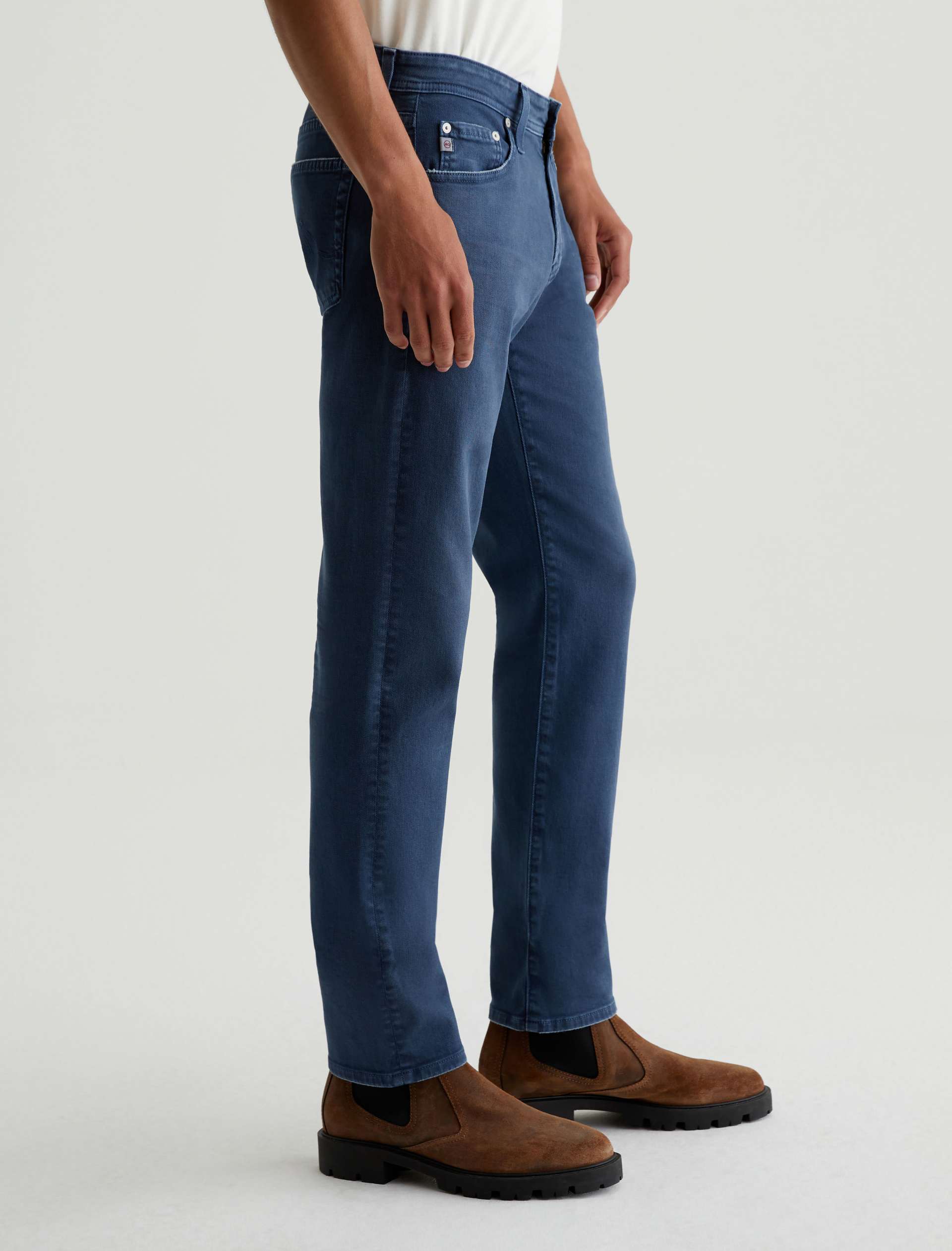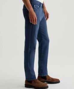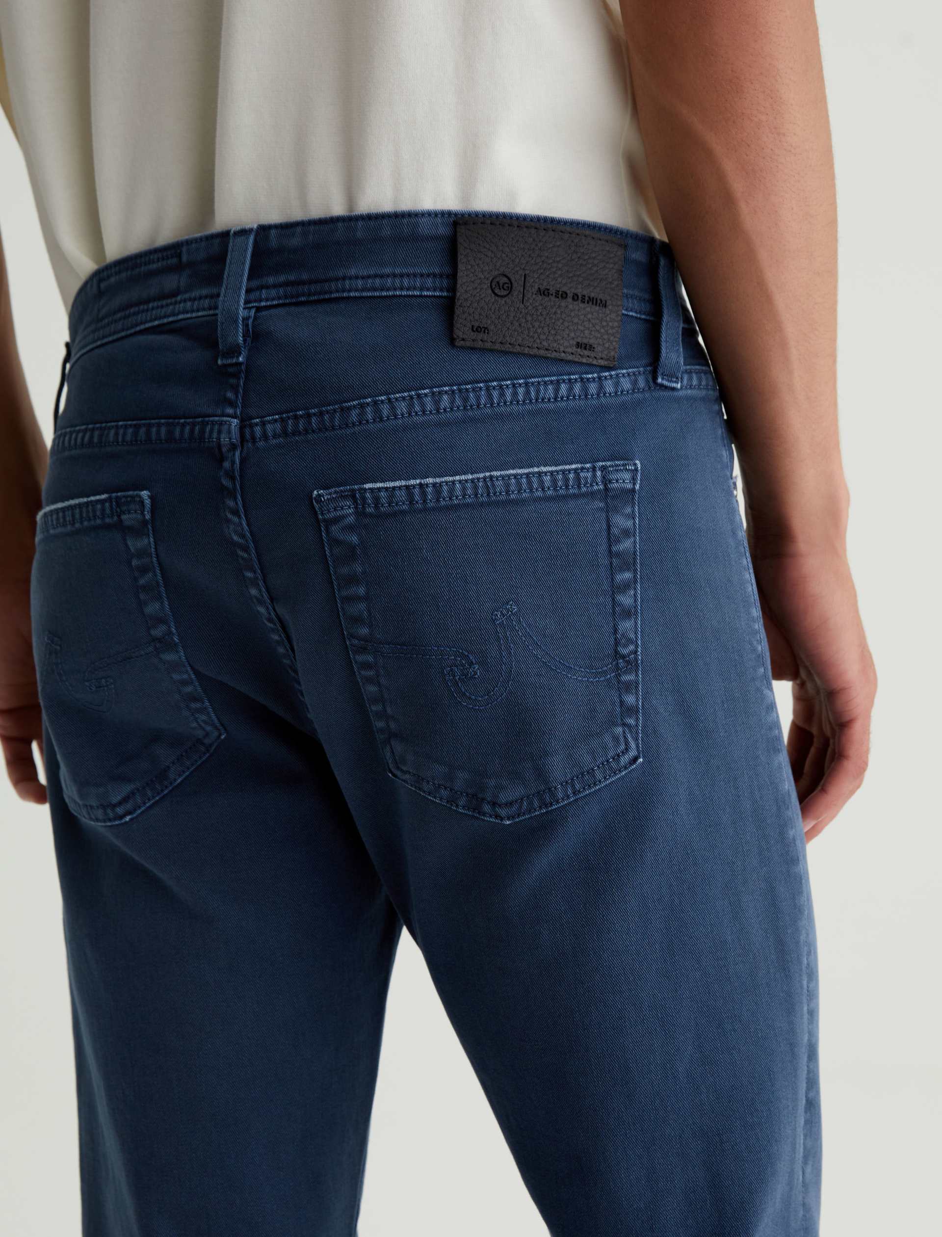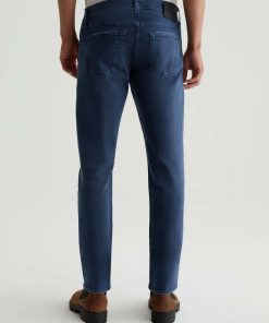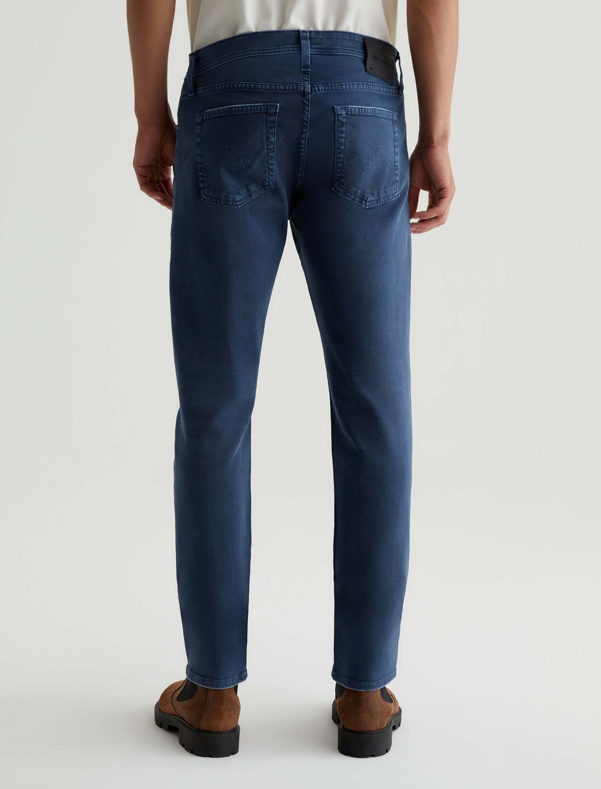 Our Tellis modern slim jeans for men feature a fitted upper block and slim legs with a tapered finish. Updated in a deep-blue shade, this AG-ed™ pair has fading and subtly distressed pocket edges to emulate 7 years of wear. The pair comes in 8.7 oz. Hyper Soft Bull Denim, a velvety AG Cloud Soft Denim™ fabric. It’s got