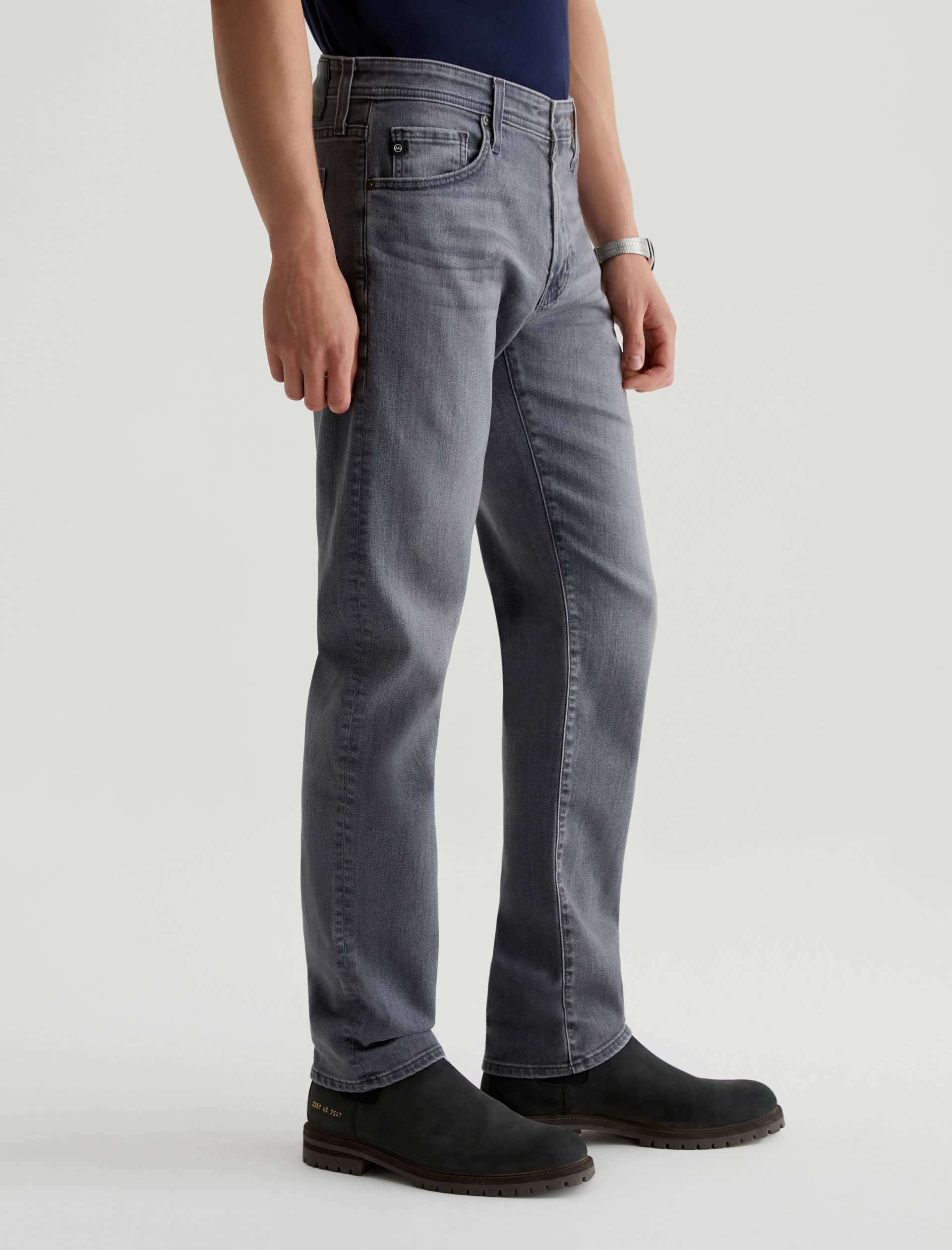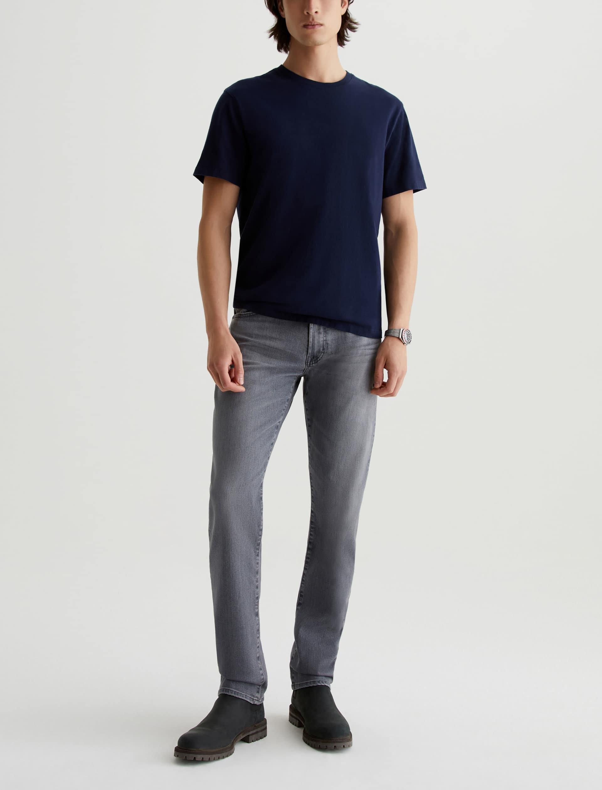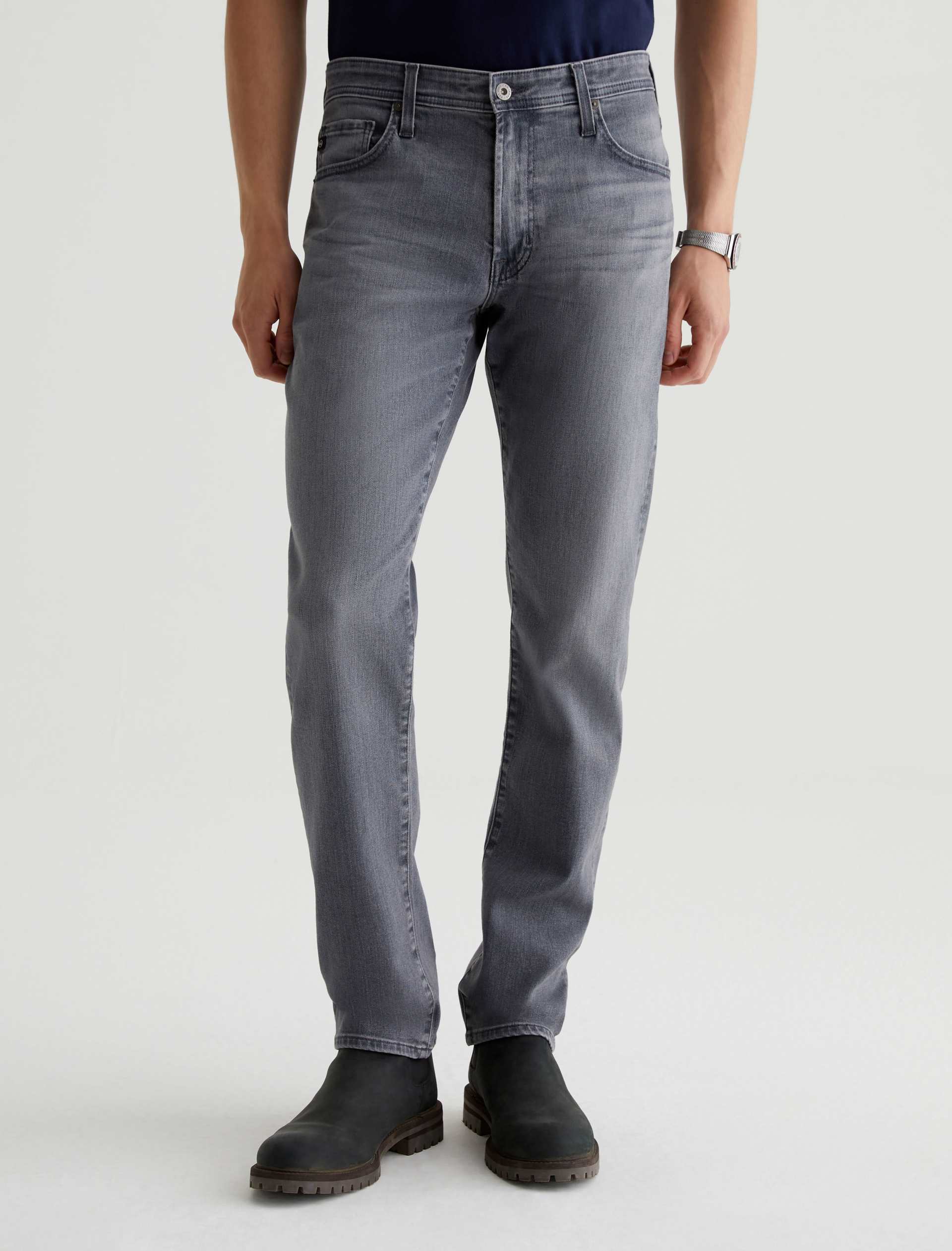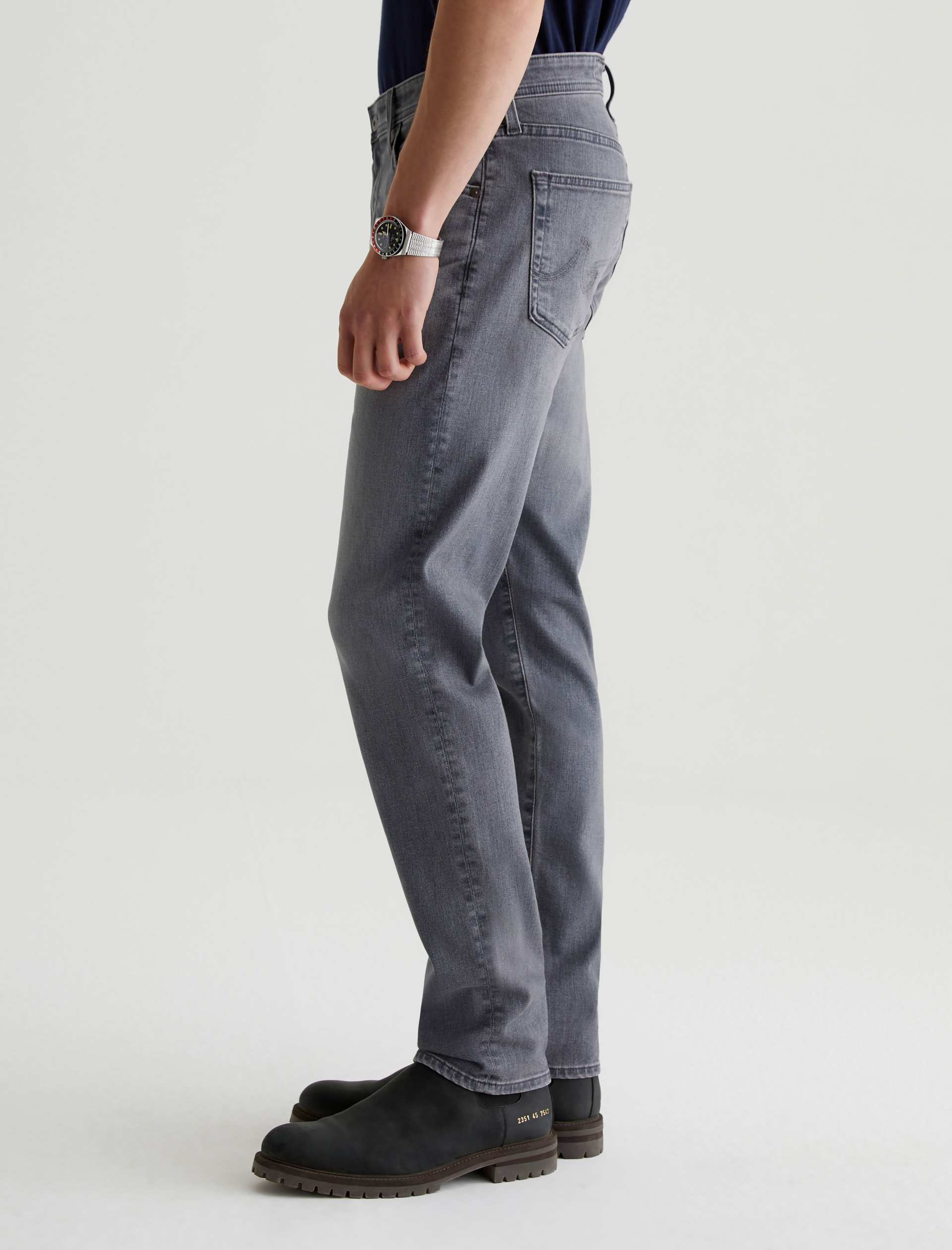 Tellis is a modern slim fit updated in a faded grey wash with hazy whiskering. Characterized by a fitted upper block and tapered leg openings, these five-pocket men’s jeans are designed in 10 oz. Ashen Stretch Denim for enhanced comfort. Our AG Vapor Wash™ process significantly reduces the use of water, chemicals, and