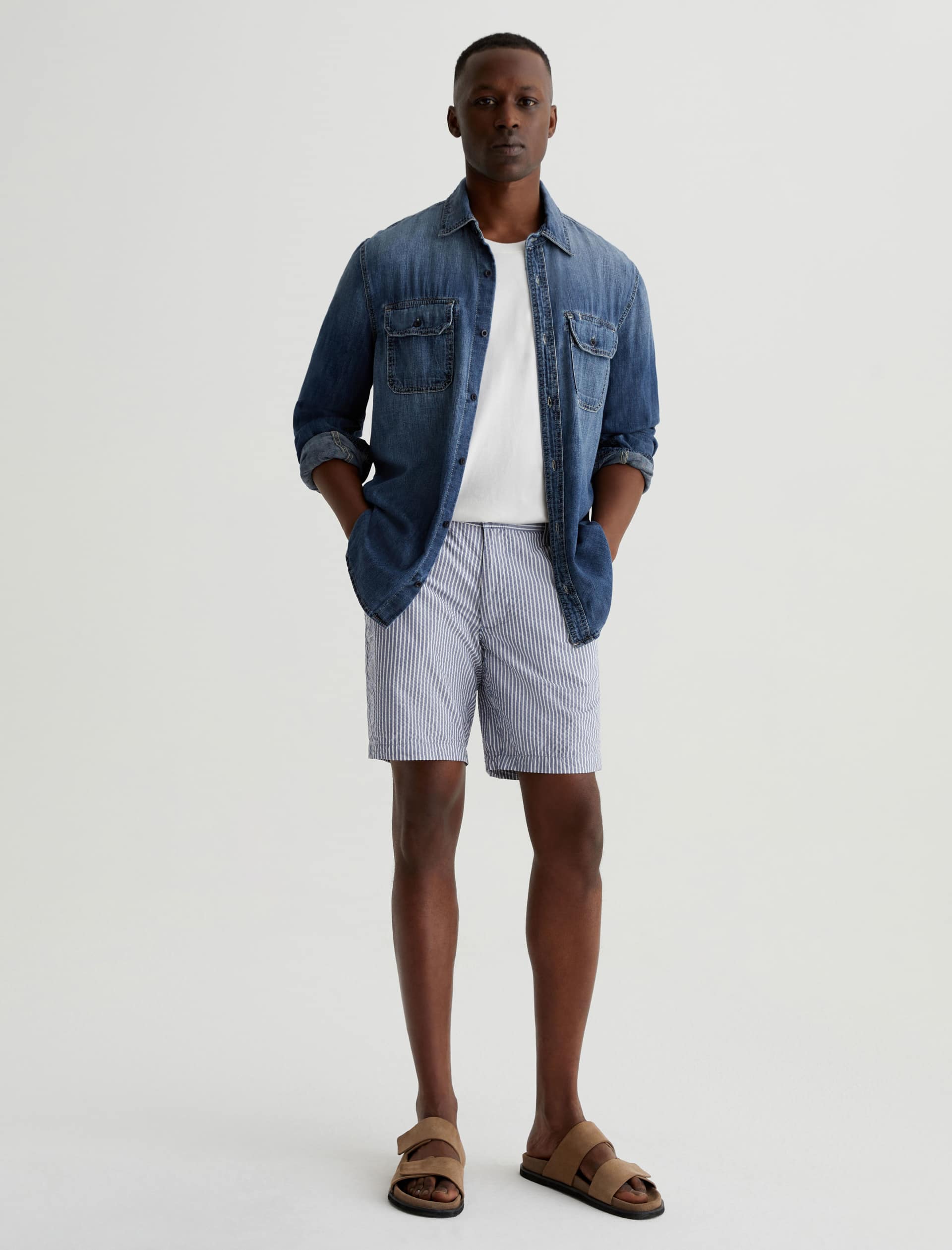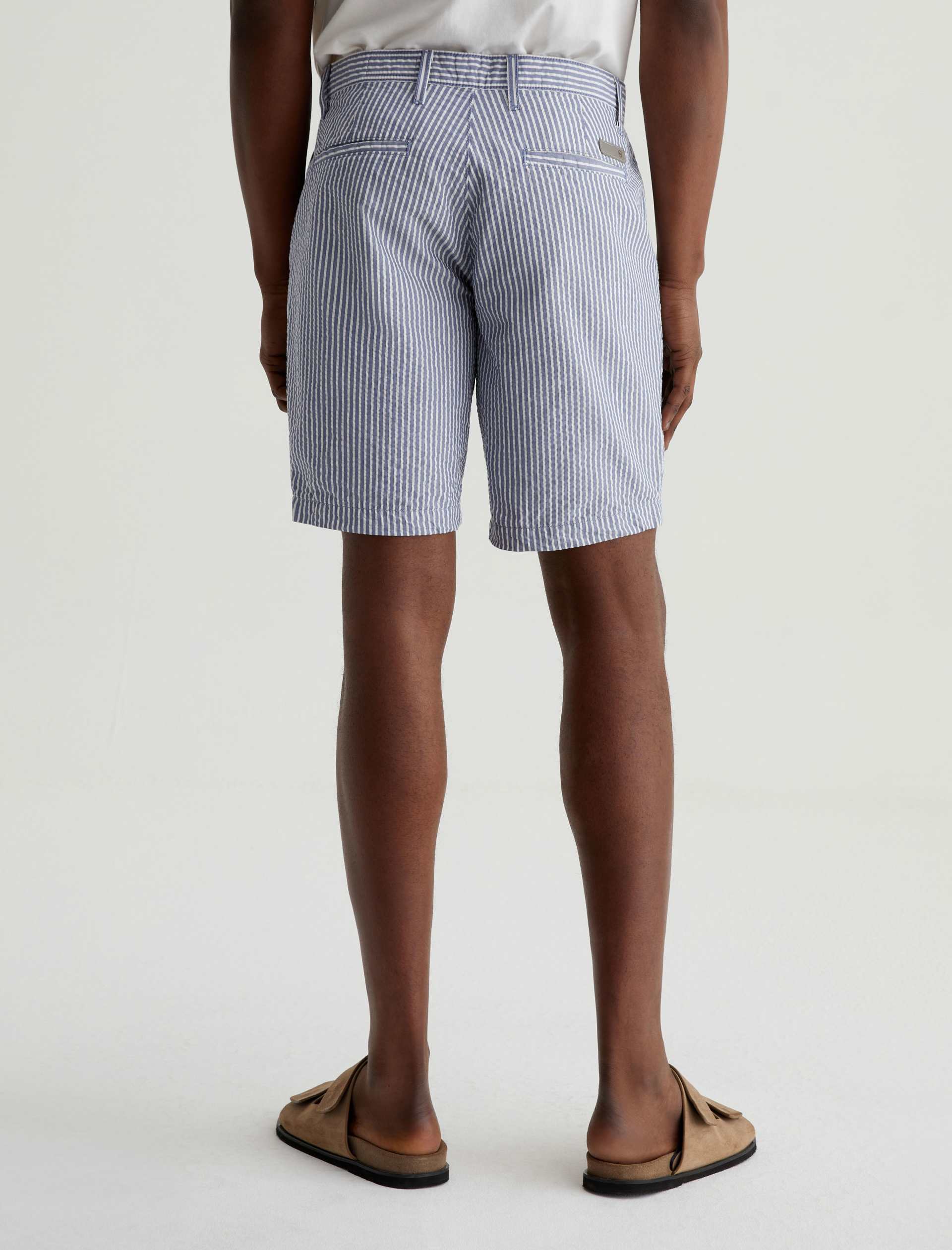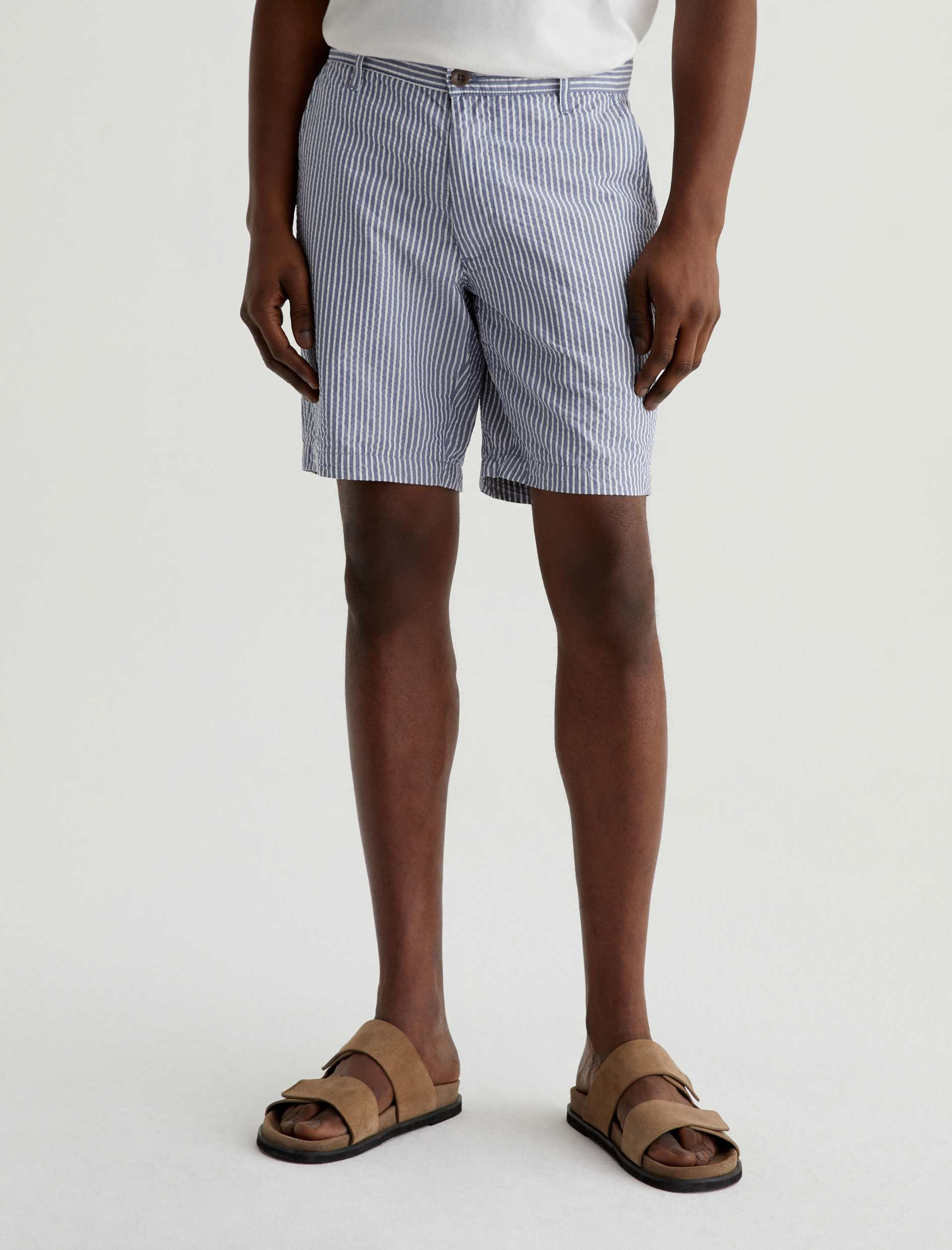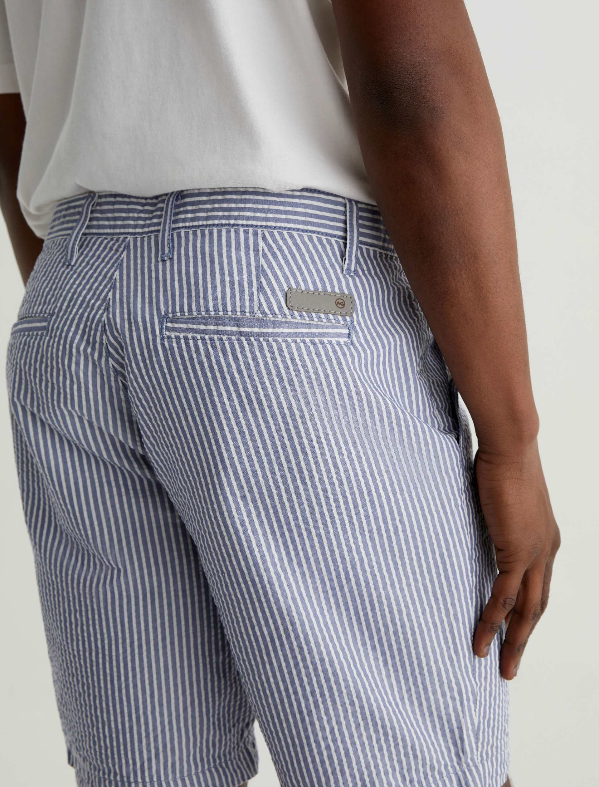 Made from striped cotton seersucker, the Wanderer Short is a timeless addition to your warm-weather wardrobe. These trouser shorts are tailored for a slim fit with tidy pockets and slightly tapered legs.