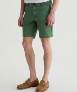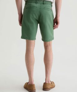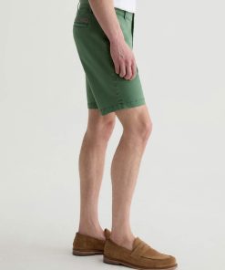 This green wash men’s short is a mid-rise style with an 8.5” inseam and a slim trouser fit. Crafted from 7.4 oz. Brighton Sueded Sateen, it offers a polished look with a soft, refined feel.