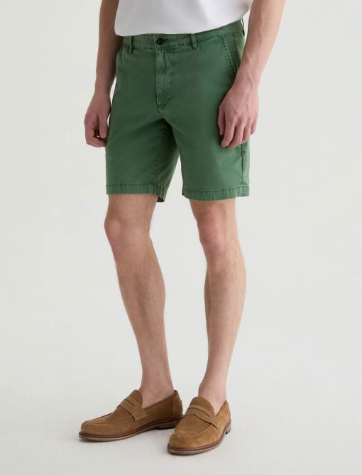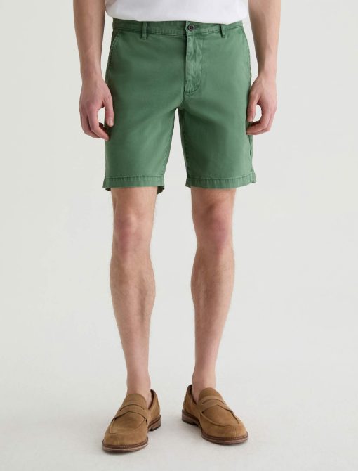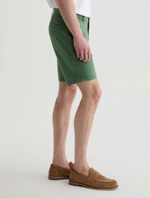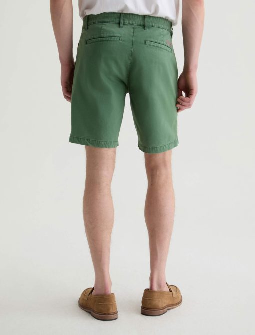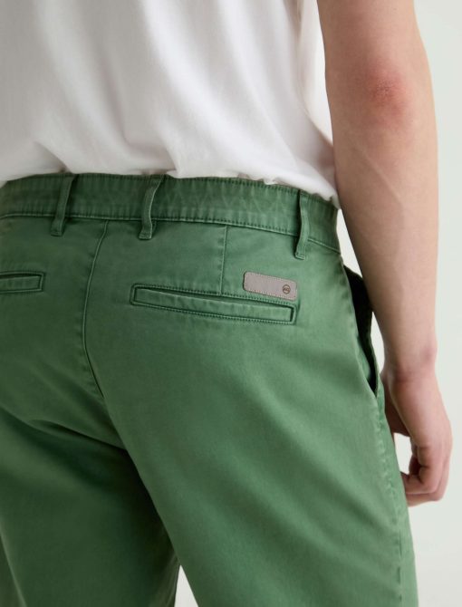 This green wash men’s short is a mid-rise style with an 8.5” inseam and a slim trouser fit. Crafted from 7.4 oz. Brighton Sueded Sateen, it offers a polished look with a soft, refined feel.
