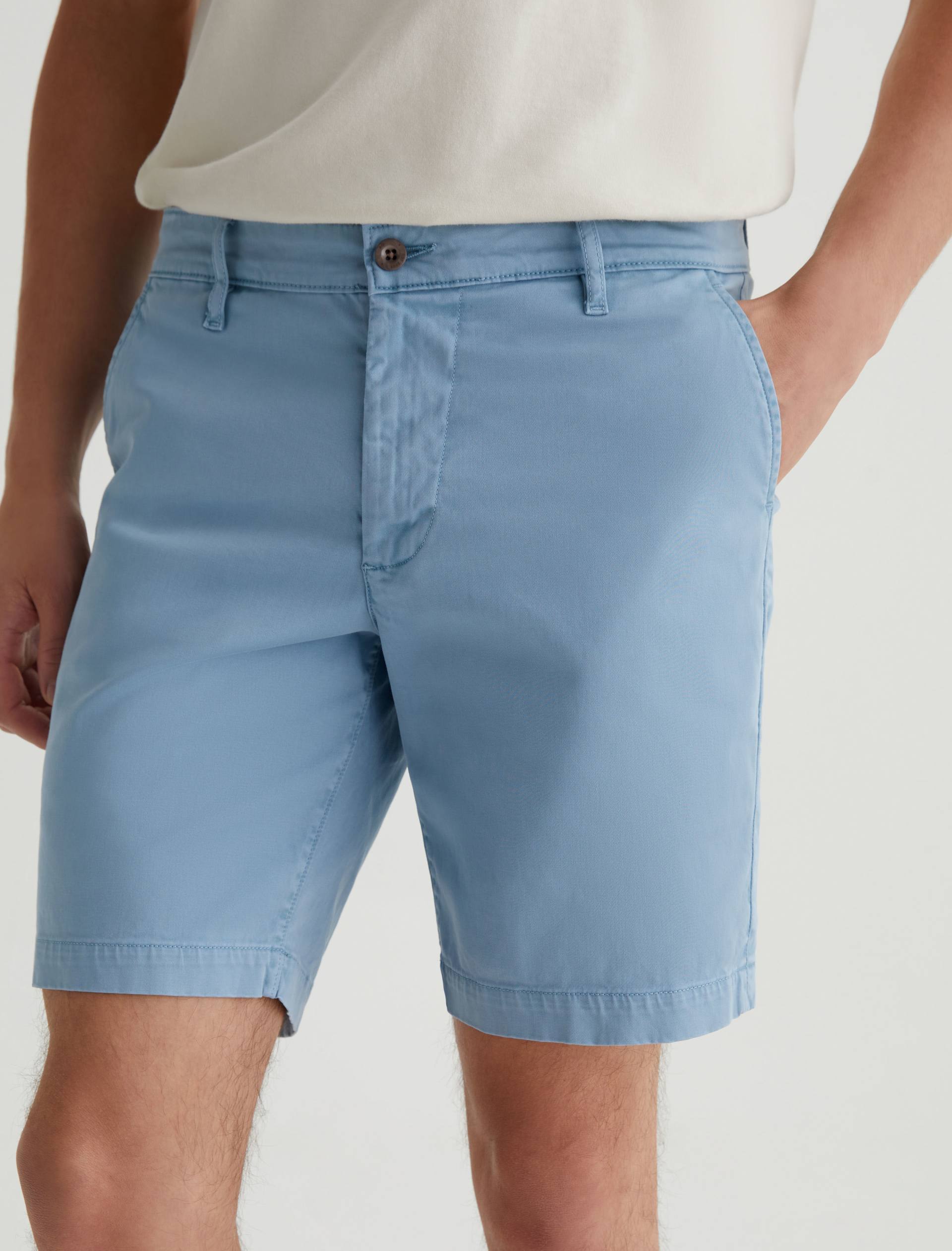 Our Wanderer Short for men has a clean trouser look in a slim fit with slightly tapered legs. Sulfur-dyed to a subdued blue shade, these men’s shorts are crafted from lightweight and sumptuous 7.4 oz. Brighton Sueded Sateen with premium stretch.