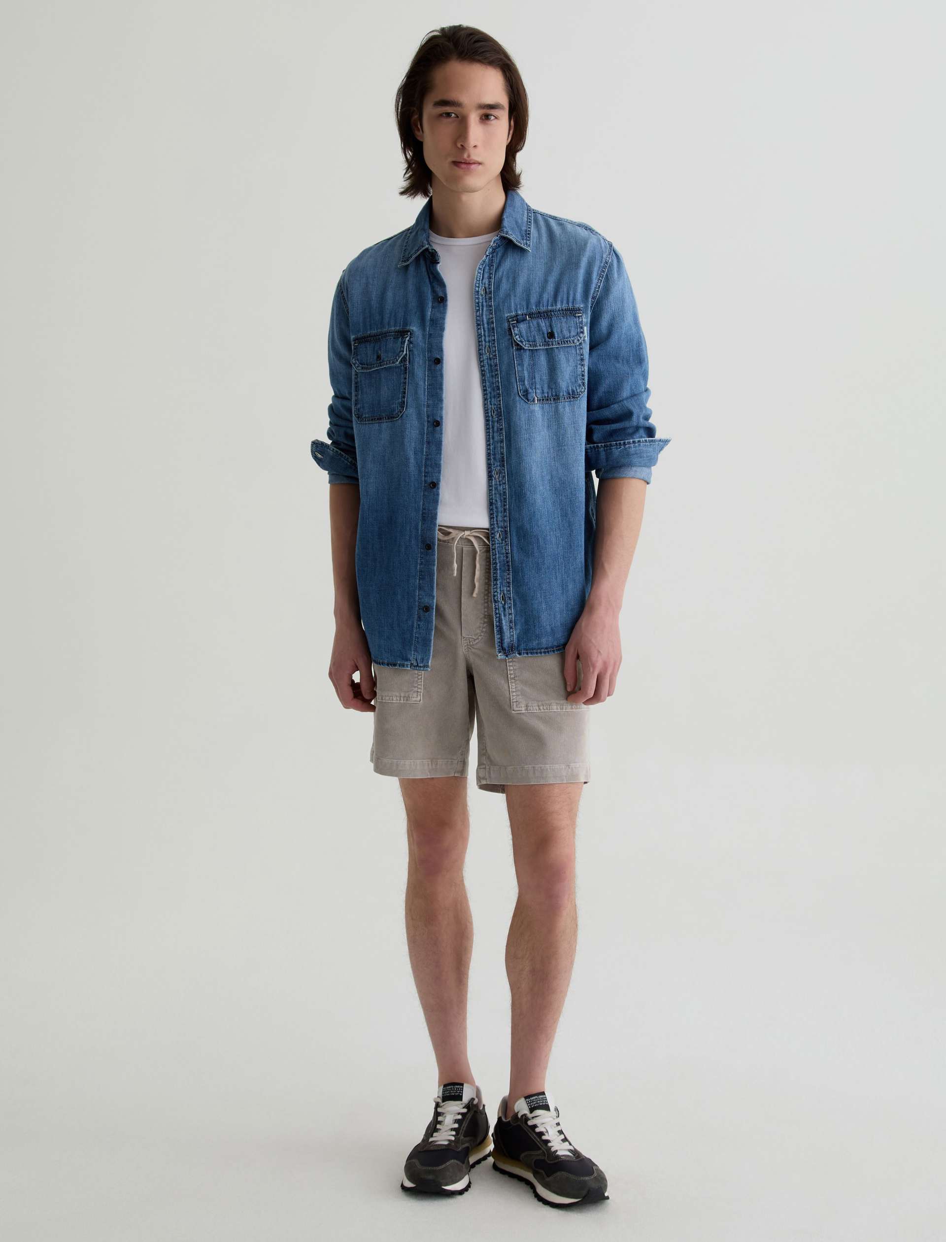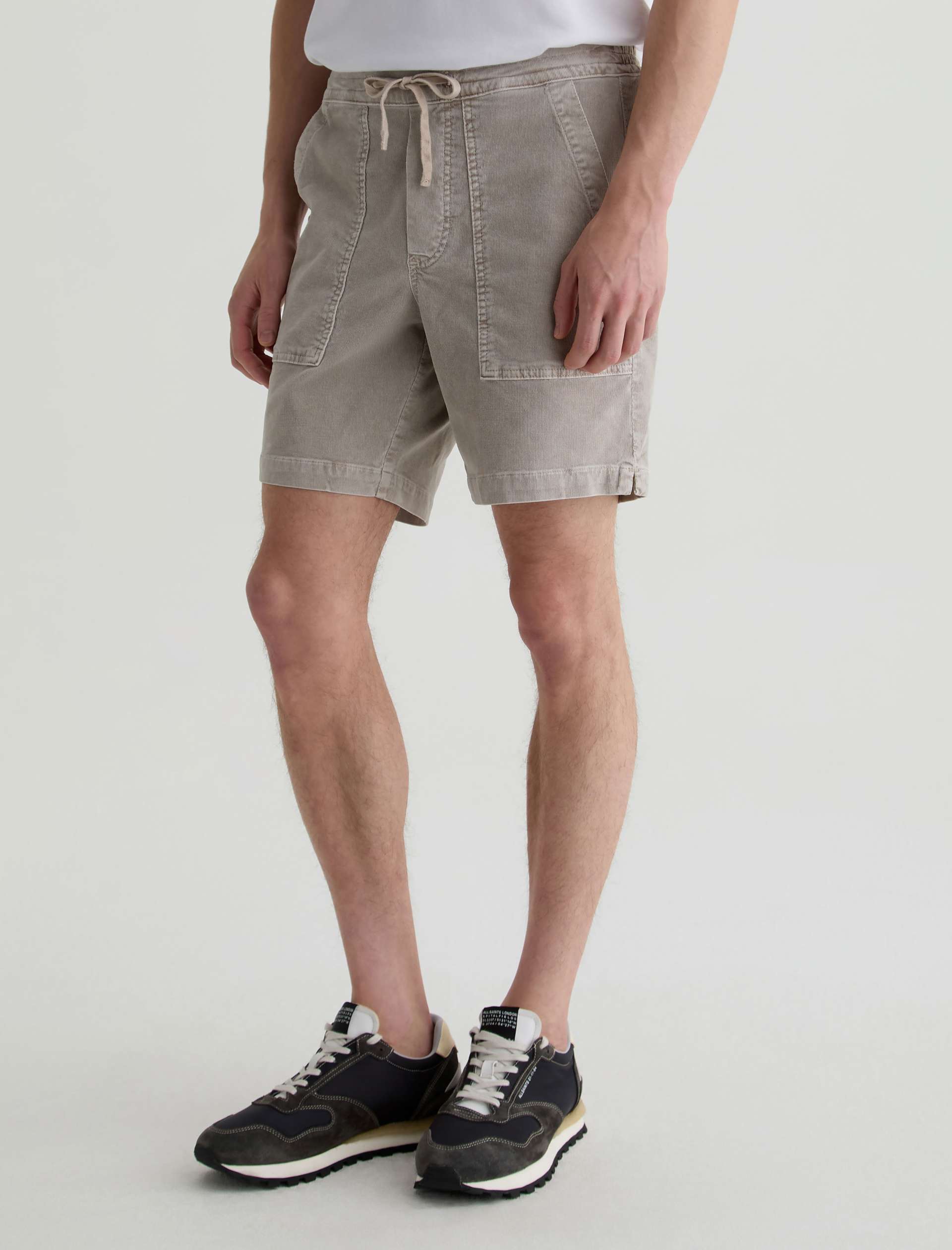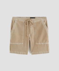 The Wells Drawstring Short features a lounge-ready relaxed fit in sulfur-dyed corduroy. Designed with fatigue pockets, these pull-on shorts for men are extra comfortable thanks to the partially elasticized waistband. Buttoned flap pockets at the back complete the look.