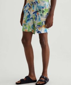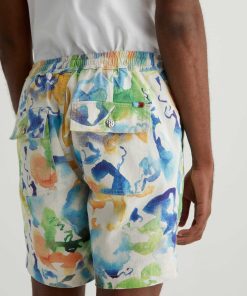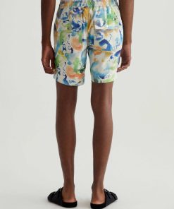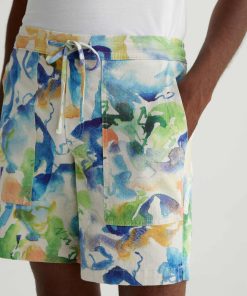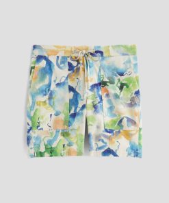 The Wells Drawstring Short is cut from a soft linen-blend stretch twill with a cool watercolor print. Cut for a lounge-ready relaxed fit, this pull-on style has fatigue front pockets and a partially elasticized waistband. Buttoned flap pockets at the back complete the look. About the Art Project print: Watercolor’s flo
