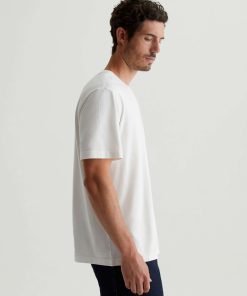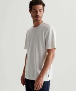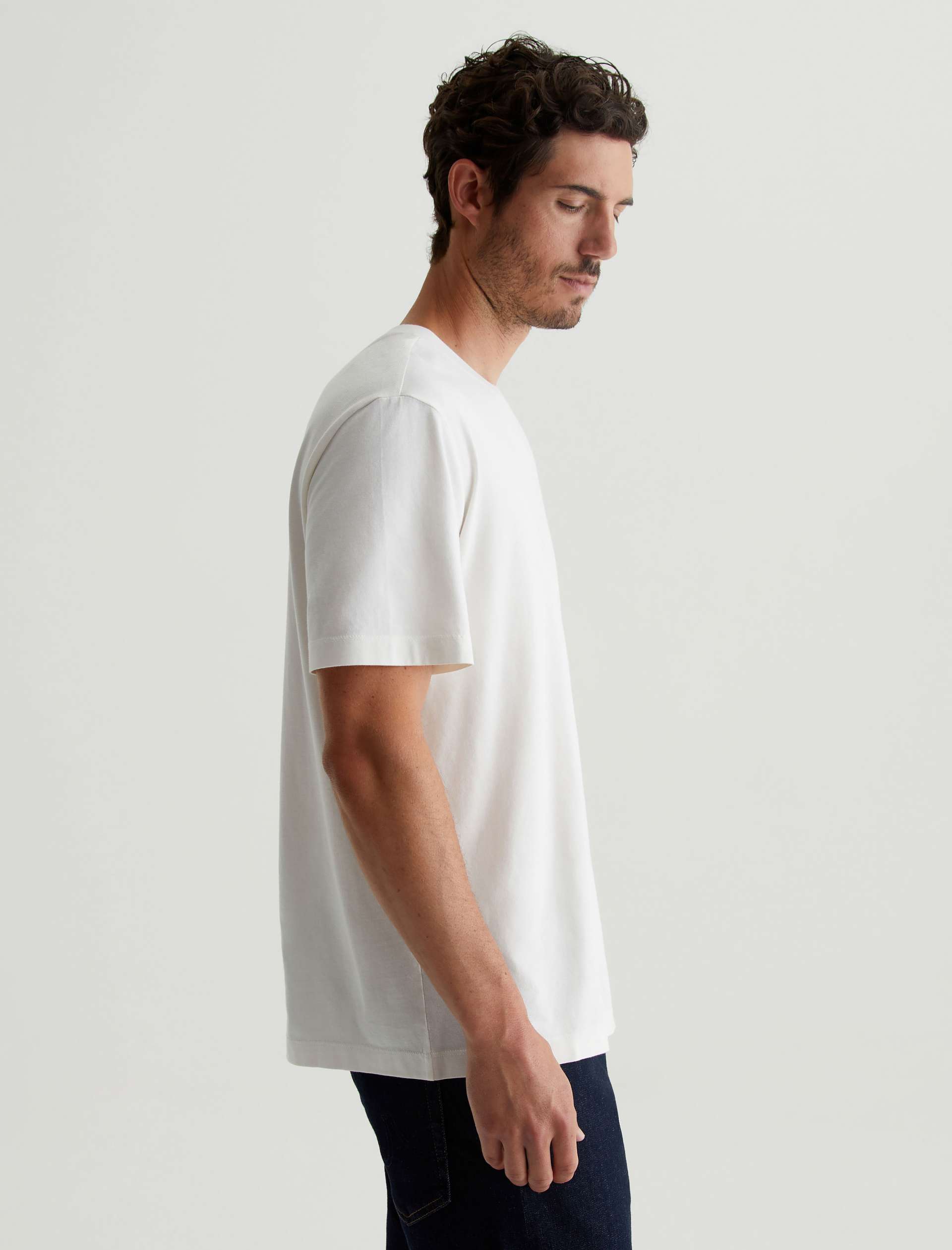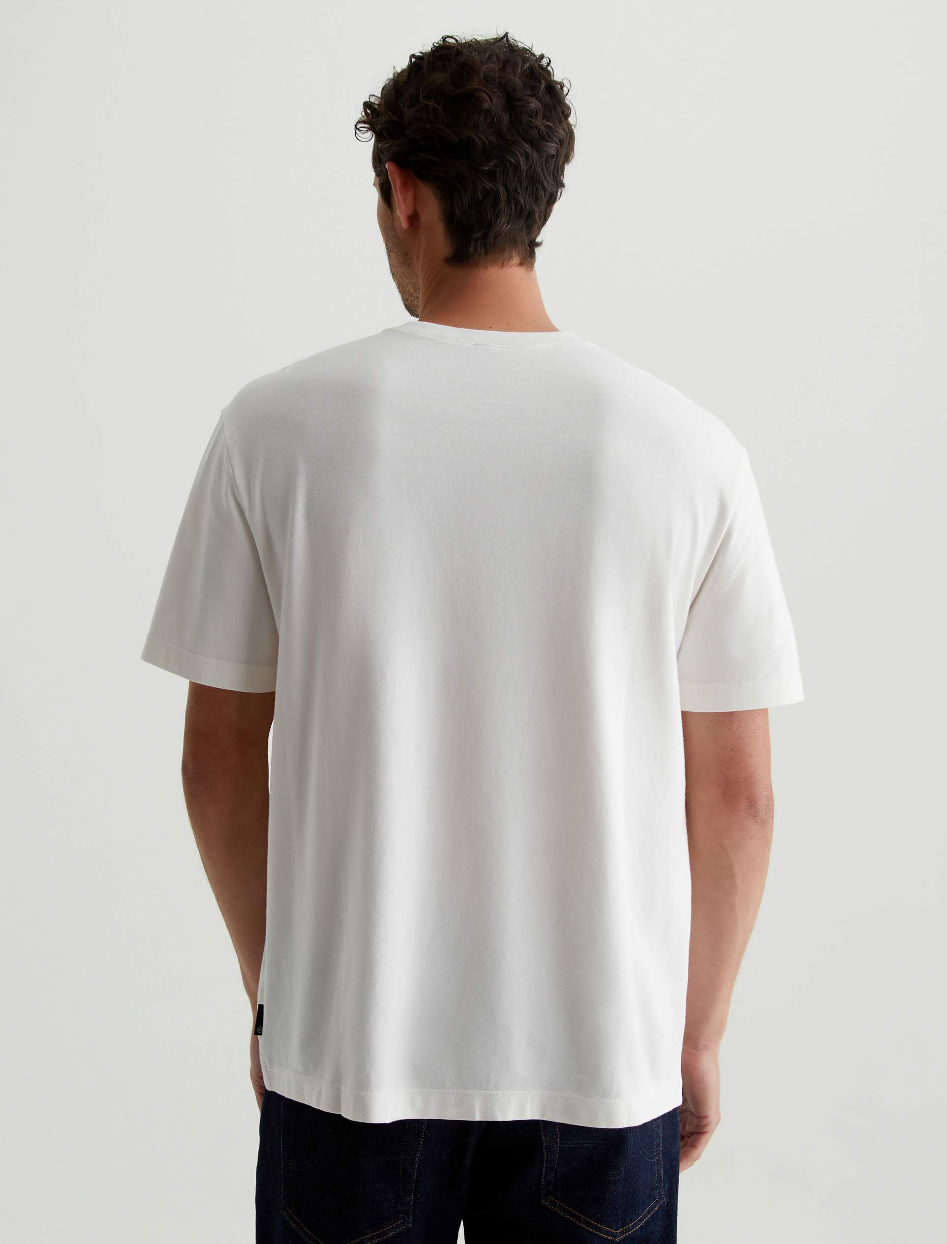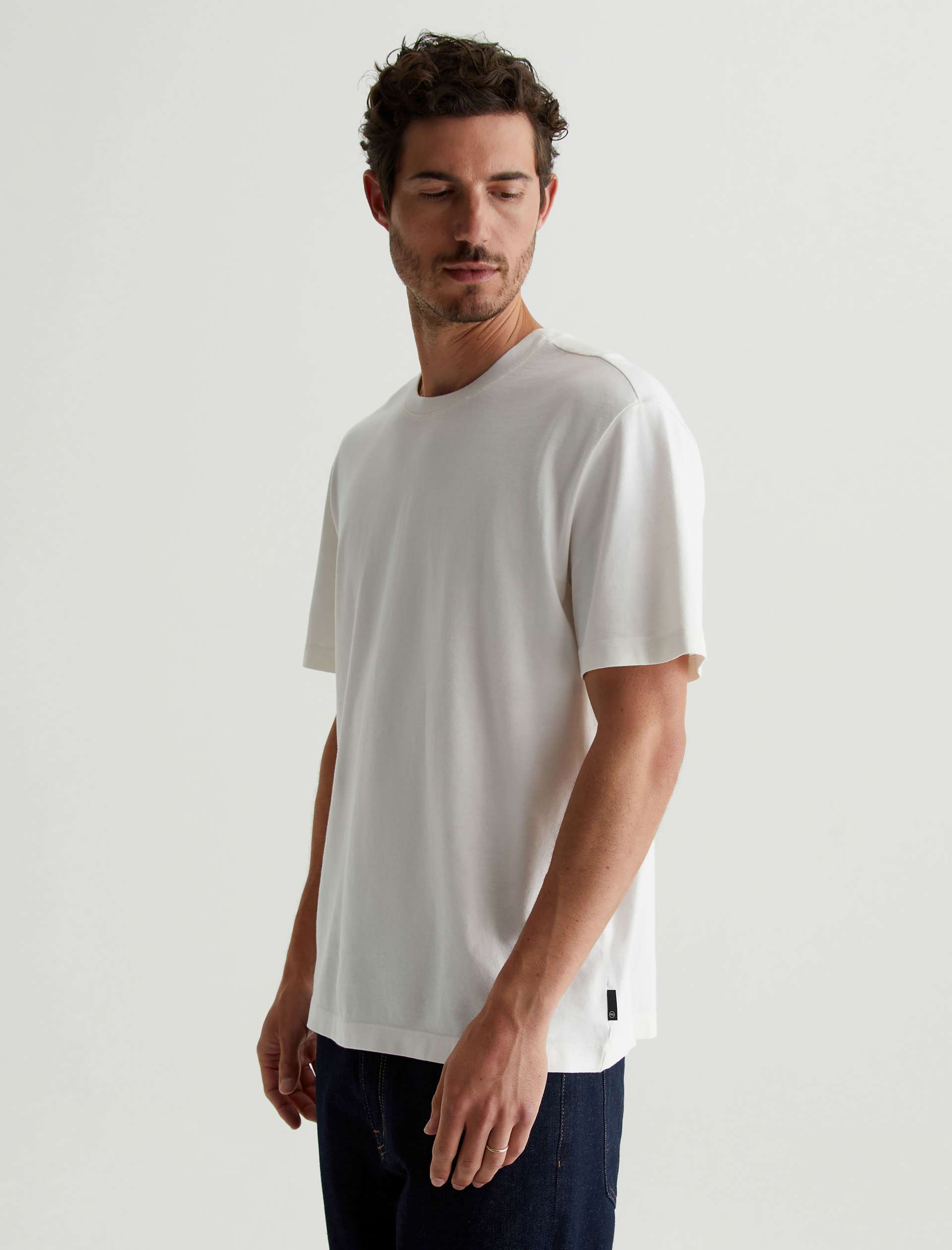 The Wesley Crew in ivory dust is a relaxed short-sleeve tee for men. The tee offers drop shoulder detailing and wider hem for a more fashion forward fit. Our Jersey Knit offers a luxurious comfort that is unrivaled—knitted with both S-twist and Z-twist yarn to sustain longevity and stability, preventing unnecessary twi