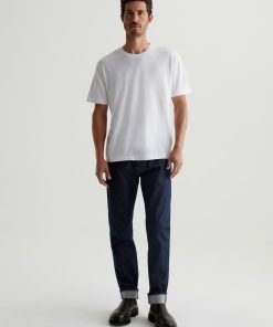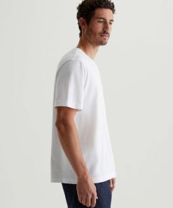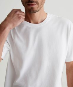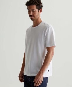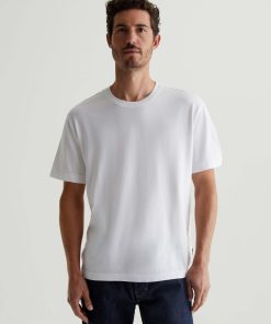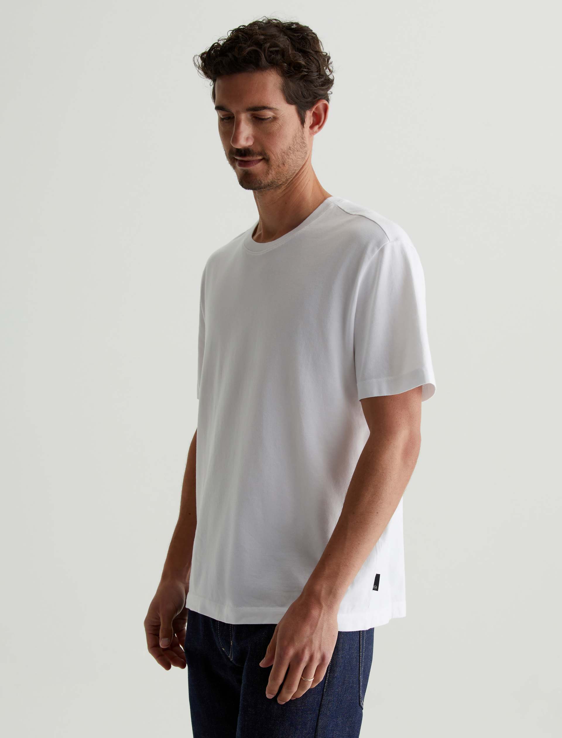 The Wesley Crew in white is a relaxed short-sleeve tee for men. The tee offers drop shoulder detailing and wider hem for a more fashion forward fit. Our Jersey Knit offers a luxurious comfort that is unrivaled—knitted with both S-twist and Z-twist yarn to sustain longevity and stability, preventing unnecessary twisting