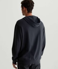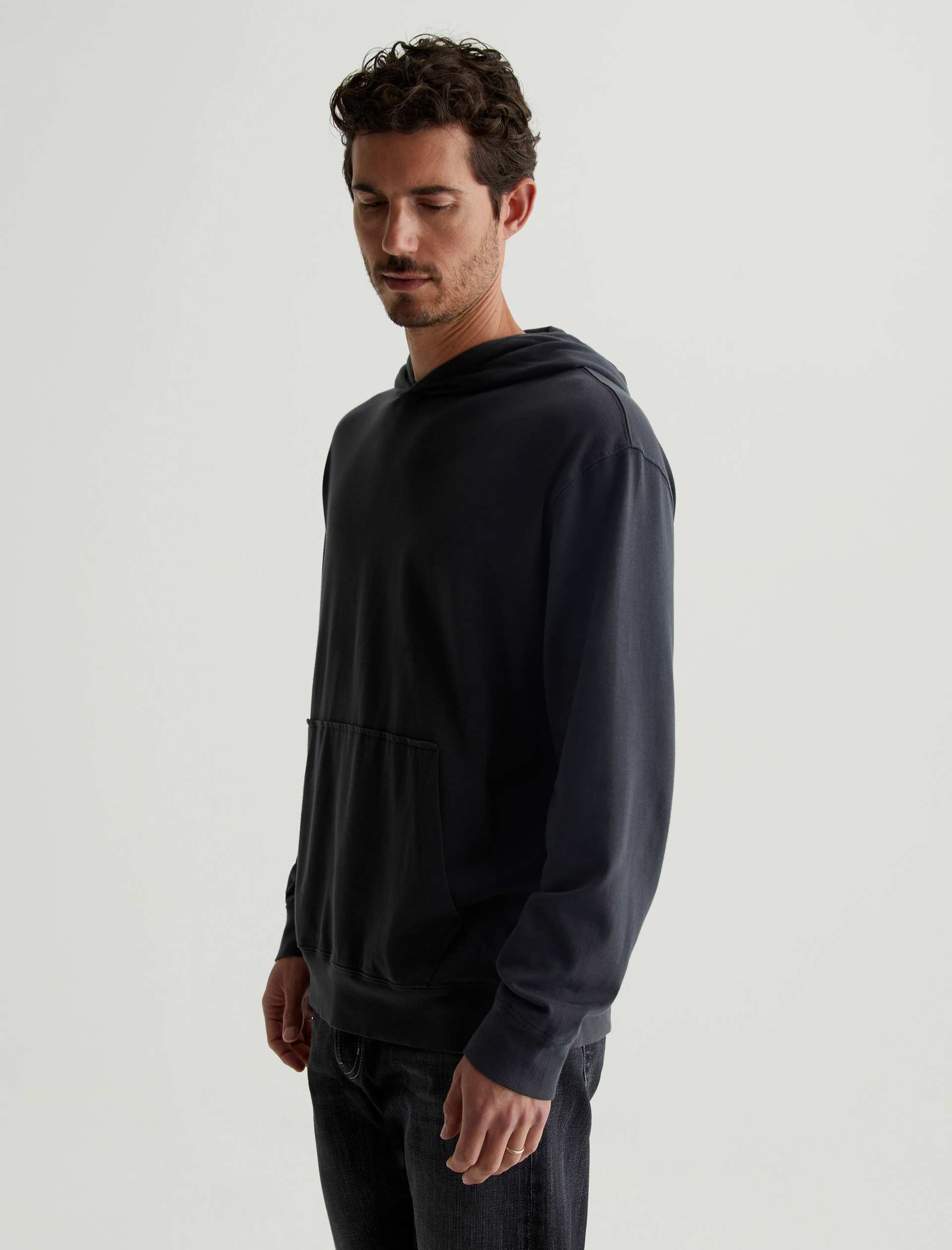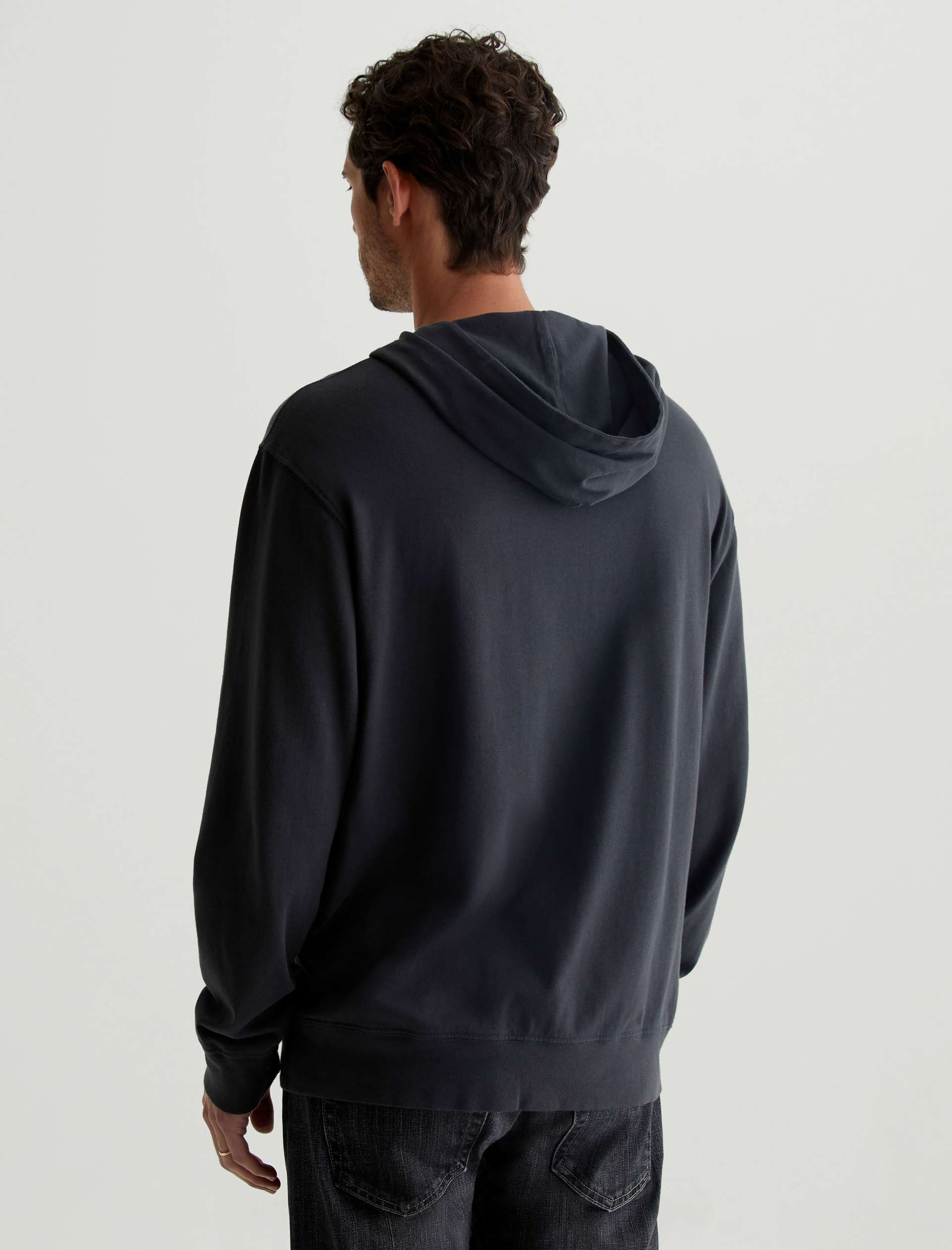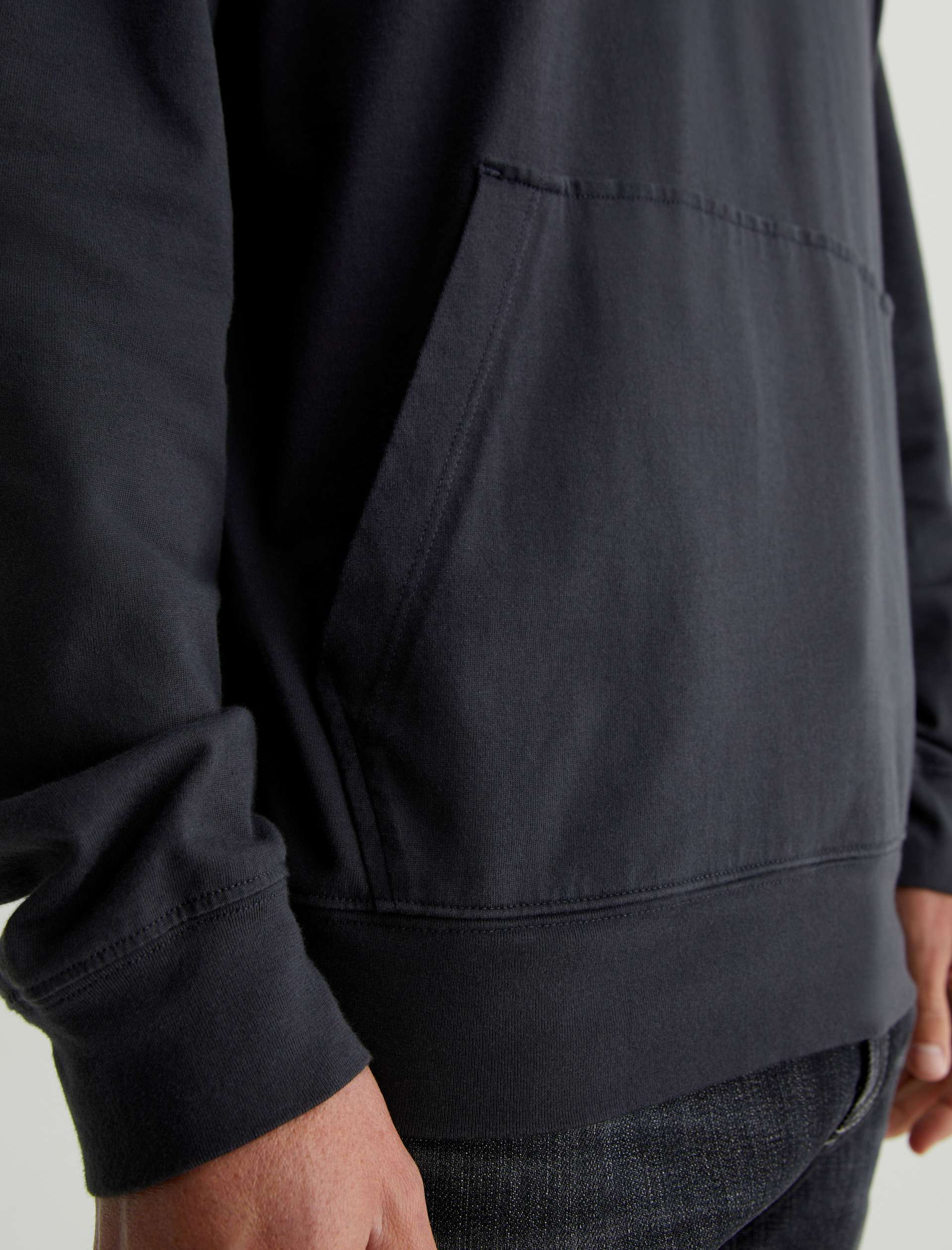 The Wesley Hoodie in dark grey is a lightweight jersey sweatshirt complete with a front kangaroo pocket and a hoodie that is double layered for shape and structure. Our Jersey Knit offers a luxurious comfort that is unrivaled—knitted with both S-twist and Z-twist yarn to sustain longevity and stability, preventing unne