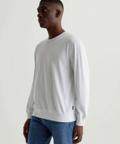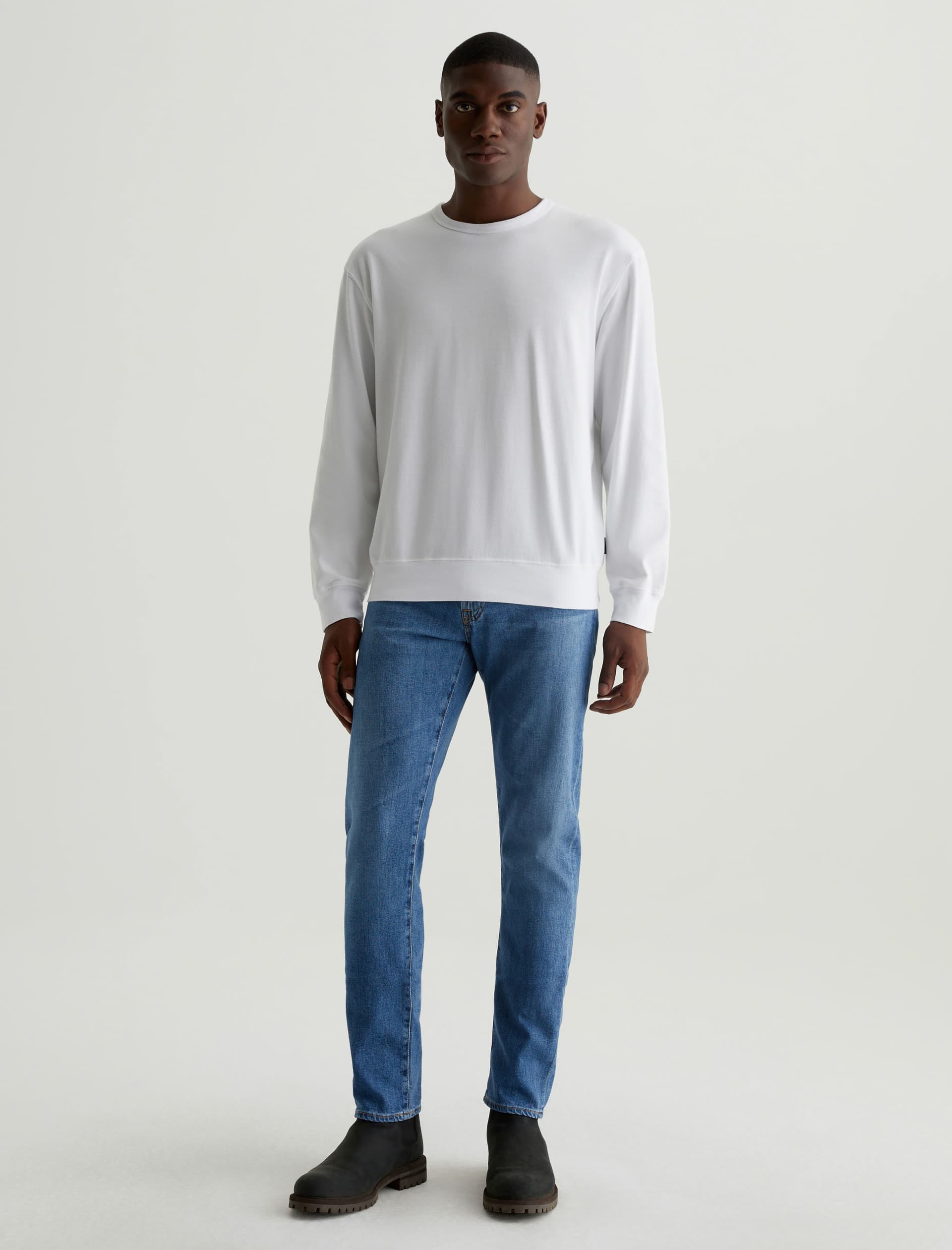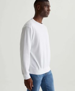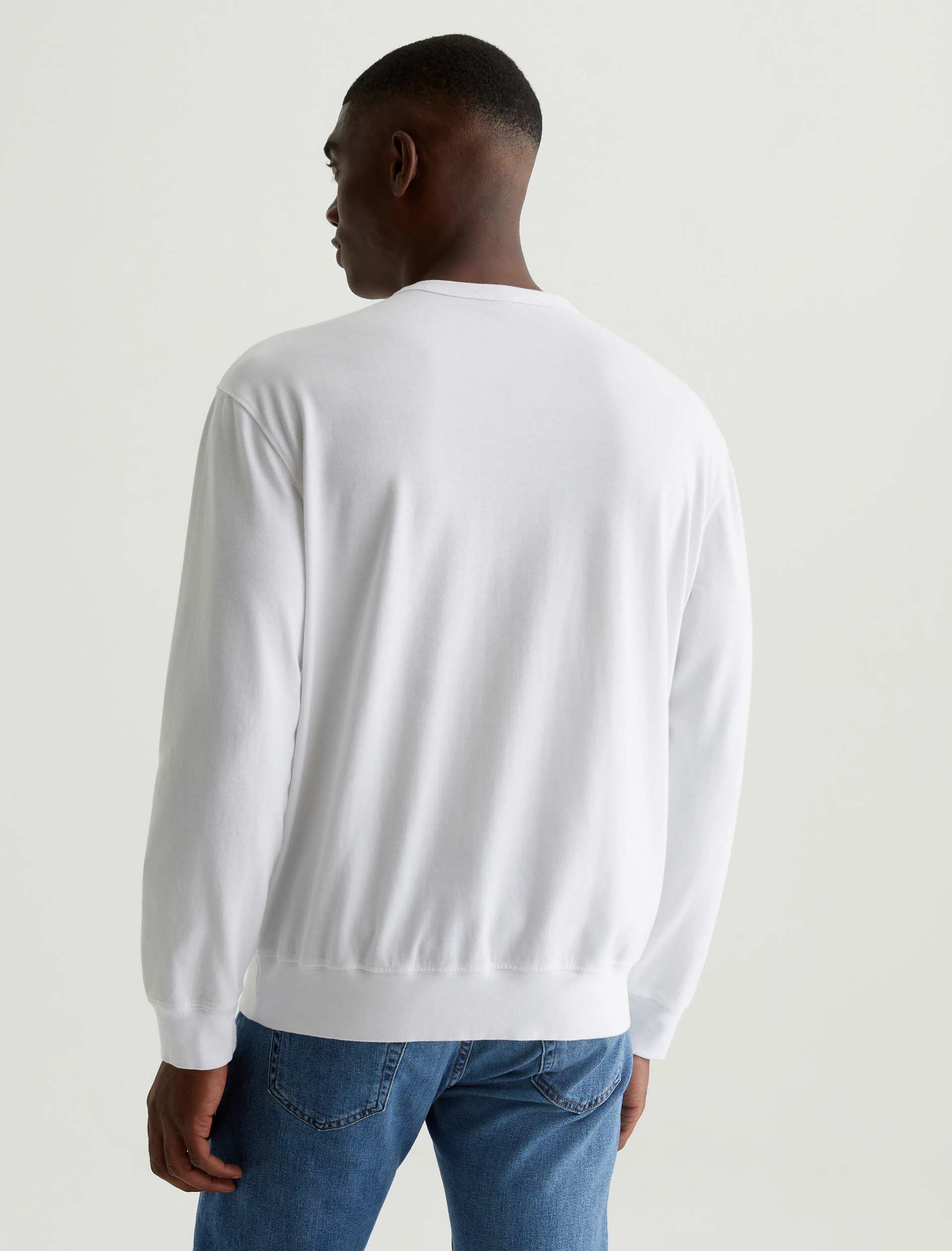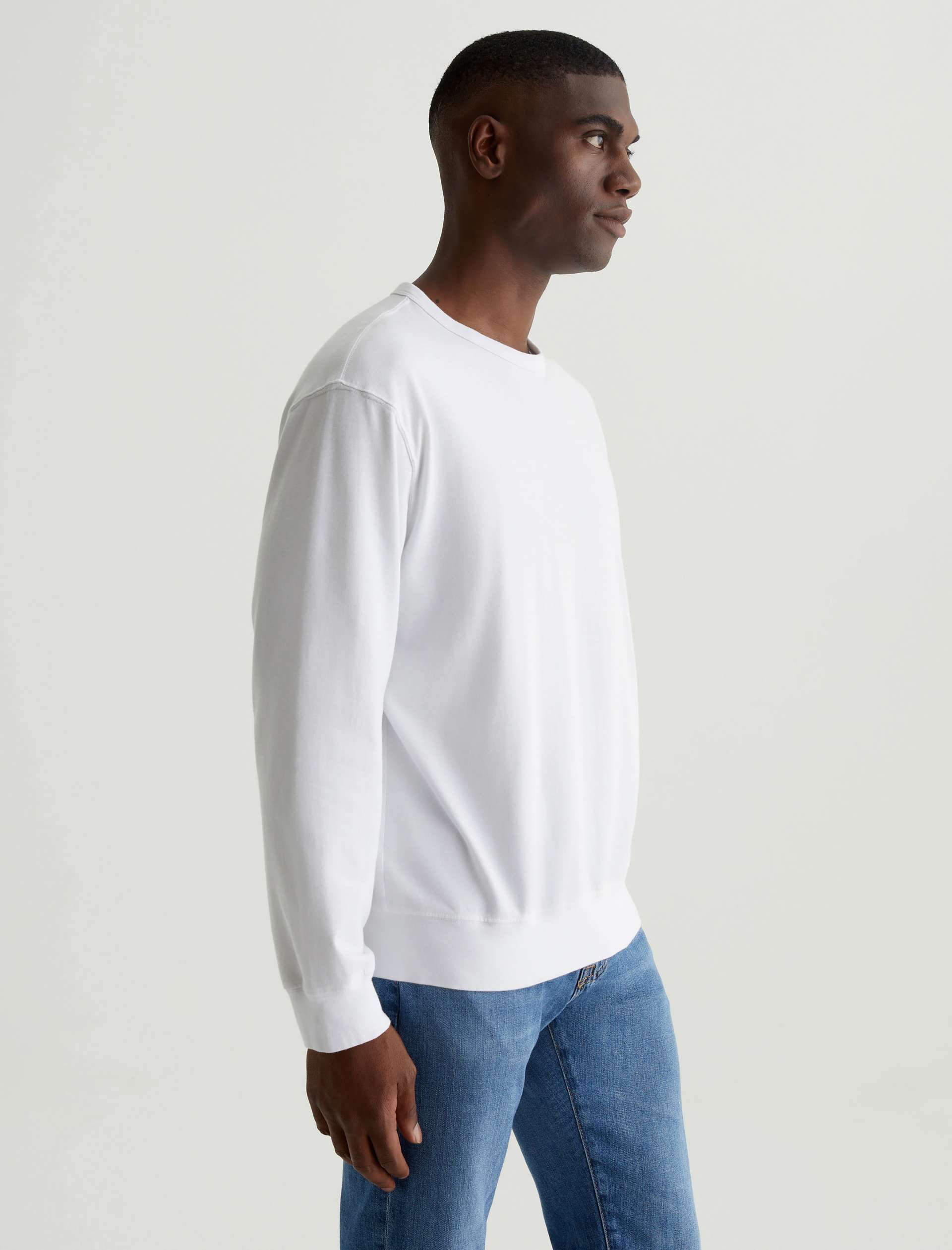 The Wesley Pullover in white is a new silhouette added to our Basic Essentials collection. Borrowing details from a traditional sweatshirt such as rib binding, cuffs, and bottom hem allowed us to create a lightweight pullover that feels classic, modern, and uniform. Our Jersey Knit offers a luxurious comfort that is un