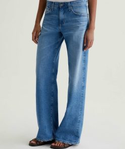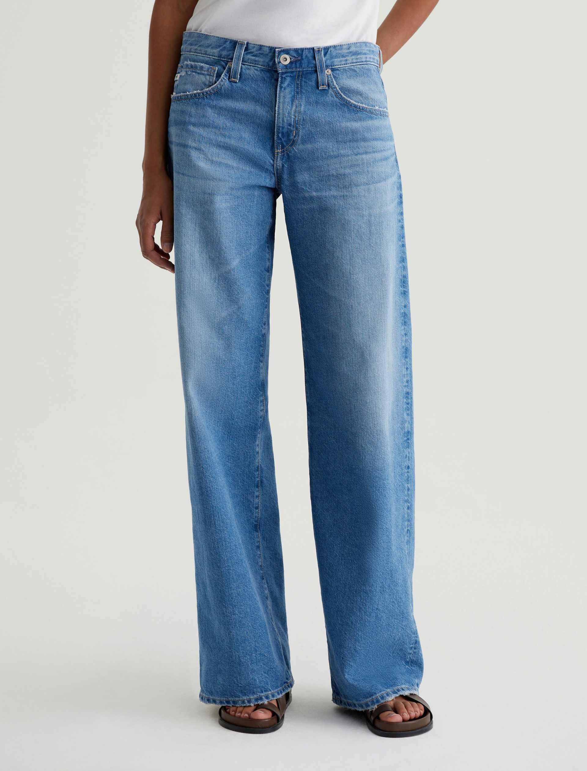 The Adria wide-leg jeans have a low-rise waist that hangs on the hips for a relaxed, slouchy look. This five-pocket style fits loose through the legs, designed to puddle at the hems. Updated in 12 oz. Drapey Rigid Denim, it’s blended with lyocell for a soft feel and features a brilliant blue wash. Fading, pocket edges,
