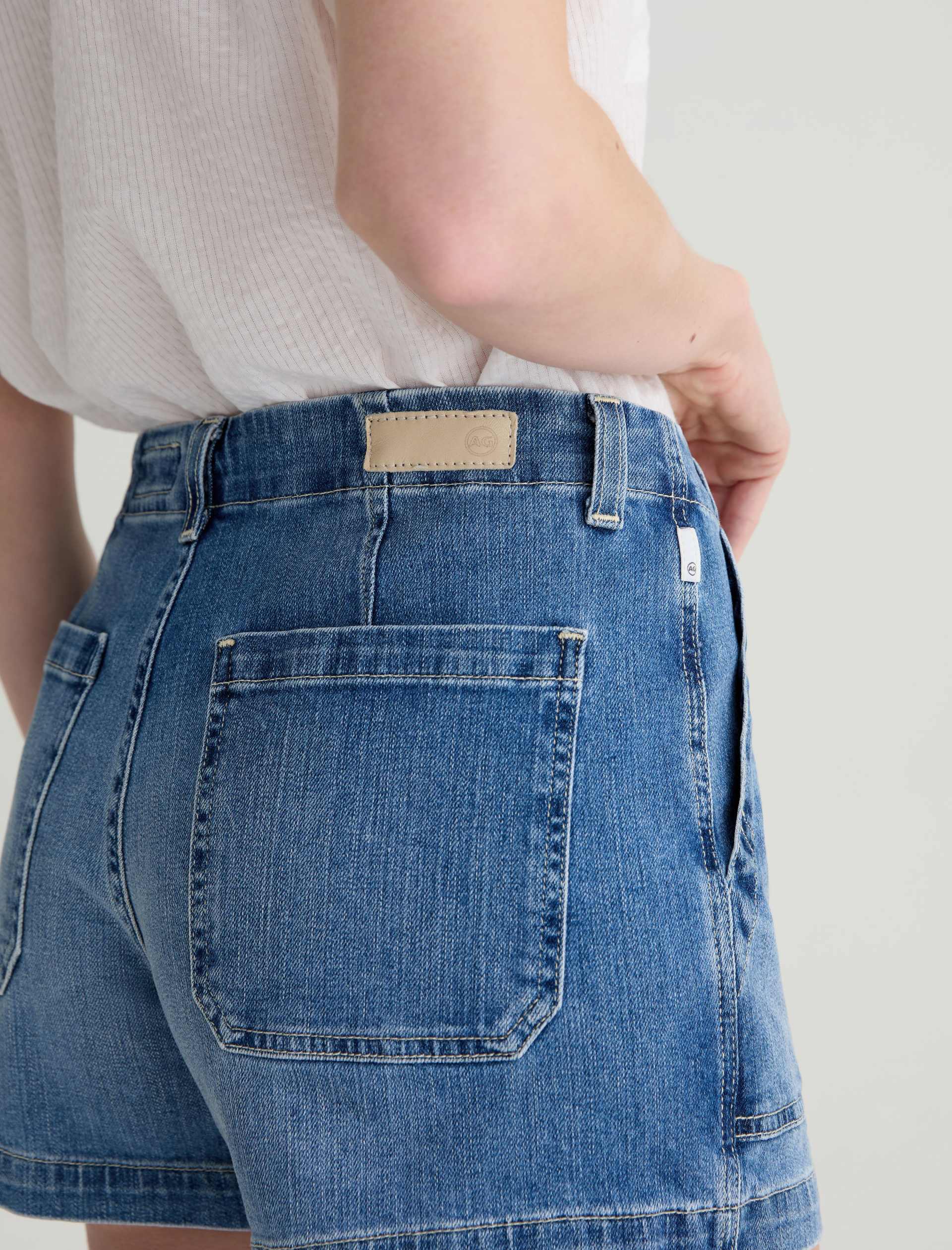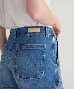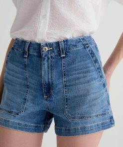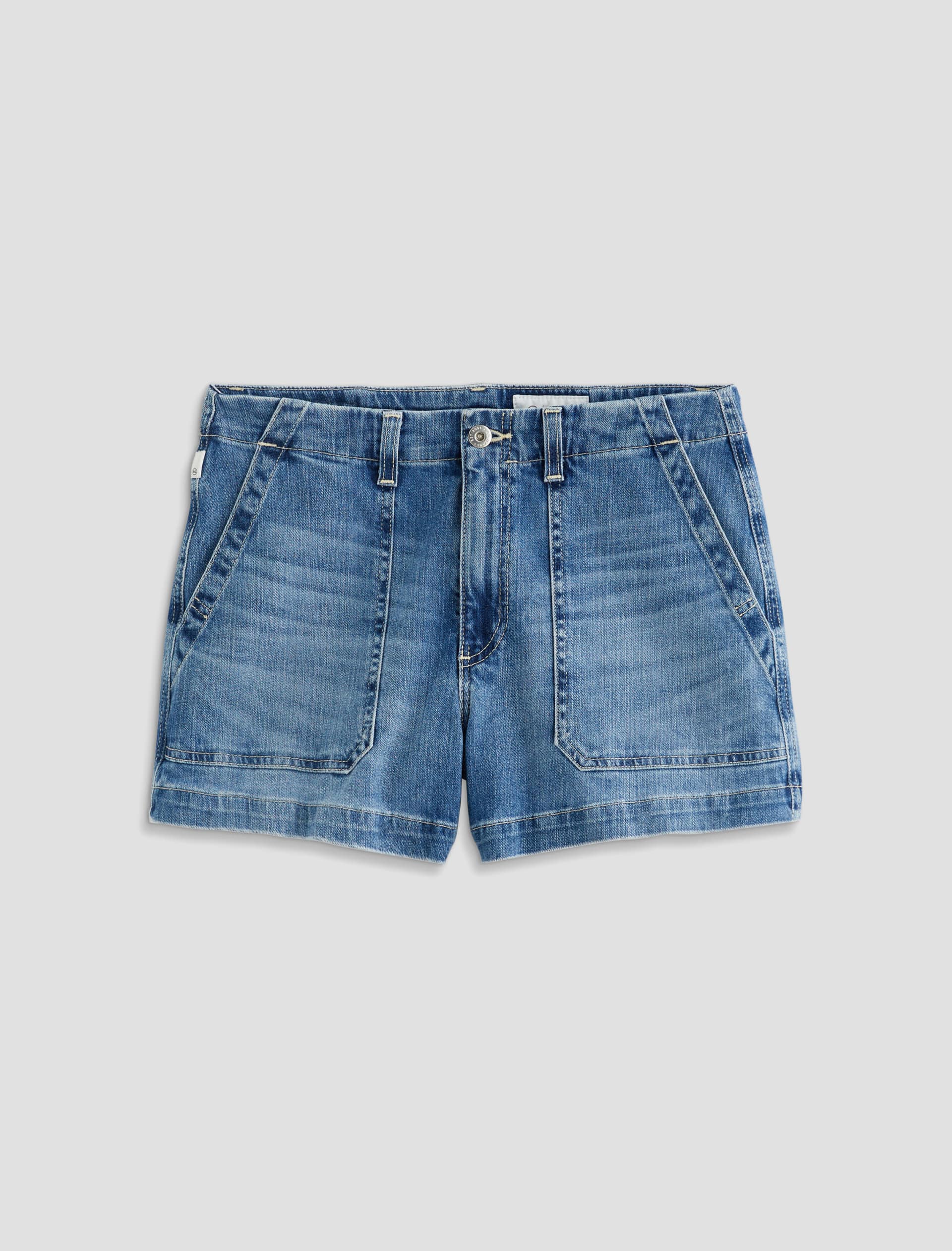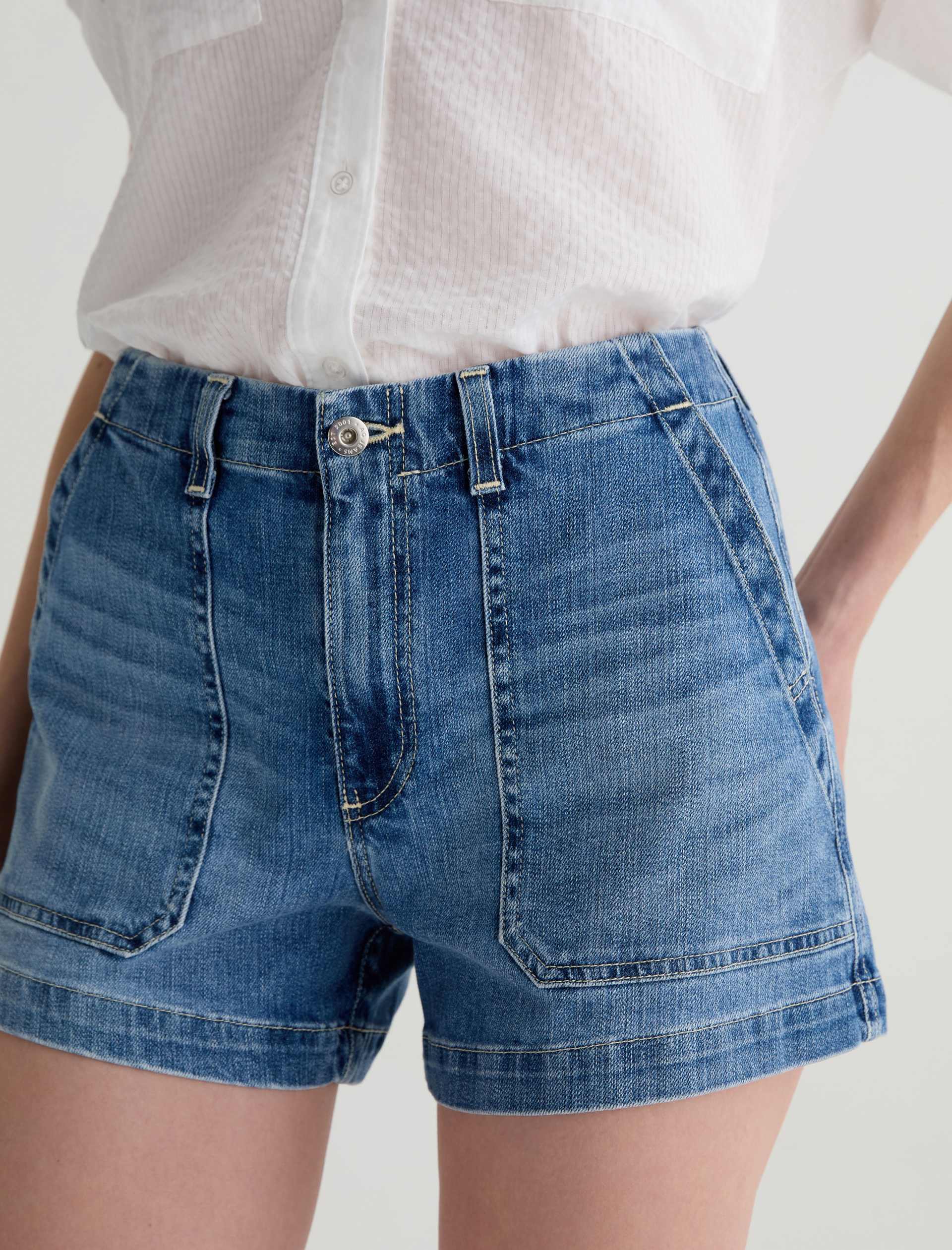 The Analeigh Short is a high-rise style crafted from comfort stretch denim for flexibility and all-day wear. Designed in a light blue wash, it features workwear-inspired pockets that add a utilitarian touch.