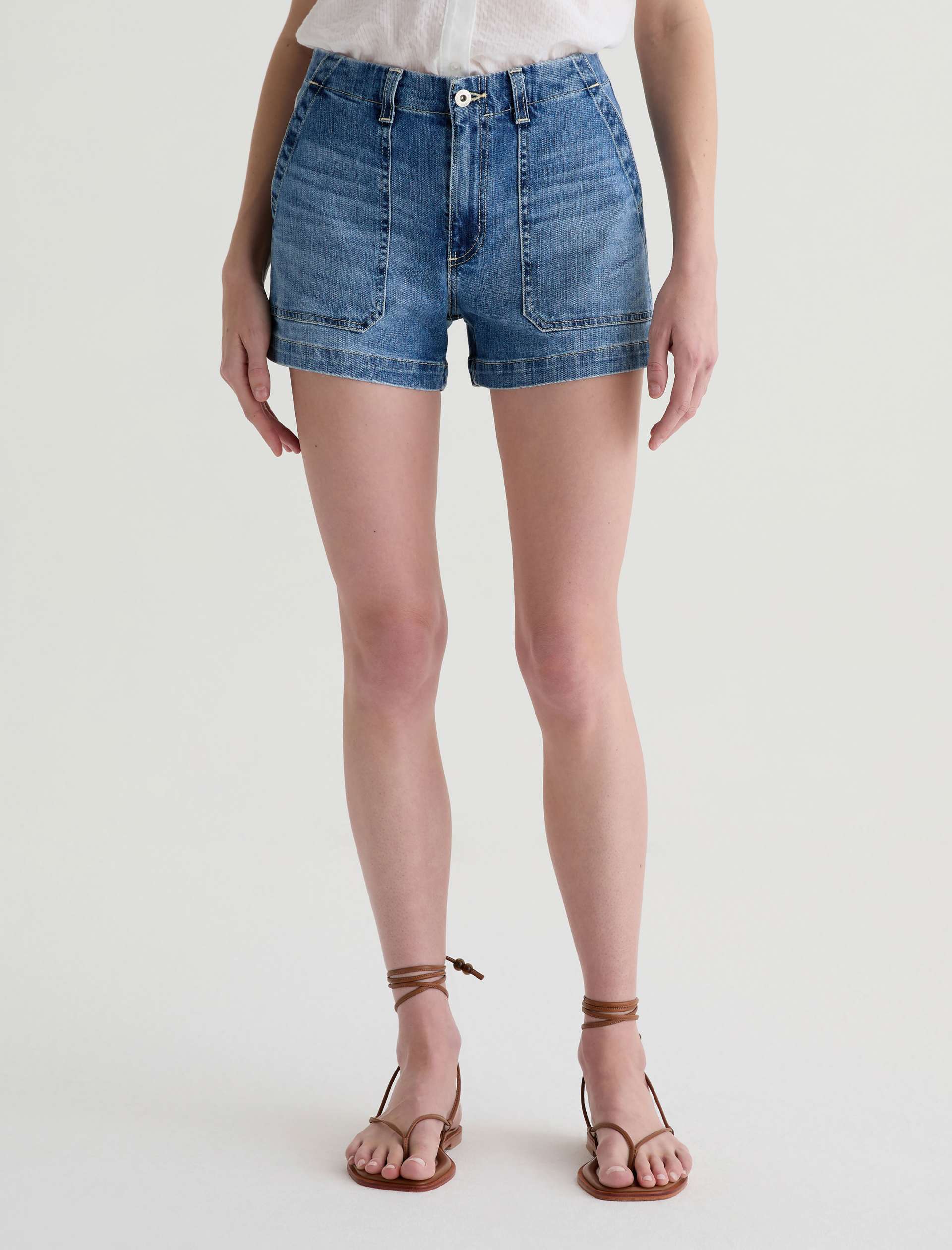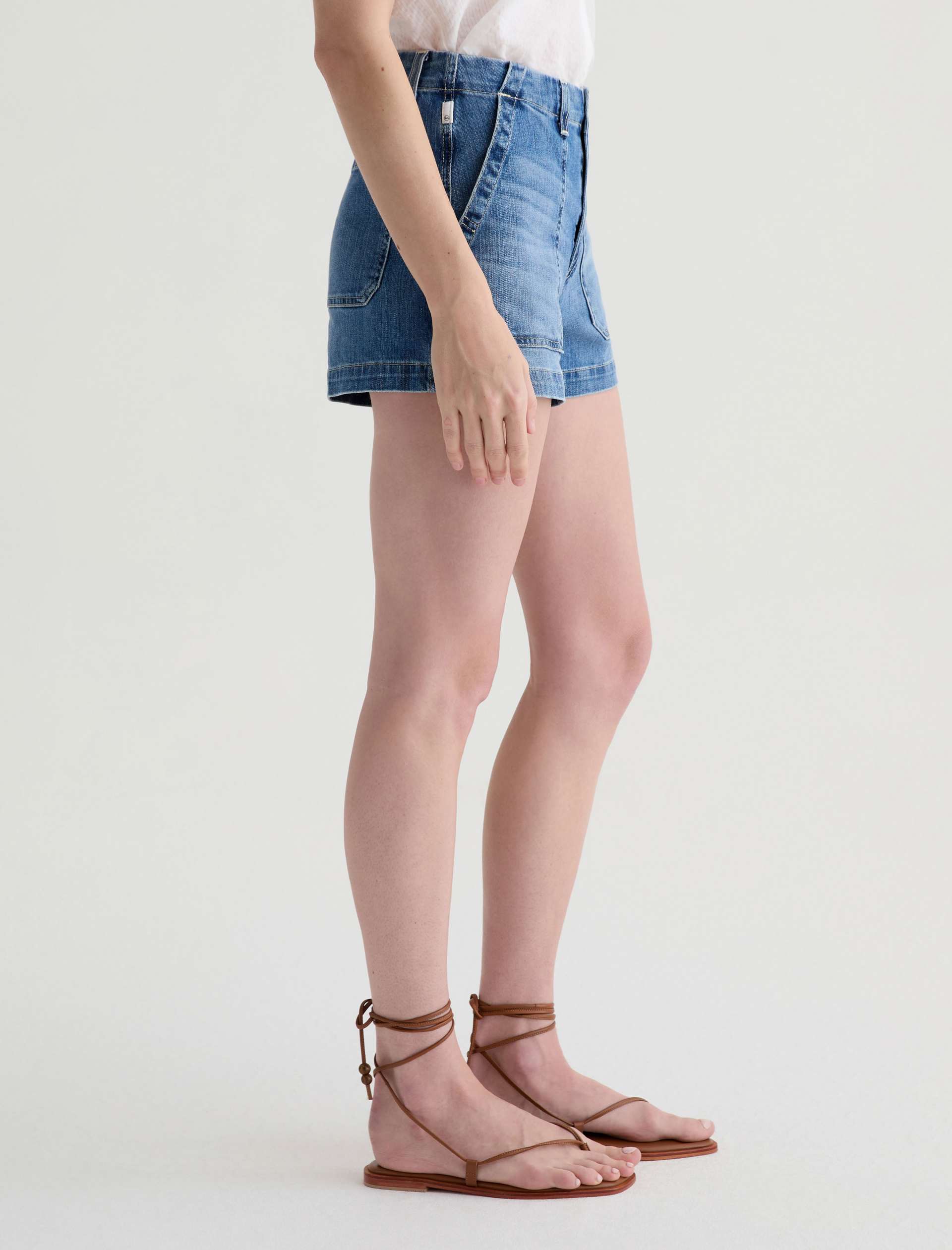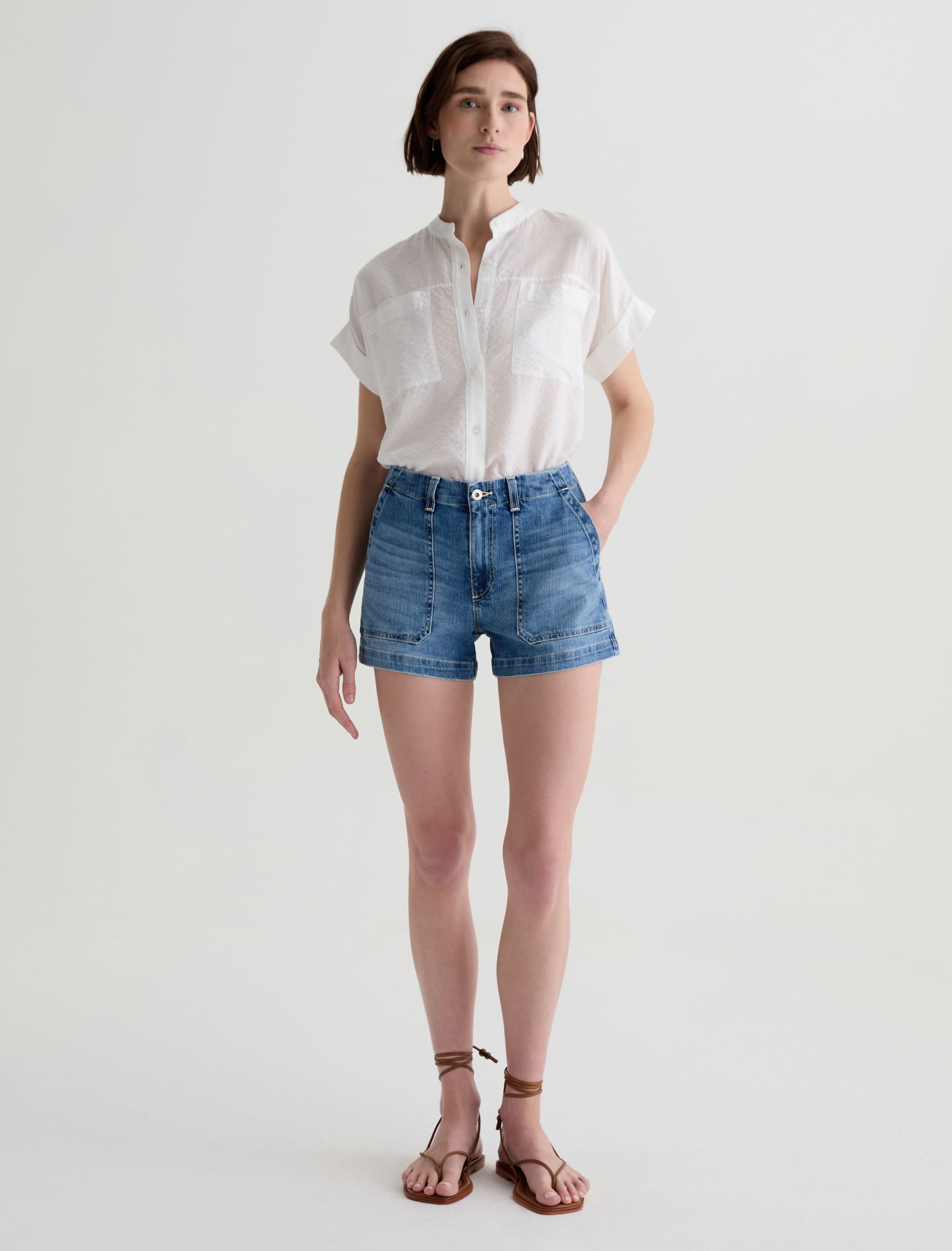 The Analeigh Short is a high-rise style crafted from comfort stretch denim for flexibility and all-day wear. Designed in a light blue wash, it features workwear-inspired pockets that add a utilitarian touch.