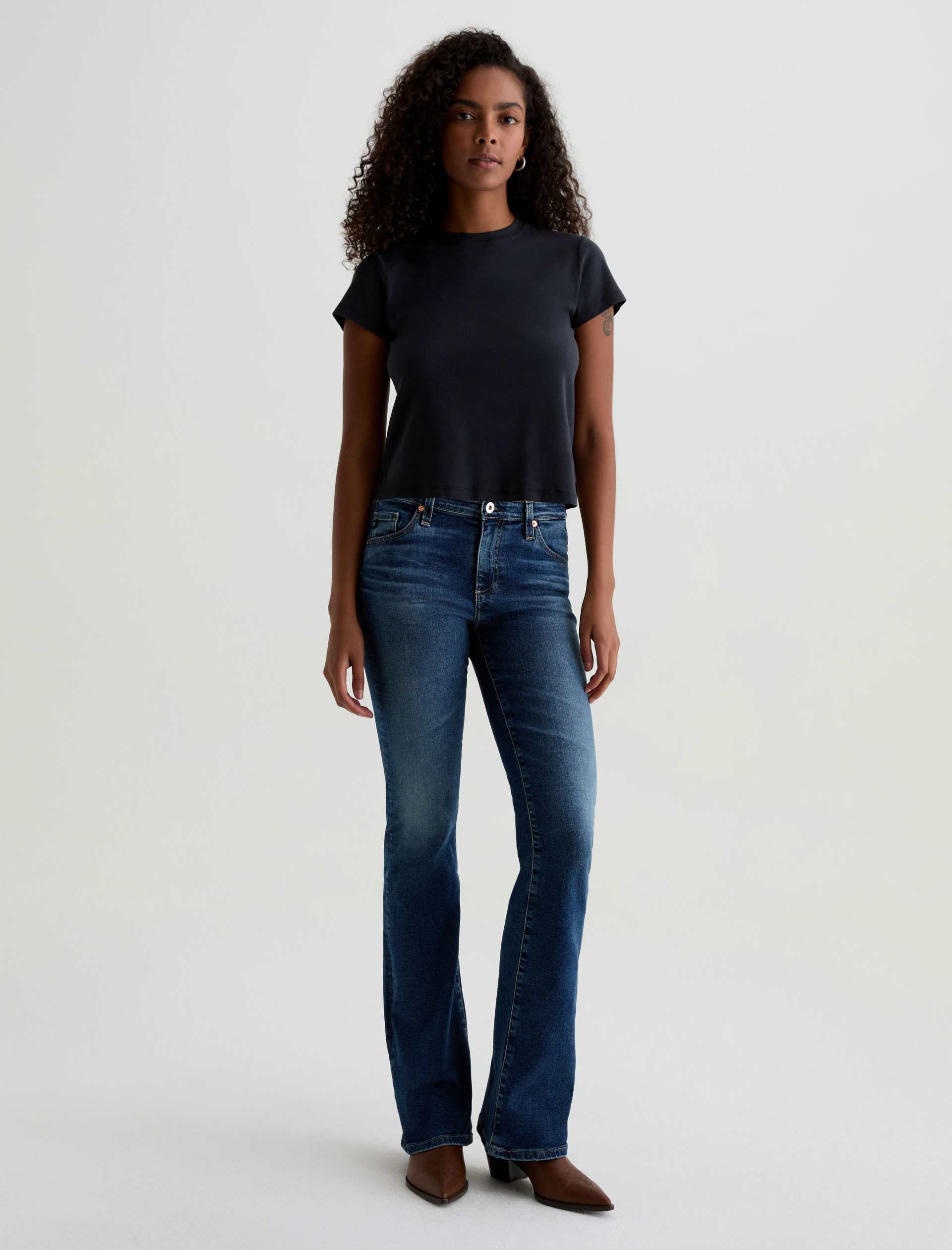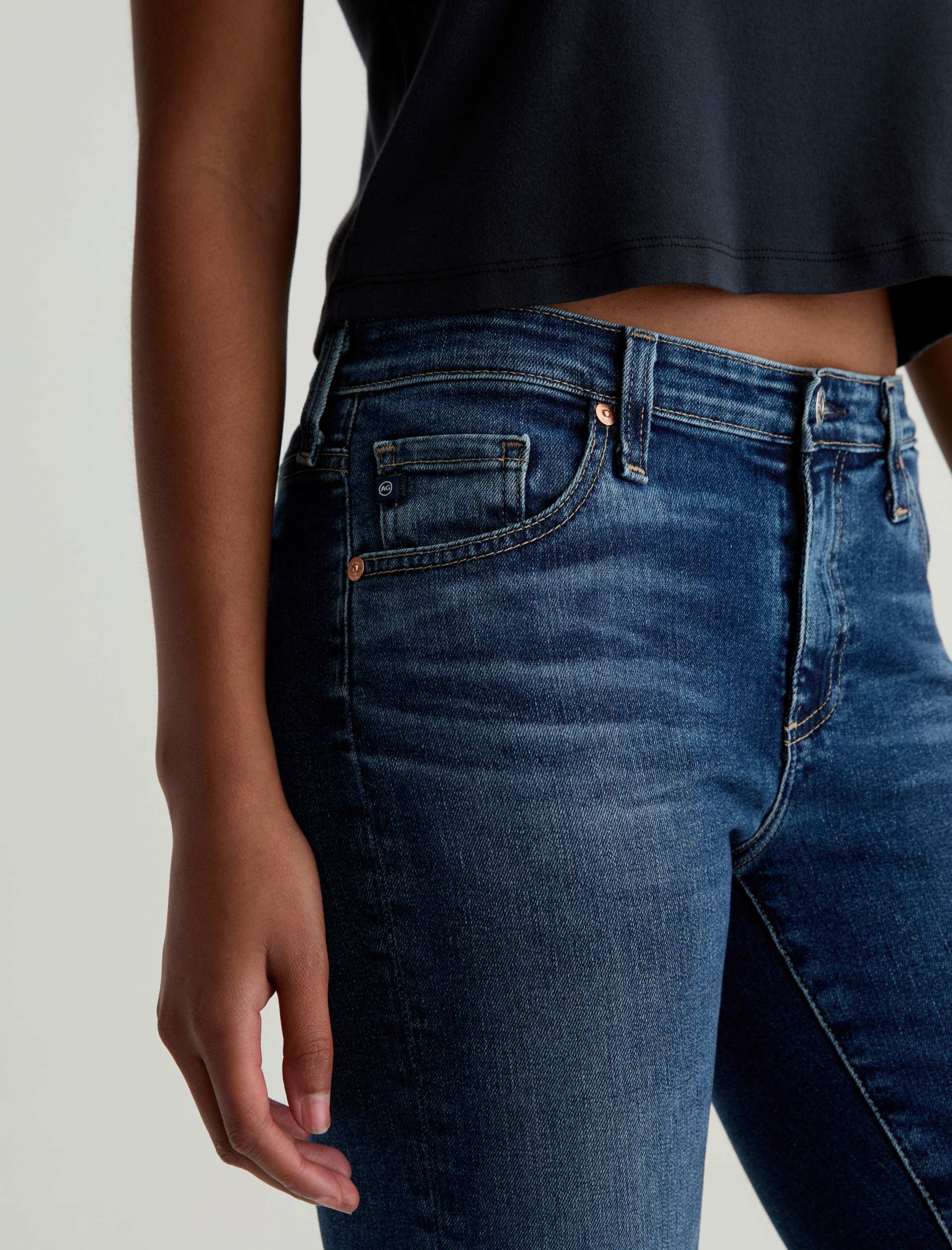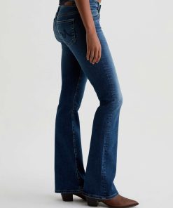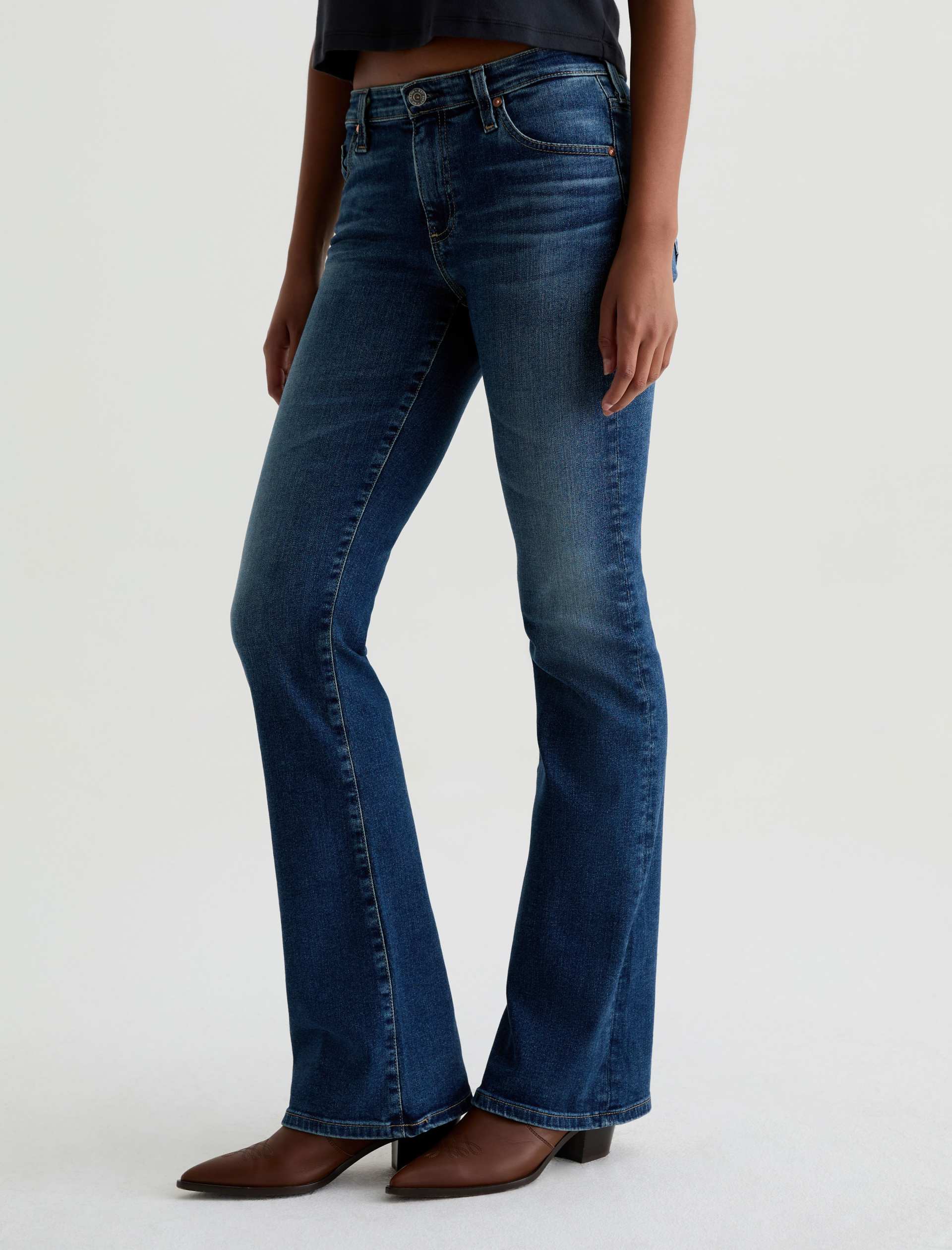 Our Angel Extended low-rise bootcut jean features a longer inseam. Crafted from 10 oz. Empower Denim with comfort stretch, these women’s bootcut jeans come in a medium dark blue wash featuring subtle faded details.