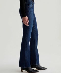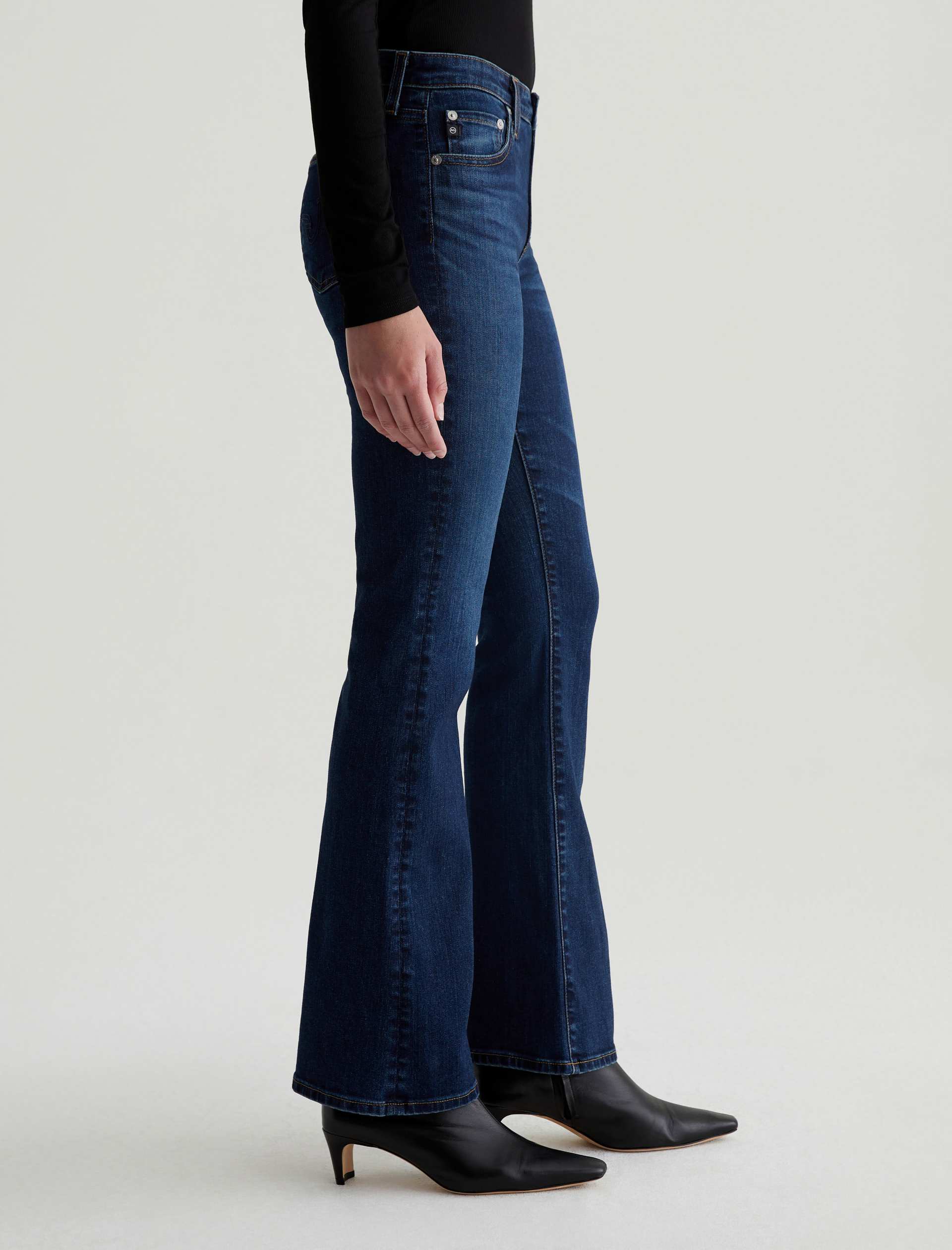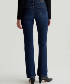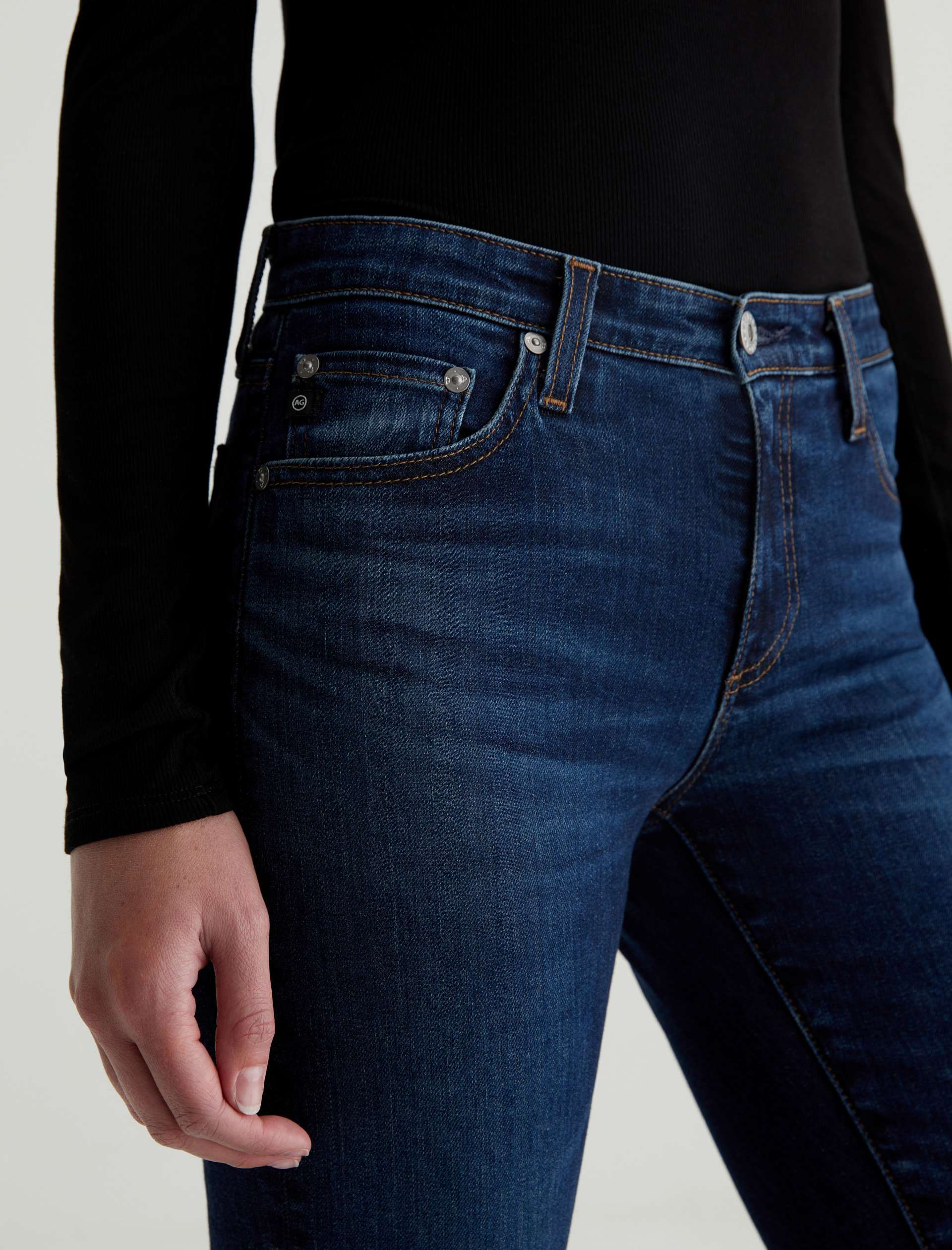 The Angel Vapor Wash low-rise bootcut jeans sit below the natural waist and fit close before opening to a subtle flare. Designed in 10 oz. Rouge Advanced Stretch Denim, this pair features a dark indigo wash that’s been achieved using our eco-friendly AG Vapor Wash™ technology. Our AG Vapor Wash™ process significantly r