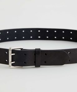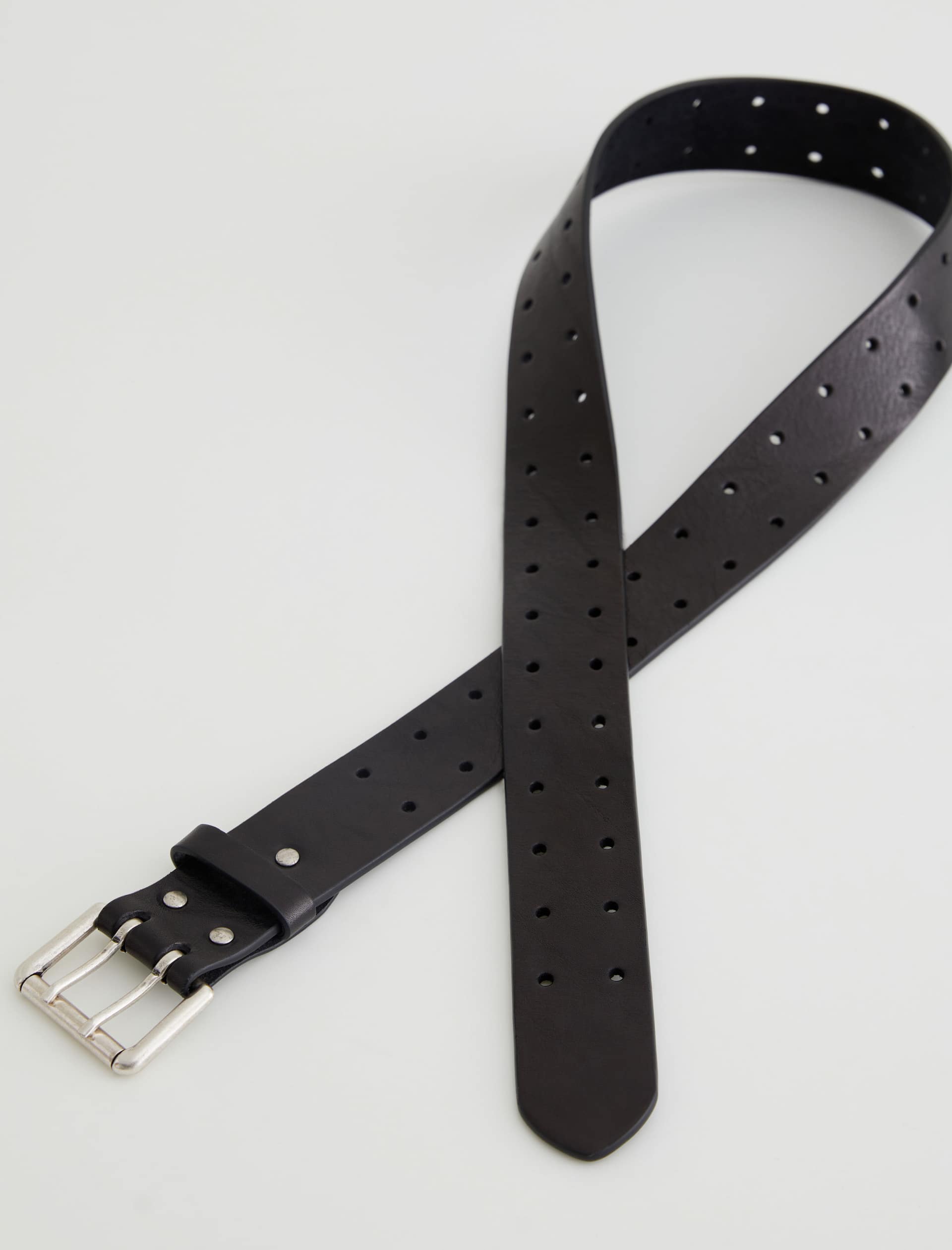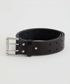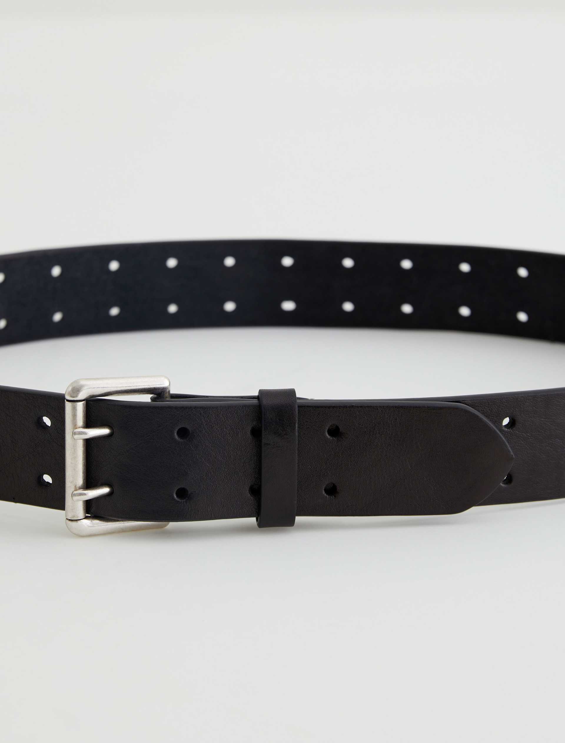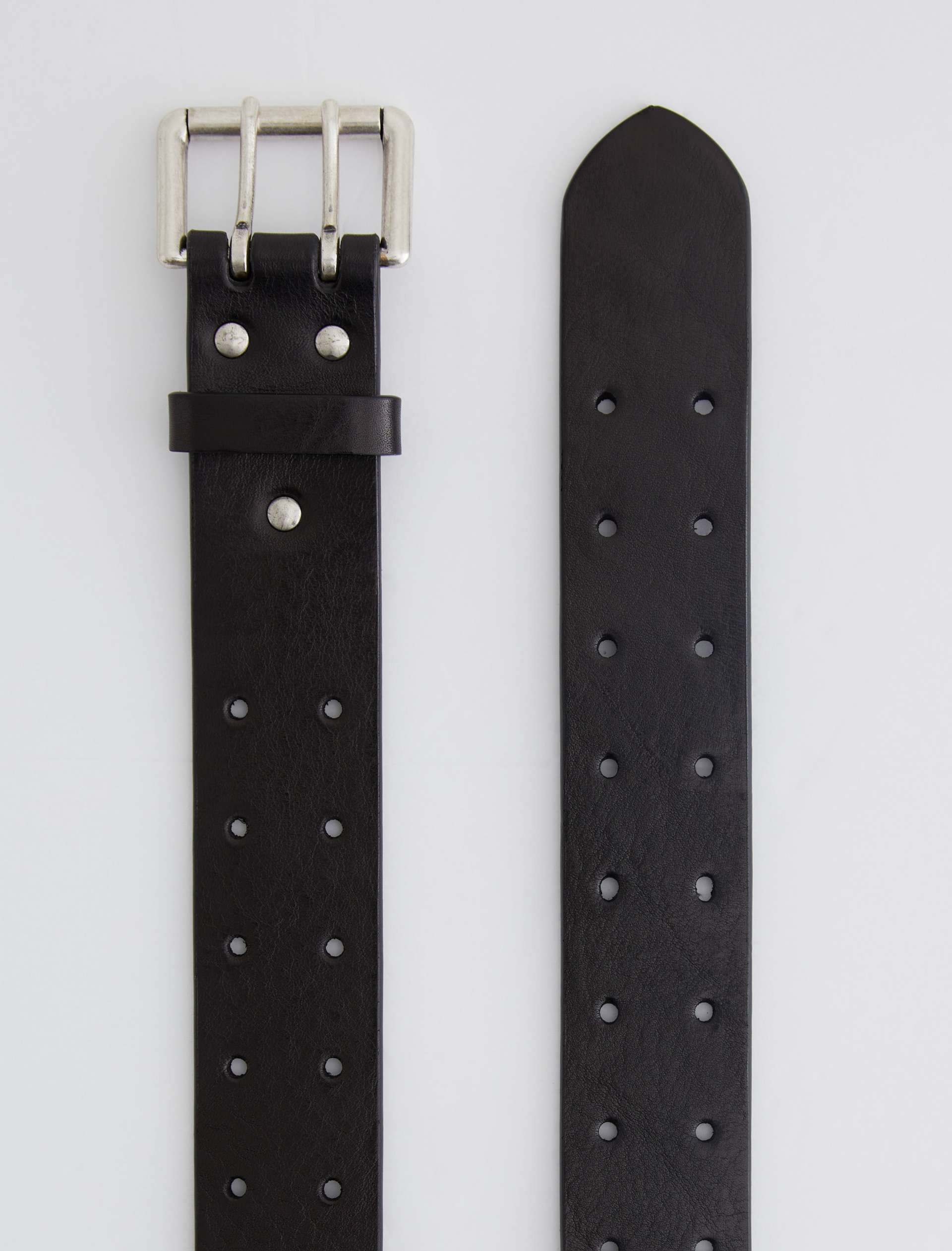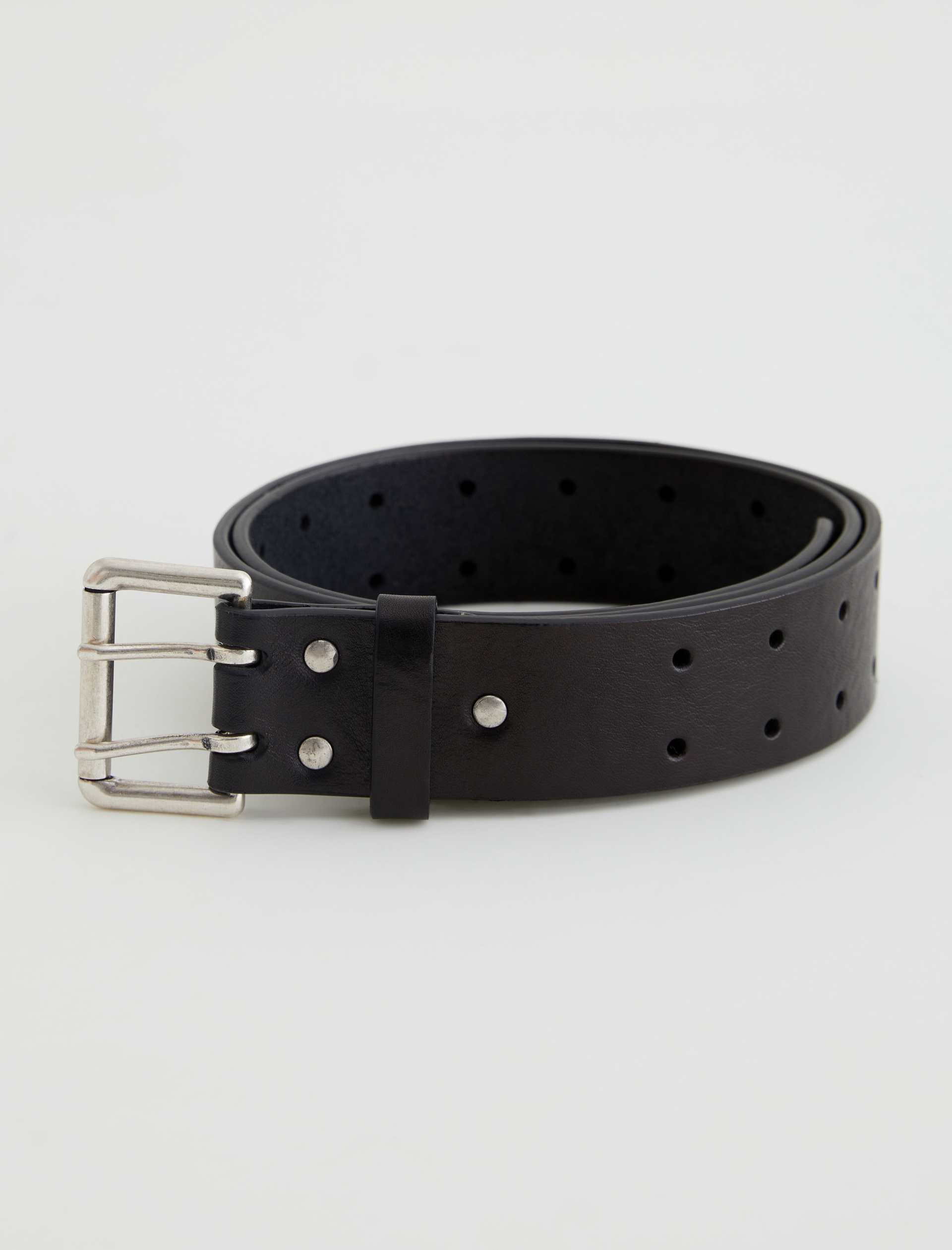 This Italian leather belt offers the perfect finishing touch to your ensembles. Smooth and supple in classic black, it’s got two rows of holes and a double-pronged silver-tone buckle.