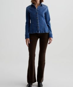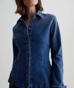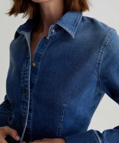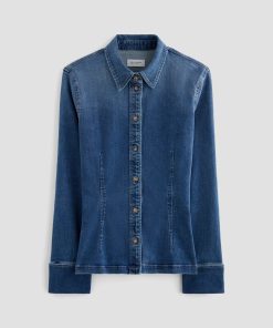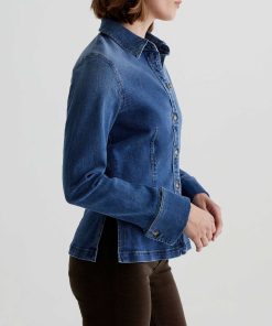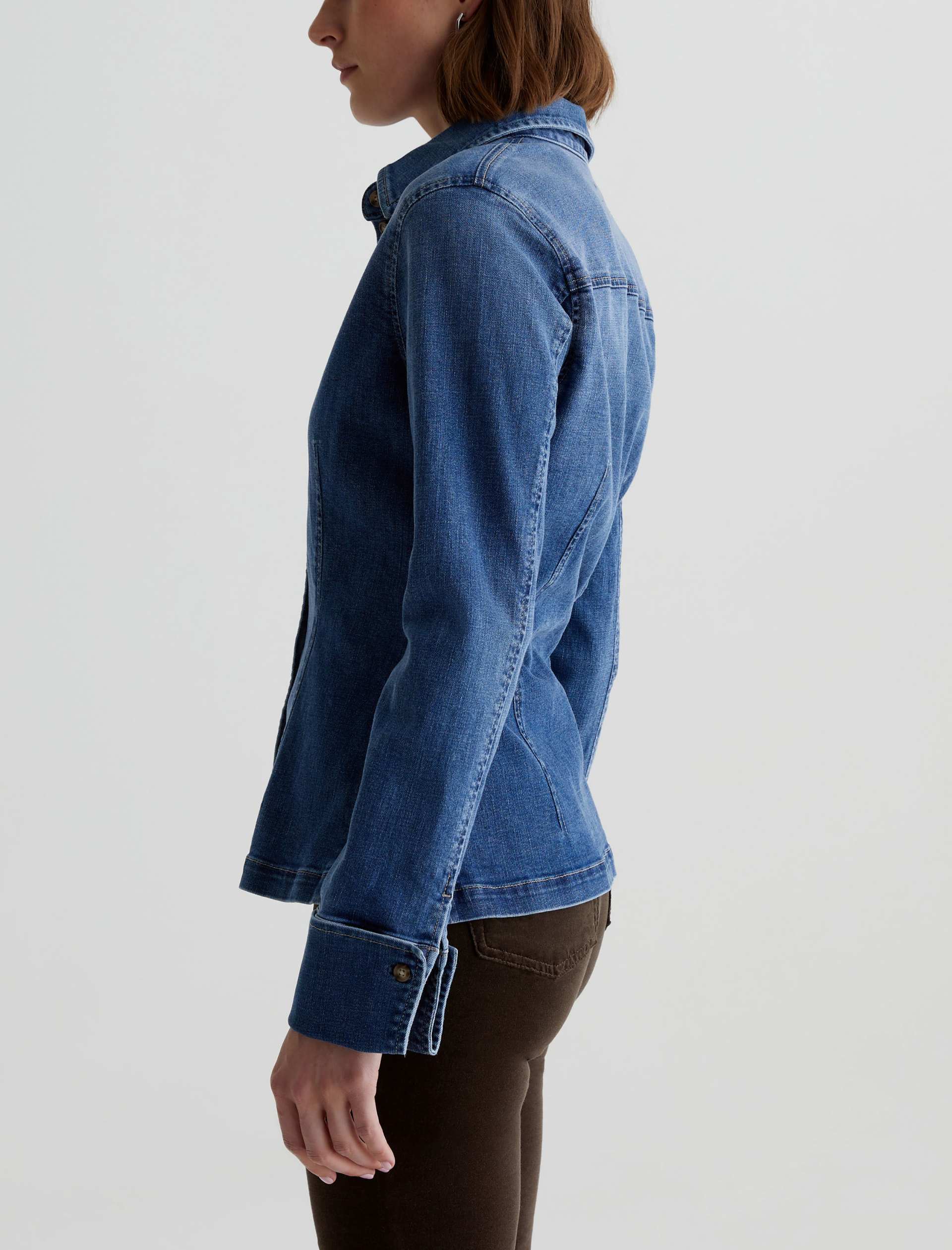 Darted for an hourglass silhouette, the Cheryl Shirt skims the body to accentuate your shape. It’s fitted and waist-defining in 10.2 oz. Crosshatch Comfort Stretch Denim. Washed to a medium-blue shade, this style features a pointed collar, buttons at the front, and long sleeves with french cuffs.